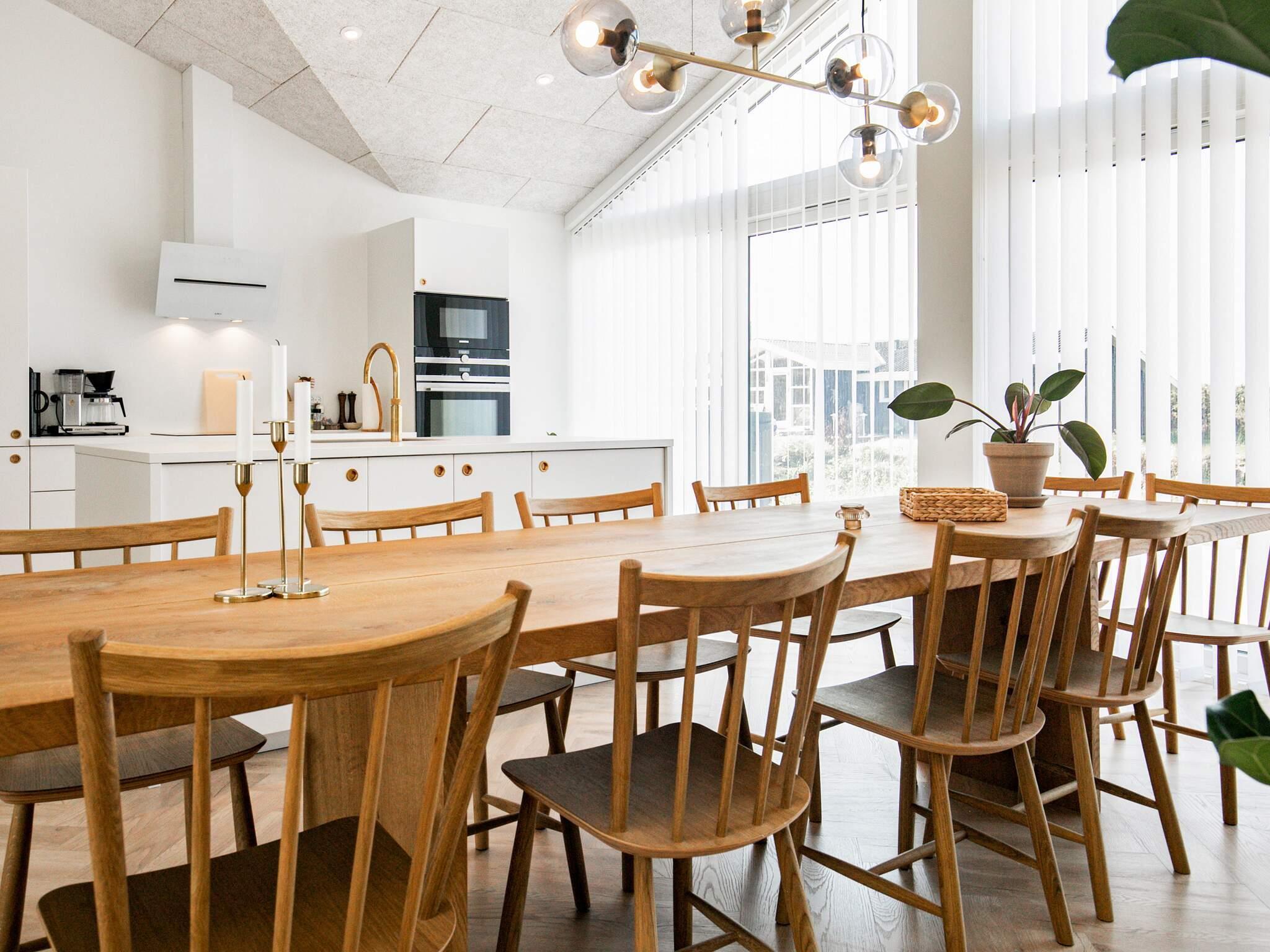 Ein Feriendomizil mit viel Komfort für den anspruchsvollen Gast, der weder bei Stil noch Qualität Abstriche machen möchte. Sie betreten zunächst den Eingangsbereich des Ferienhauses und gelangen weiter zum offenen Küchen-/Wohnbereich für das Familienleben, der ebenfalls modern und hochwertig eingerichtet ist. Von allen Seiten fällt ein schönes Licht durch die großen Panoramafenster, die zudem fantastischen Ausblick zum schönen Ferienhausgebiet mit der Nordsee im Hintergrund bieten.