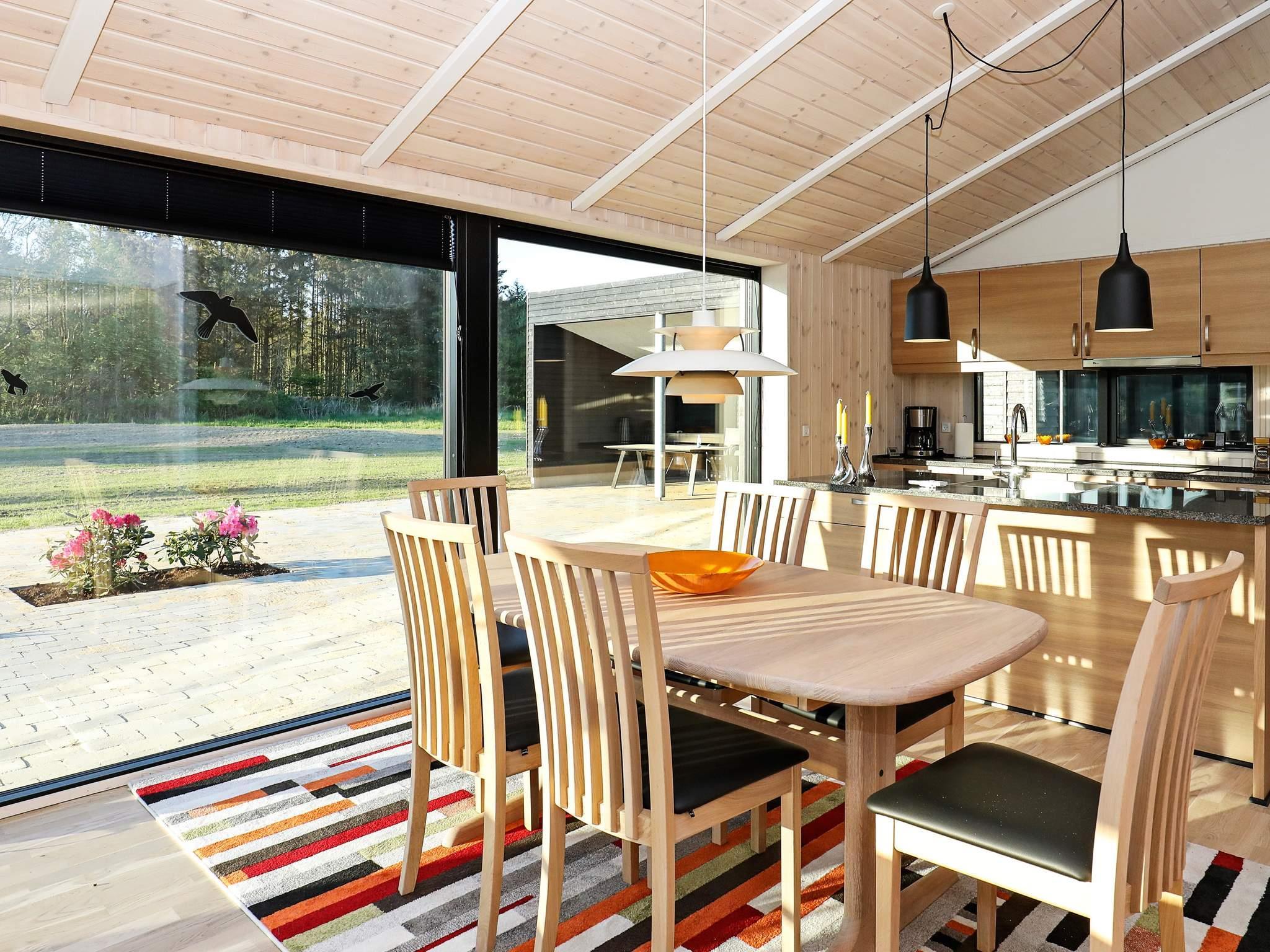 Ansprechendes Ferienhaus mit schönen Außenflächen, auf einem wunderbar abgeschirmten Naturgrundstück in der attraktiven Umgebung von Skallerup Klit gelegen. Das Haus beinhaltet Küchen-Ess-Wohnbereich, vier Schlafzimmer und zwei Badezimmer mit angenehmer Fußbodenheizung. Die Einrichtung ist ansprechend und modern und große Fensterflächen sorgen für einen schönen Lichteinfall. Hochwertige Materialien und abgestimmte Farben bewirken ein behagliches Ambiente. Für kostengünstige Erwärmung gibt es einen Kaminofen sowie eine Wärmepumpe. Genießen Sie die Sommertage auf den Terrassen, wo Sie ungestört und geschützt sitzen können.