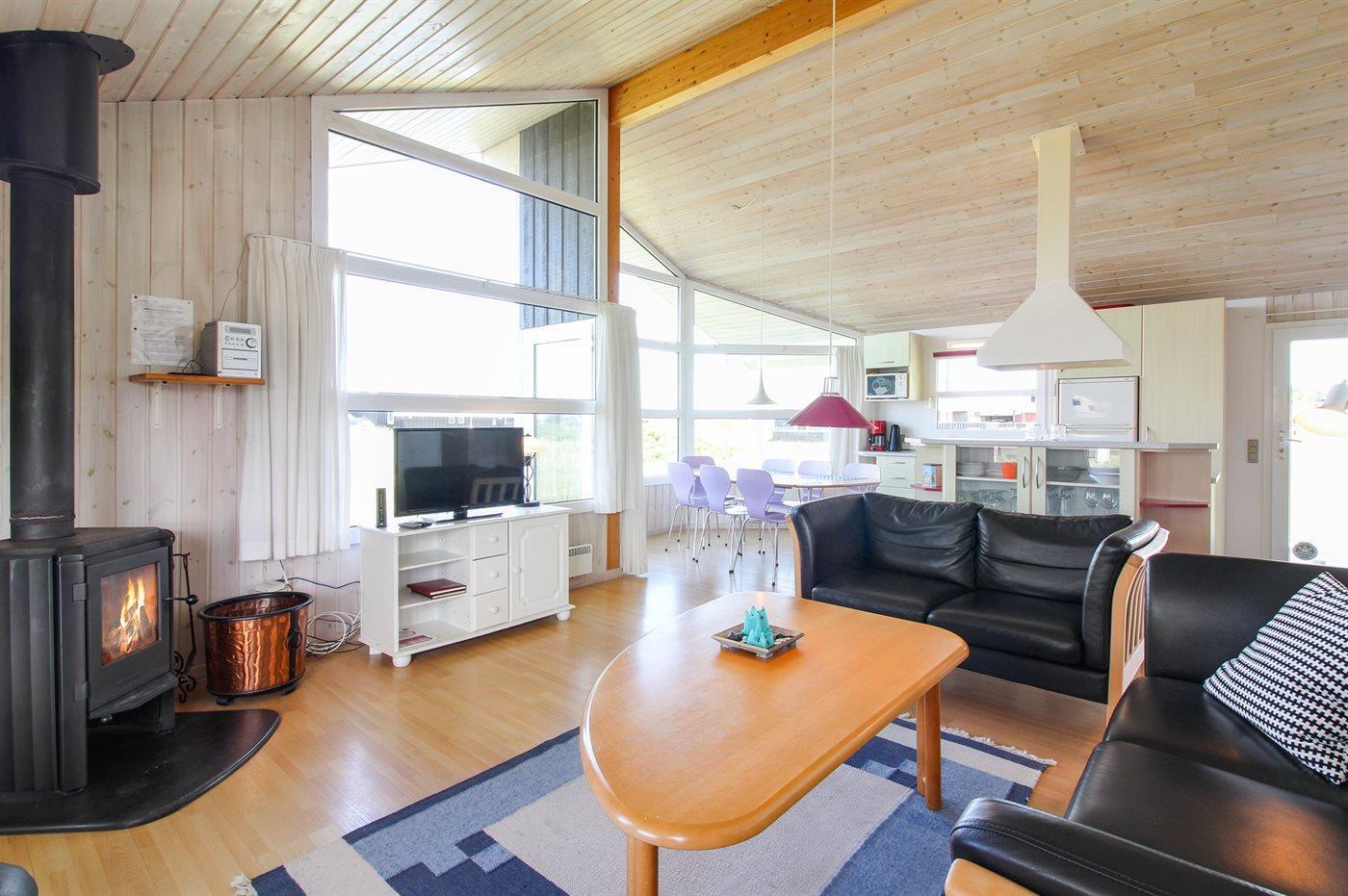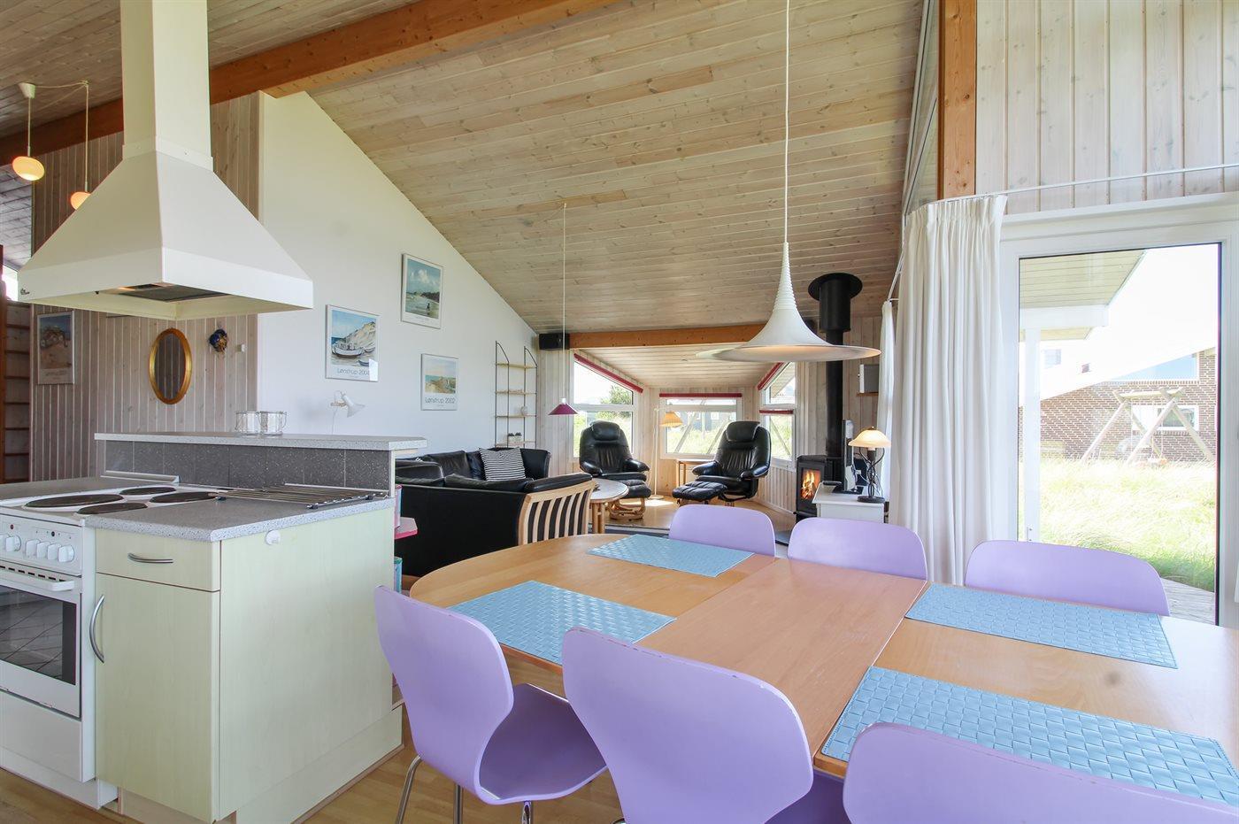 Holiday home suitable for 8 persons . 2 of the beds is only suitable for older children (4-11 years). The holiday home is 90 m² and is build in 1996. You can bring along 1 pet. The holiday home is equipped with energy-saving heat pump. The holiday home has washing machine. Freezer capacity of 30 litres. Further more there is 1 wood-burning stove. For the youngest ones there is 1 high chair.