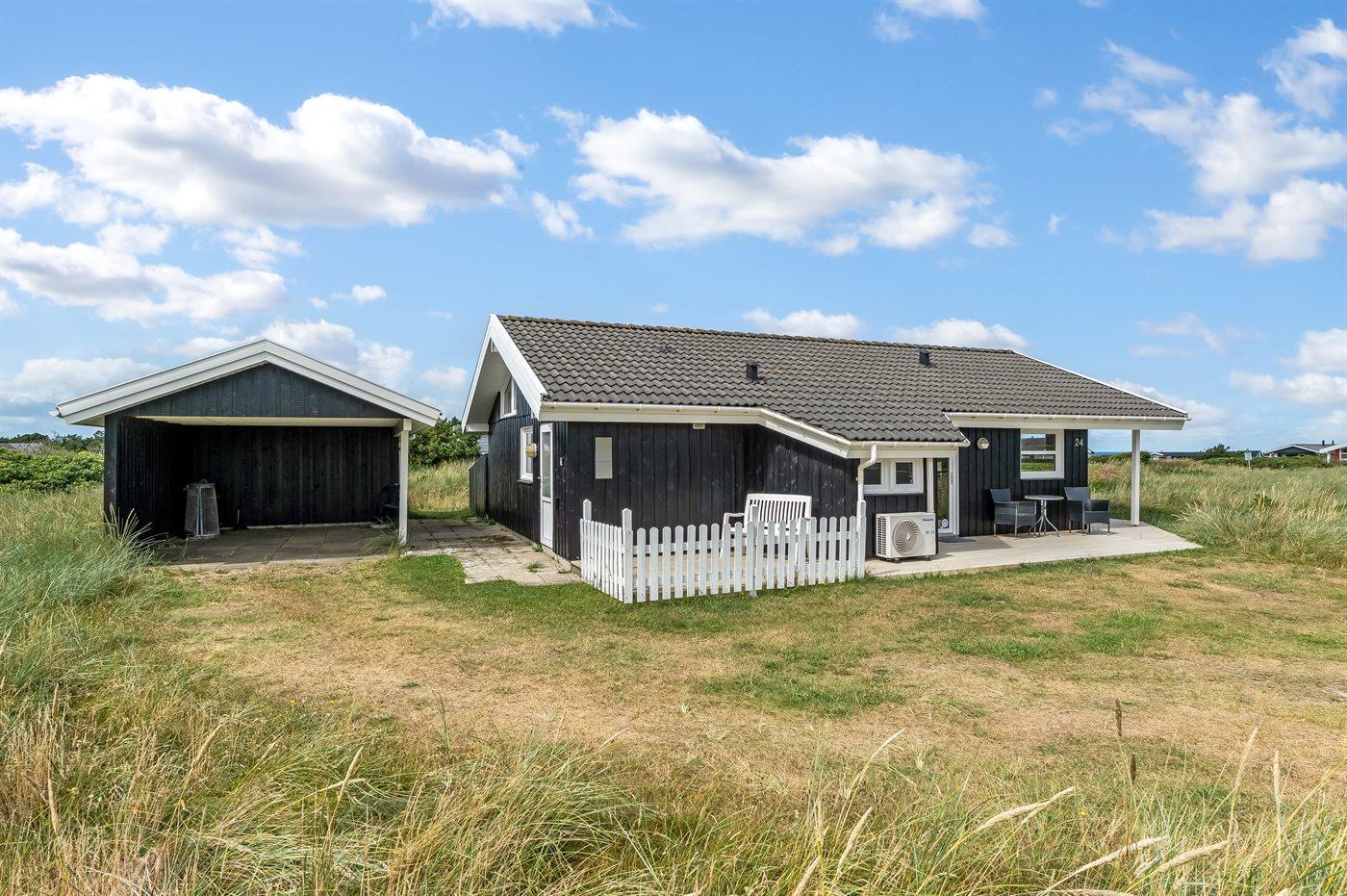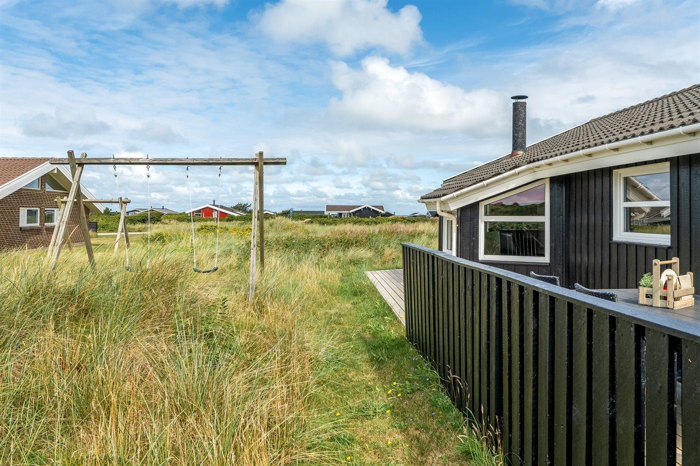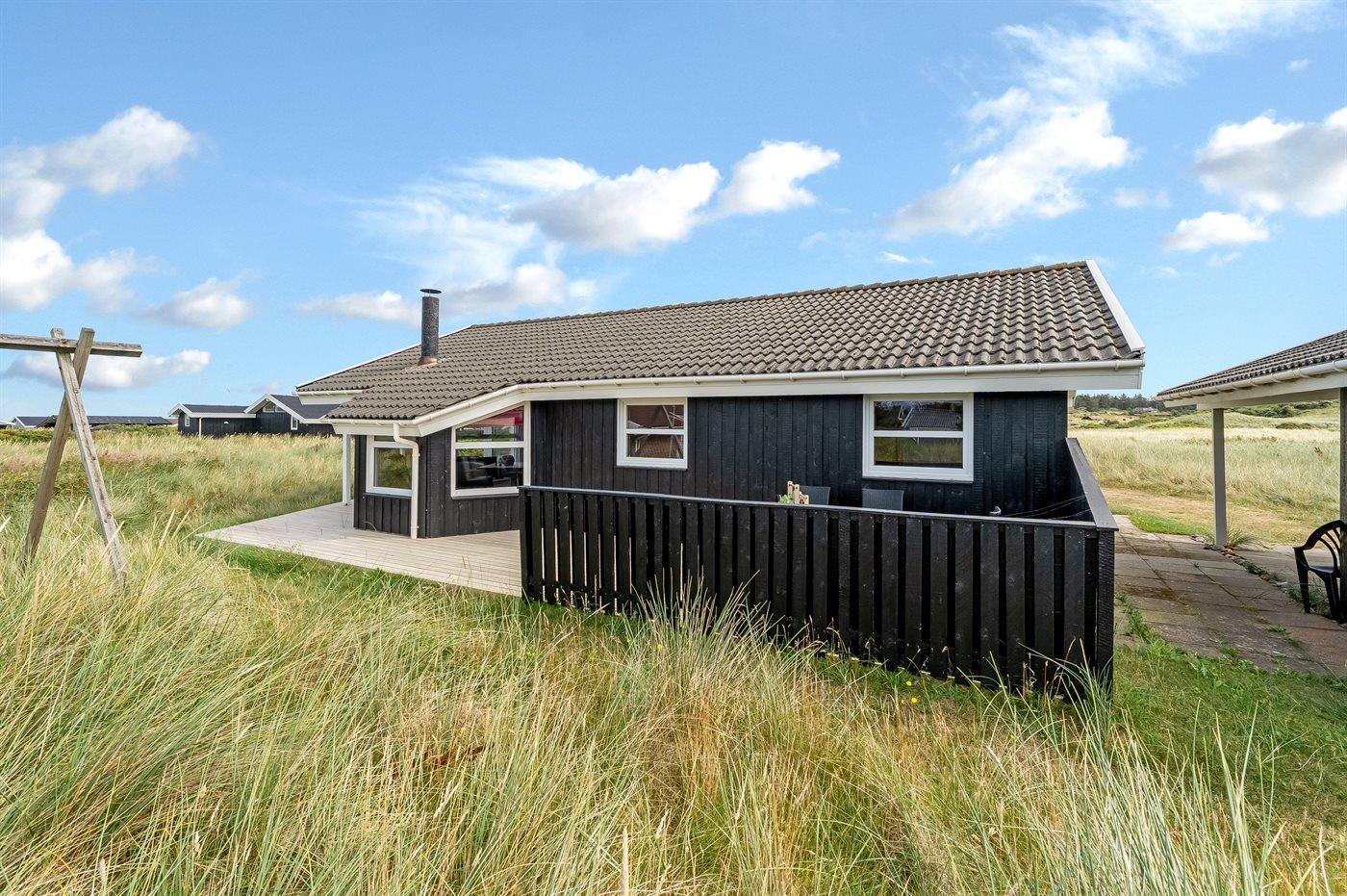 The holiday home is situated on a 1300 m² natural site. Situated 460 m from the sea. Nearest shop is 800 m away. A 40 m² terrace belong to the holiday home. Swing. There is a kettle grill. Carport is at your disposal. Parking place by the holiday home.