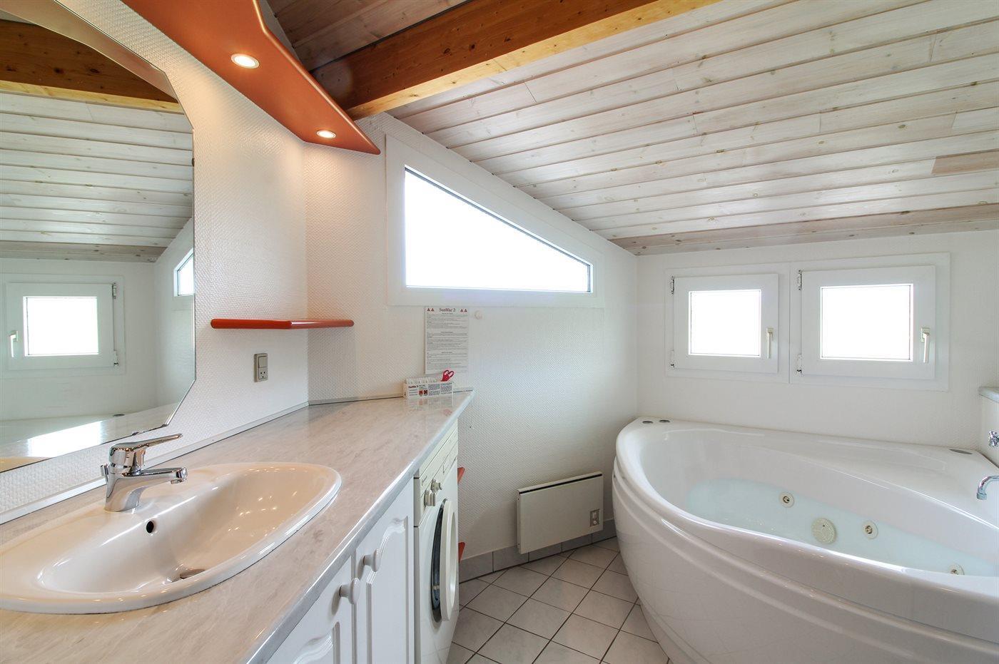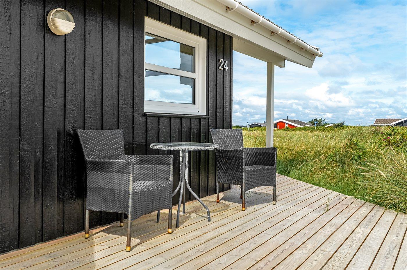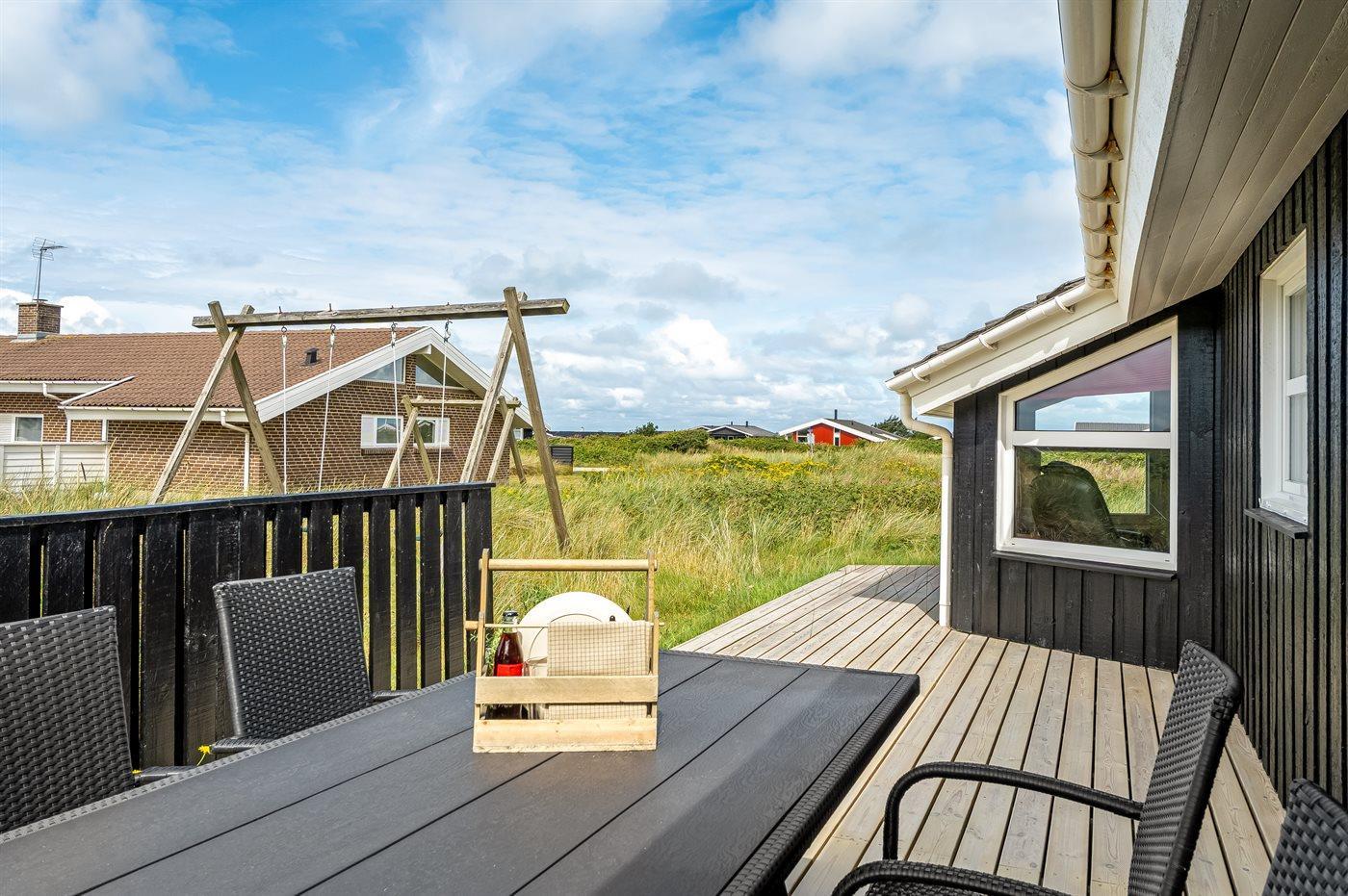 The holiday home is situated on a 1300 m² natural site. Situated 460 m from the sea. Nearest shop is 800 m away. A 40 m² terrace belong to the holiday home. Swing. There is a kettle grill. Carport is at your disposal. Parking place by the holiday home.