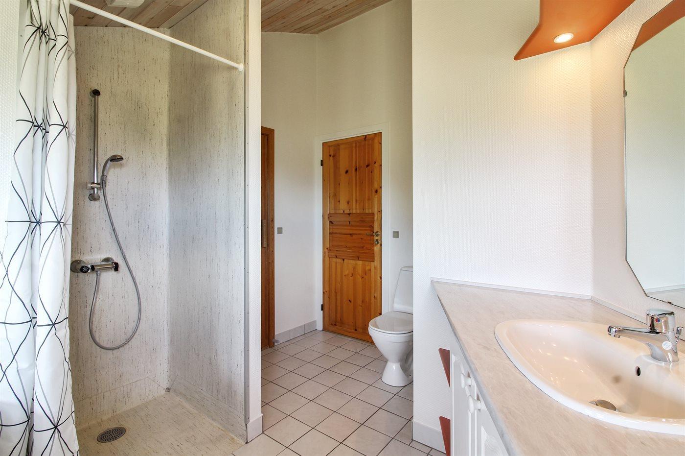 There is 1 bathroom with shower cabinet and 1 toilet.. There is floor heating in 1 bathroom. The sauna offers opportunity for relaxation.