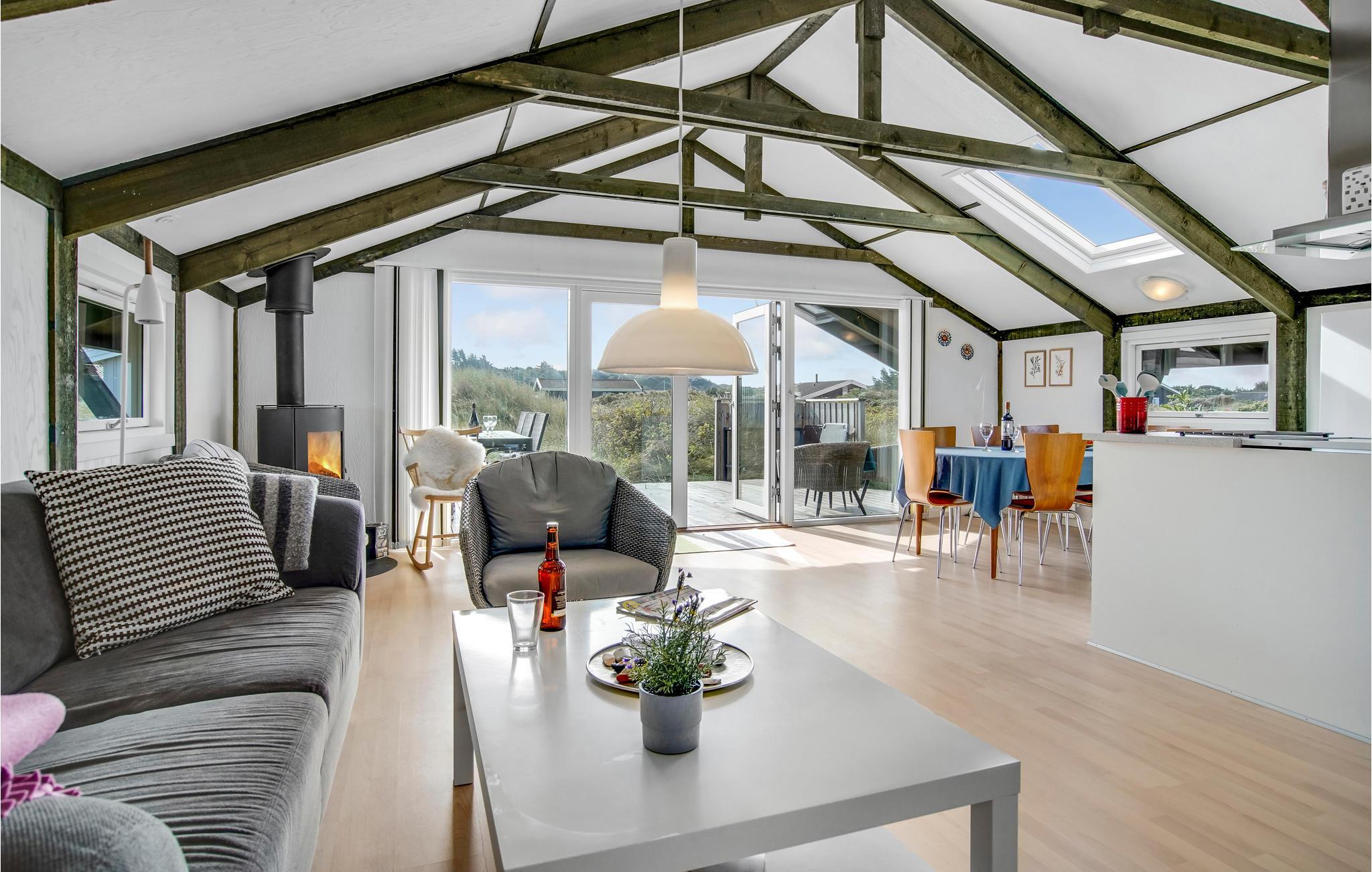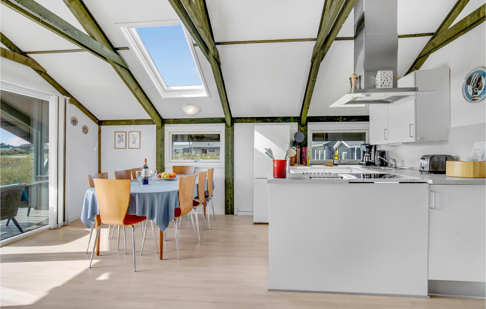 Dieses Ferienhaus liegt in den Dünen und nur 350 Meter vom Wasser und Skallerup Klit Feriencenter entfernt. Es bietet Platz für 6 Personen und ein Haustier. In der modernen, offenen Küche lassen sich fantastische Mahlzeiten zubereiten - die Spülmachine macht hinterher den Abwasch. Im Wohnzimmer sorgt der Kaminofen für Gemütlichkeit. Von der offenen Terrasse aus haben Sie einen fantastischen Meeresblick und können sich die frische Brise um die Nase wehen lassen. Hier machen Sie nicht weit vom Skallerup Klit Feriecenter Urlaub, wo Sie Wellnessbehandlungen buchen können und es ein Erlebnisbad für die ganze Familie gibt.
