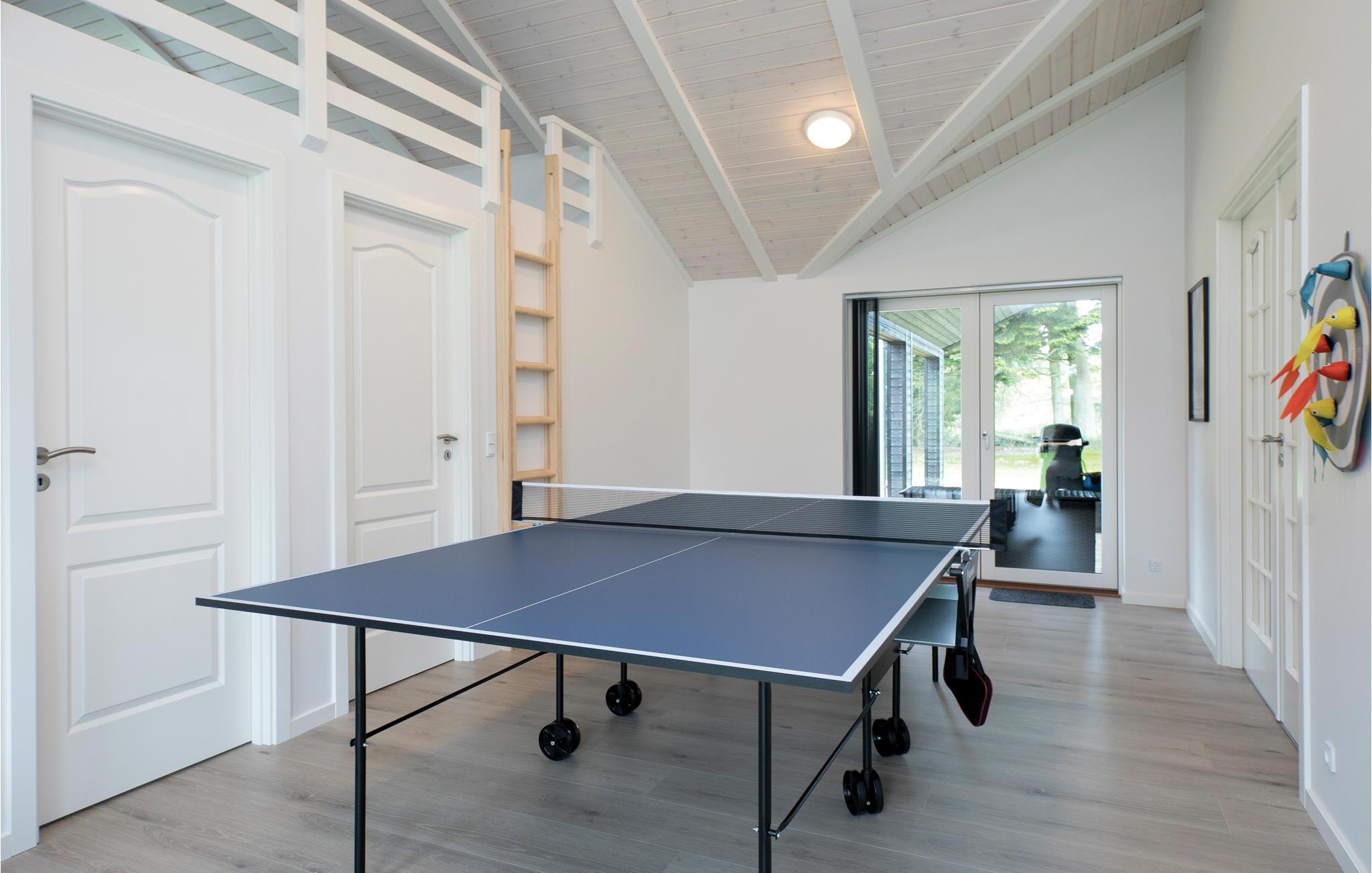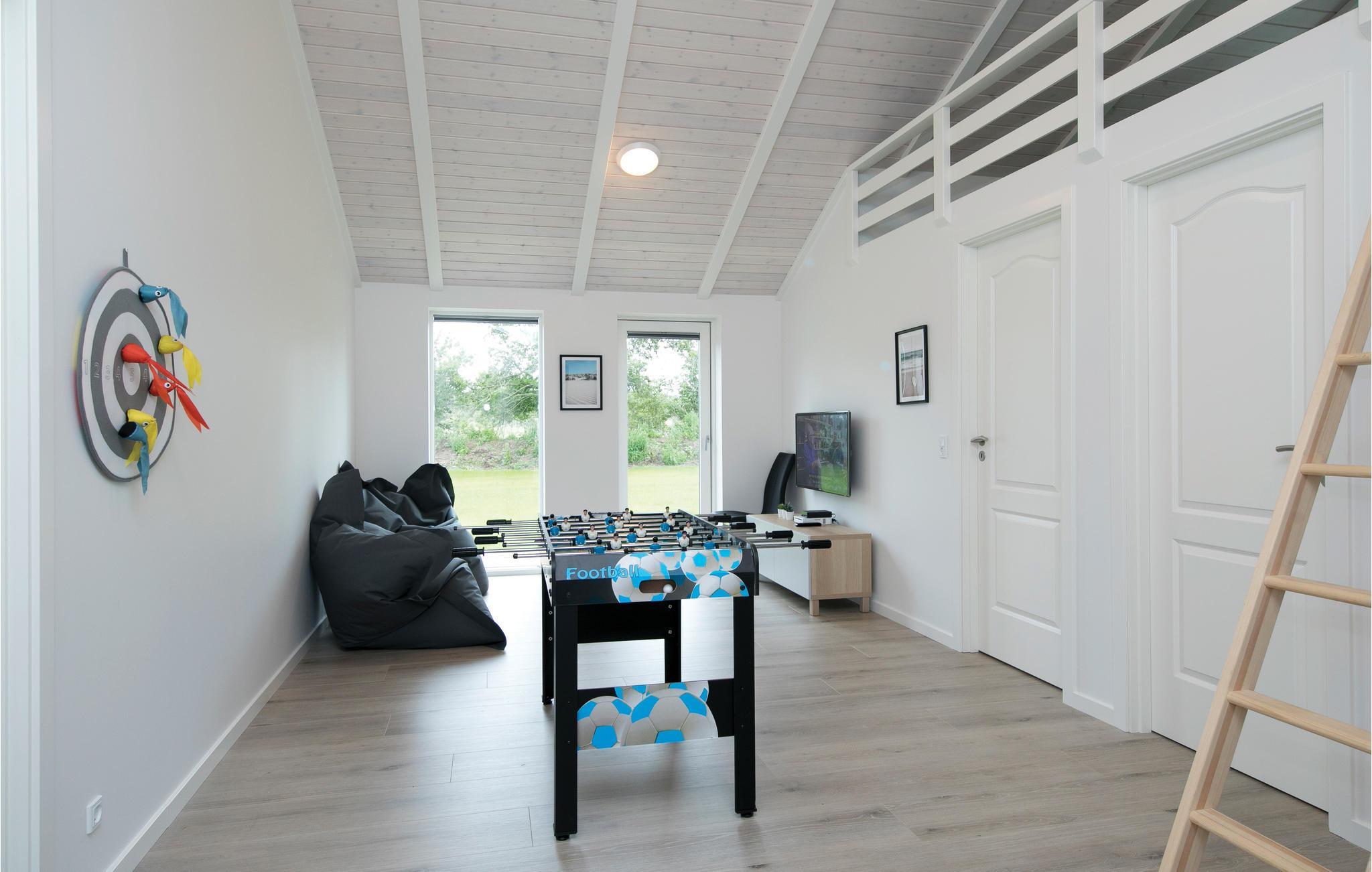 Im Aktivitätsraum können Sie Tischtennis oder Kicker spielen, während andere es sich auf den Sitzsäcken vor dem Fernseher gemütlich gemacht haben und dort auf der Wii spielen. Das Ferienhaus ist umgeben von ausgezeichneten Holzterrassen mit guten Gartenmöbeln.
