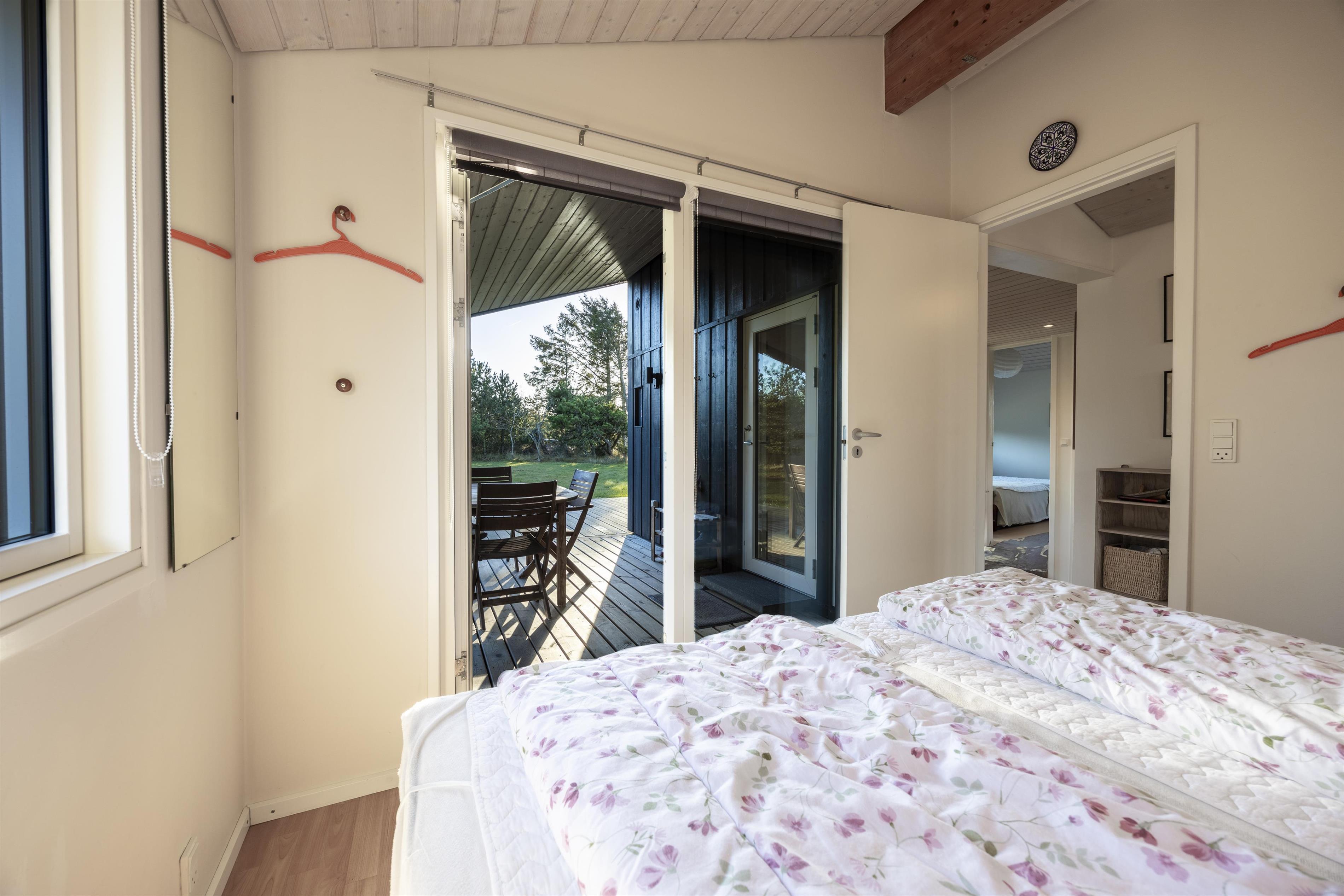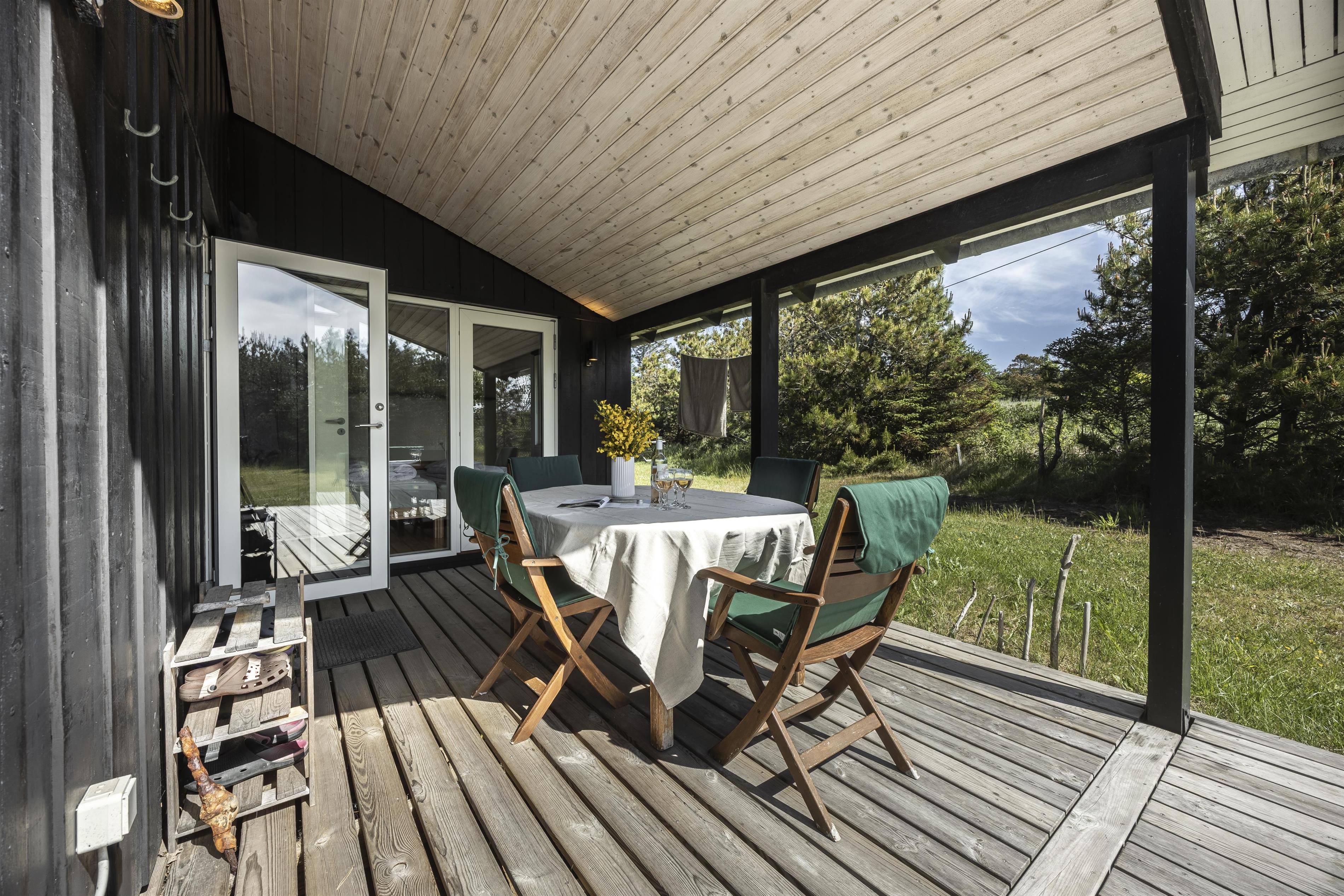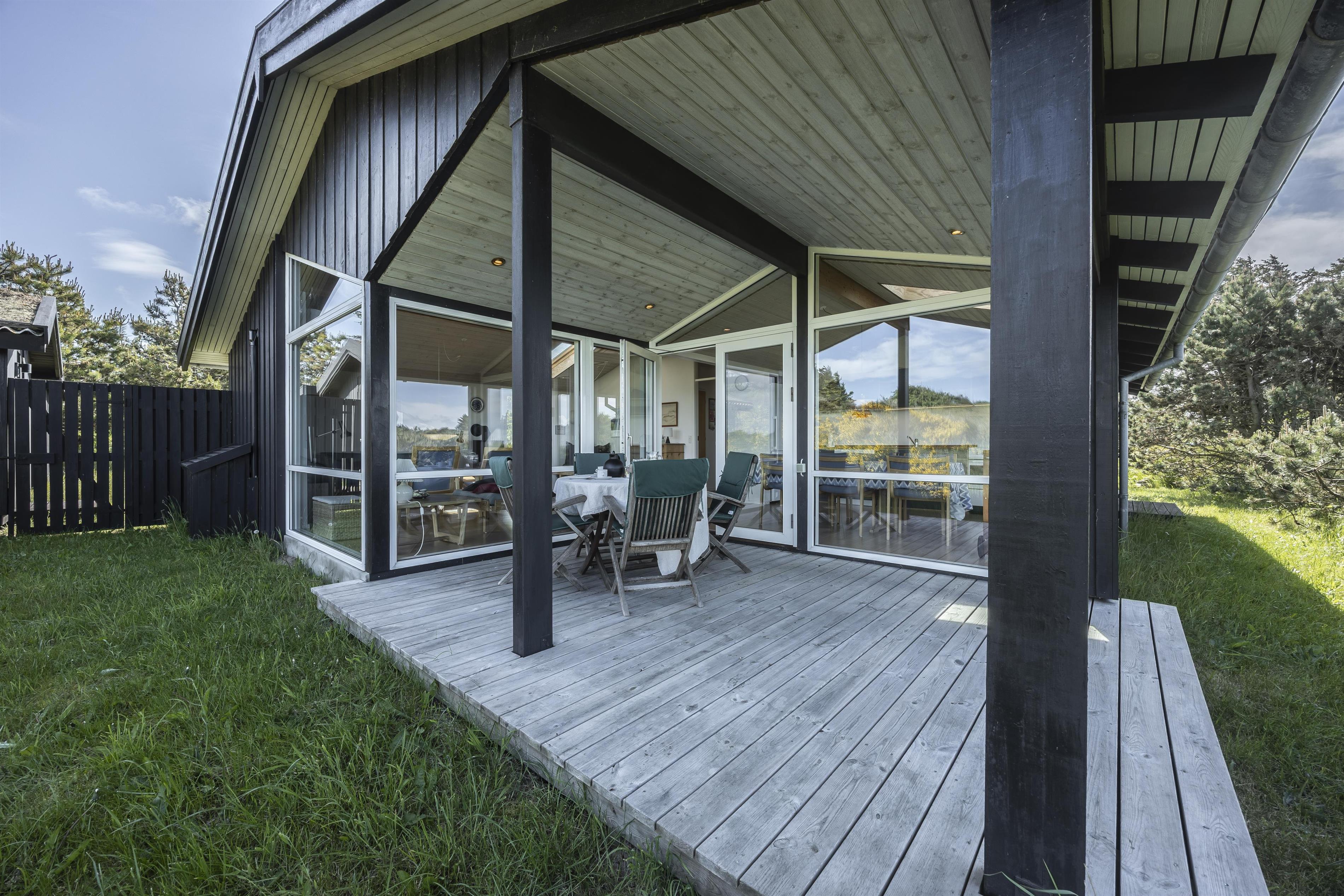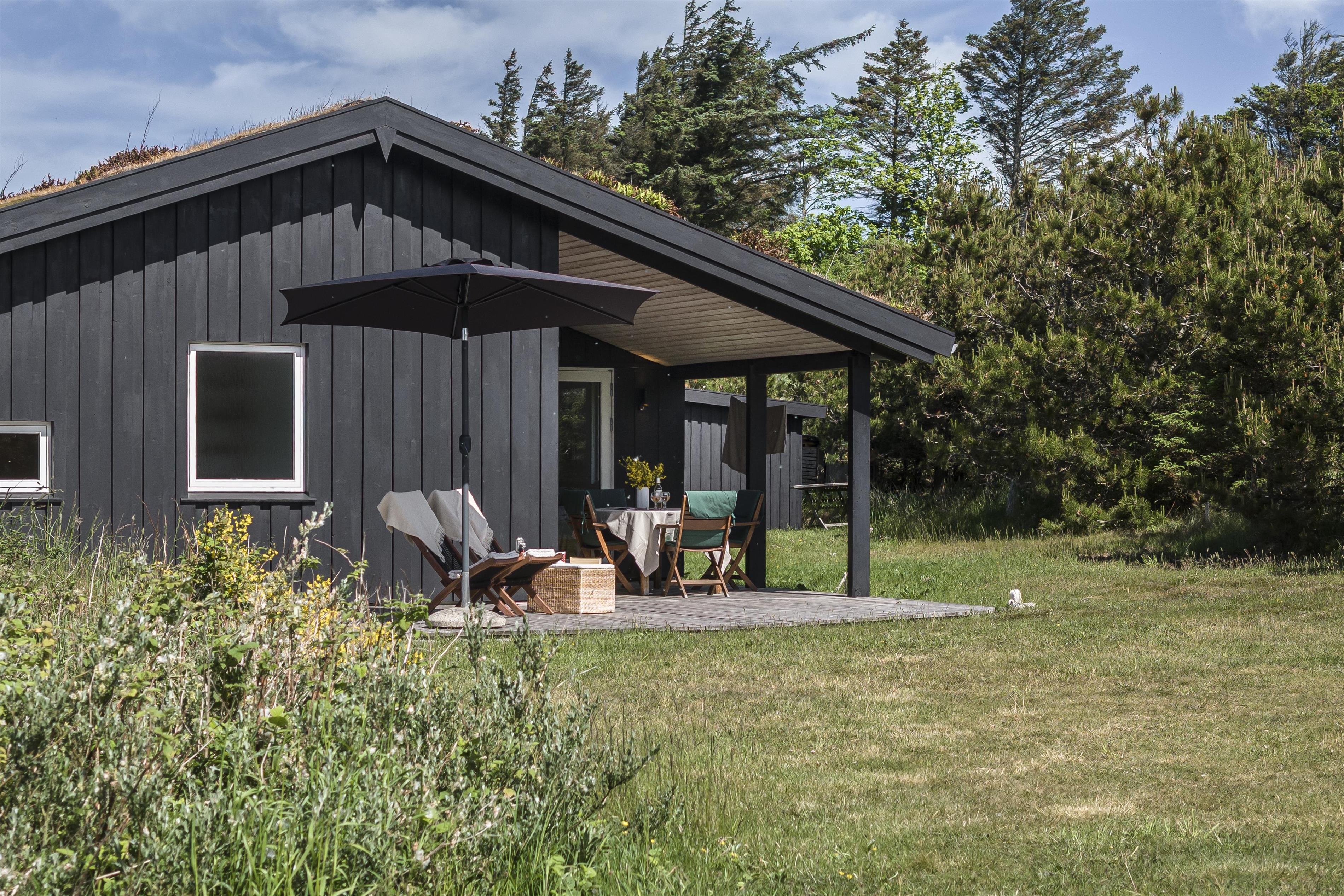 The holiday home provides direct access to multiple wonderful terraces, two of which are covered. The west-facing terrace is perfect for gathering around the table for a delicious meal and enjoying long summer evenings with the sunset in the background. Here, you can take in the scenic views over the rolling dunes in complete privacy, with plenty of distance to the nearest neighbor.