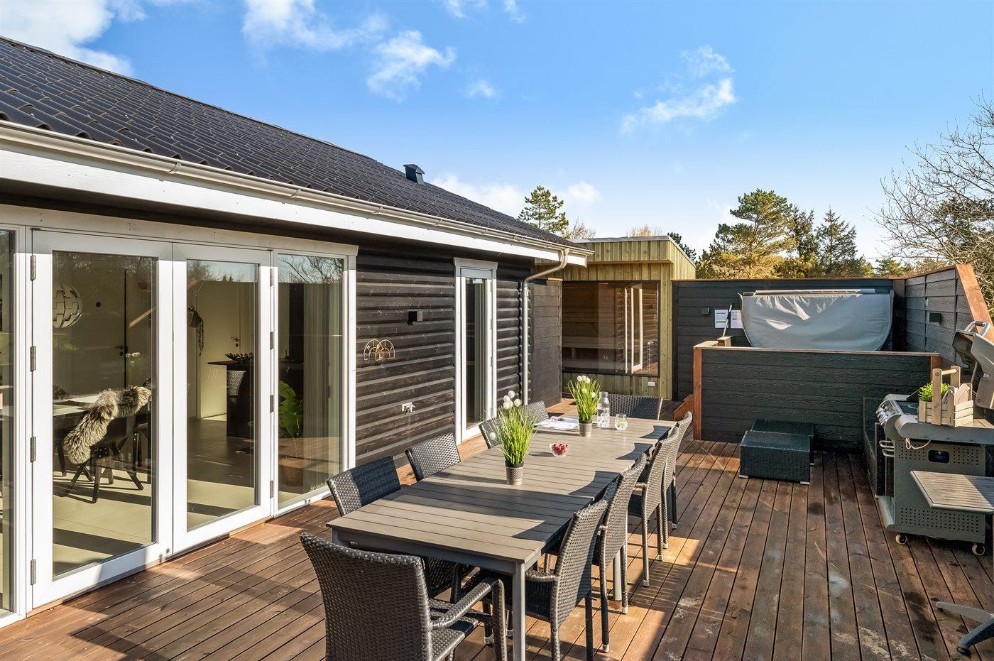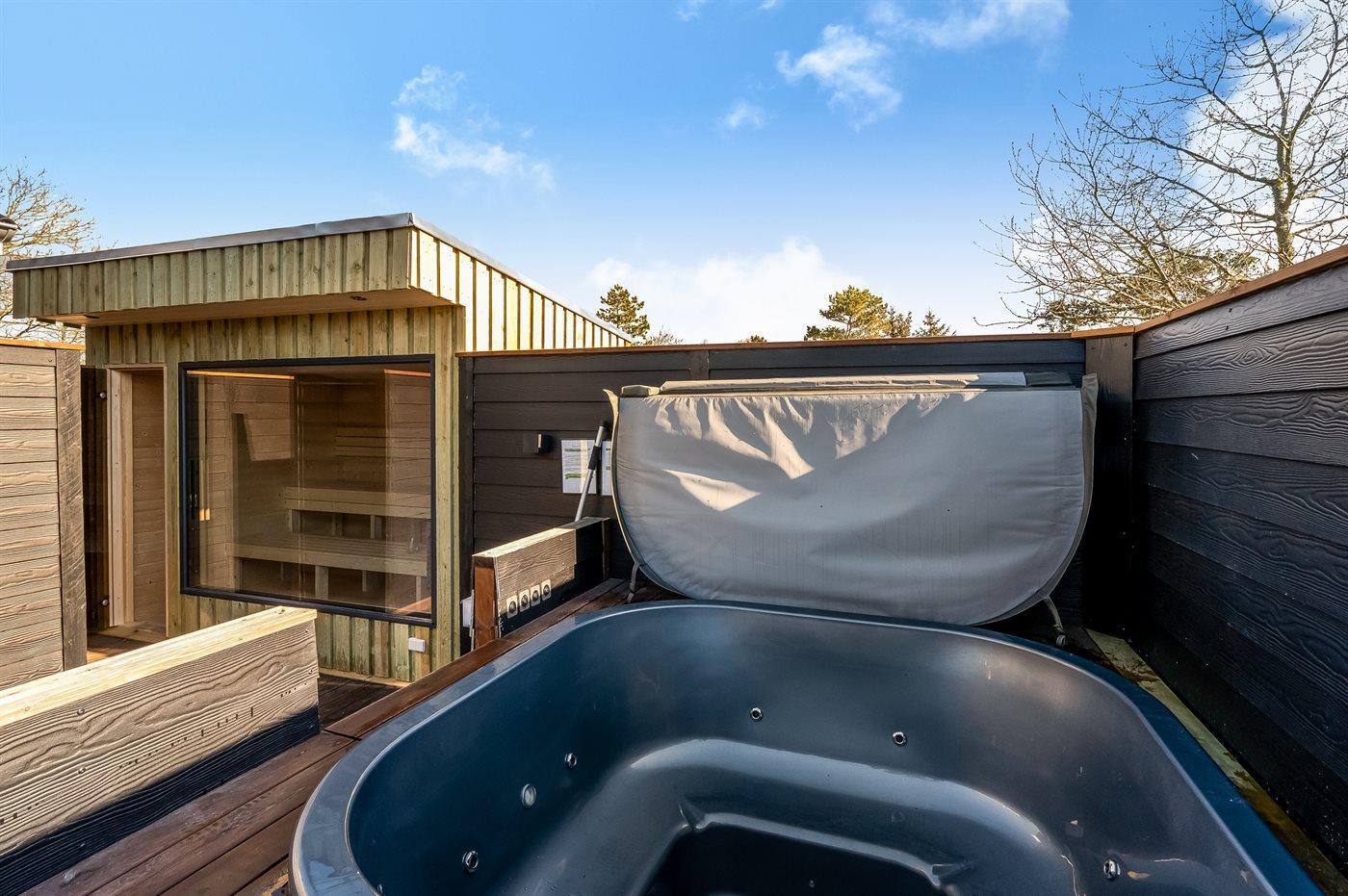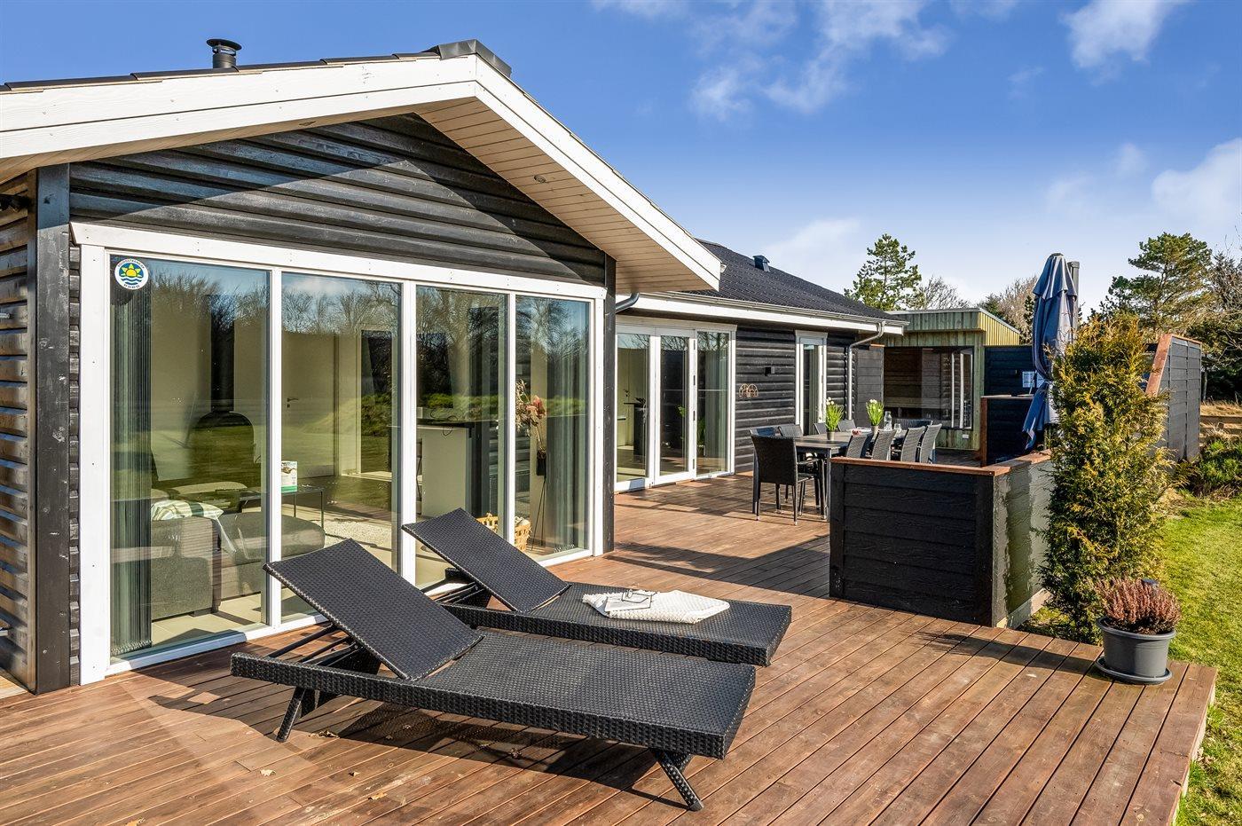 The holiday home is situated on a 1360 m² natural site. The site is fenced in. Situated 400 m from inlet. Nearest shop is 9000 m away. A terrace belong to the holiday home. Swing. Sandbox. Outdoor sauna. Outdoor shower. Barbecue at your disposal. Plug for charging electric car is available. Charging socket type 2. With 9 kW power output. Parking place by the holiday home.