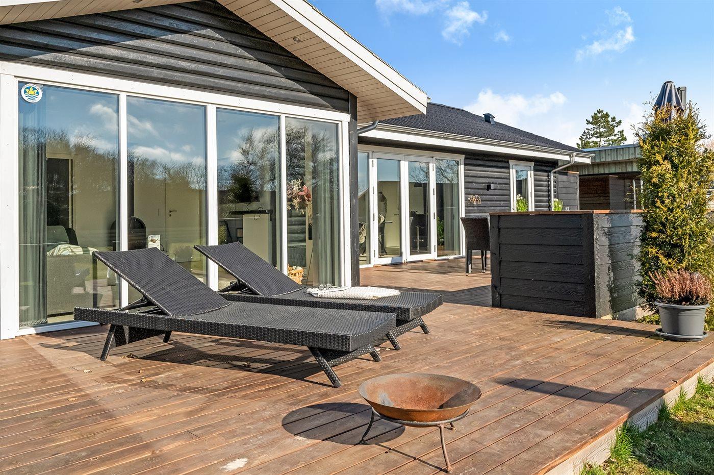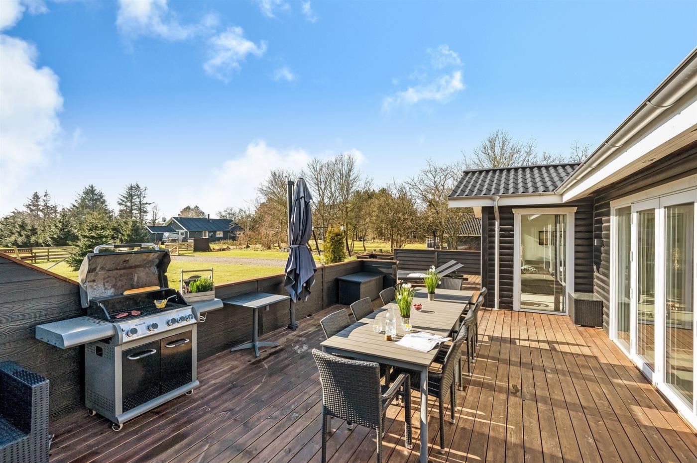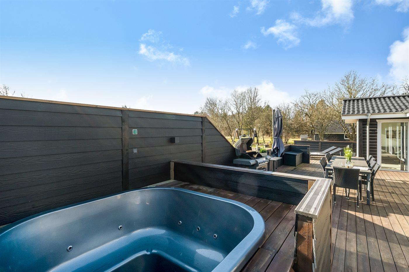 The holiday home is situated on a 1360 m² natural site. The site is fenced in. Situated 400 m from inlet. Nearest shop is 9000 m away. A terrace belong to the holiday home. Swing. Sandbox. Outdoor sauna. Outdoor shower. Barbecue at your disposal. Plug for charging electric car is available. Charging socket type 2. With 9 kW power output. Parking place by the holiday home.