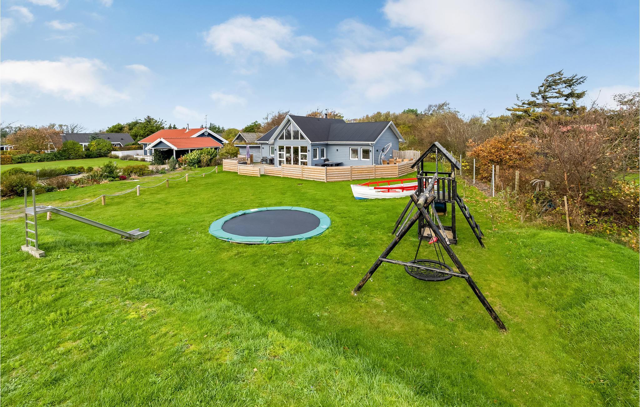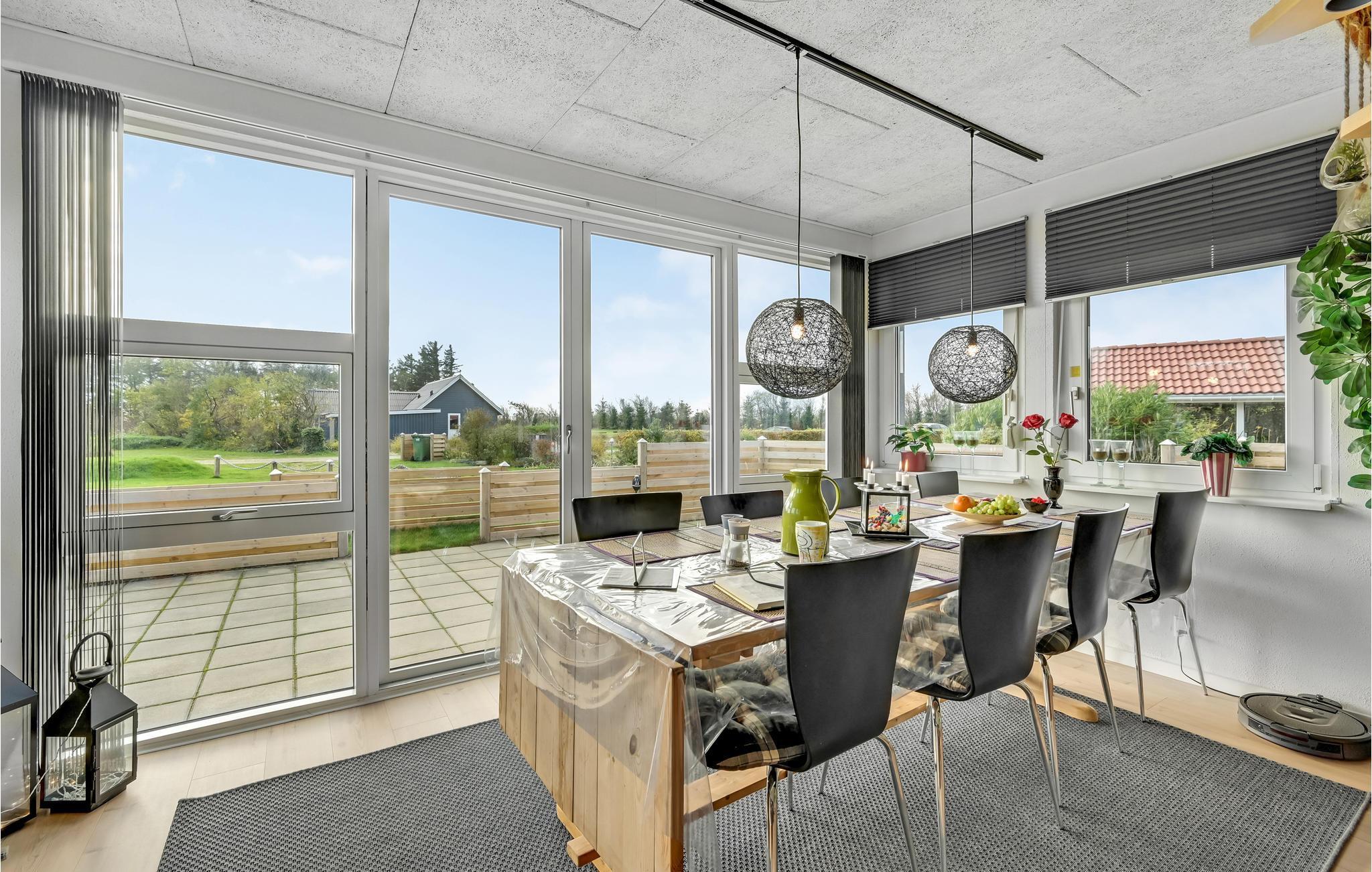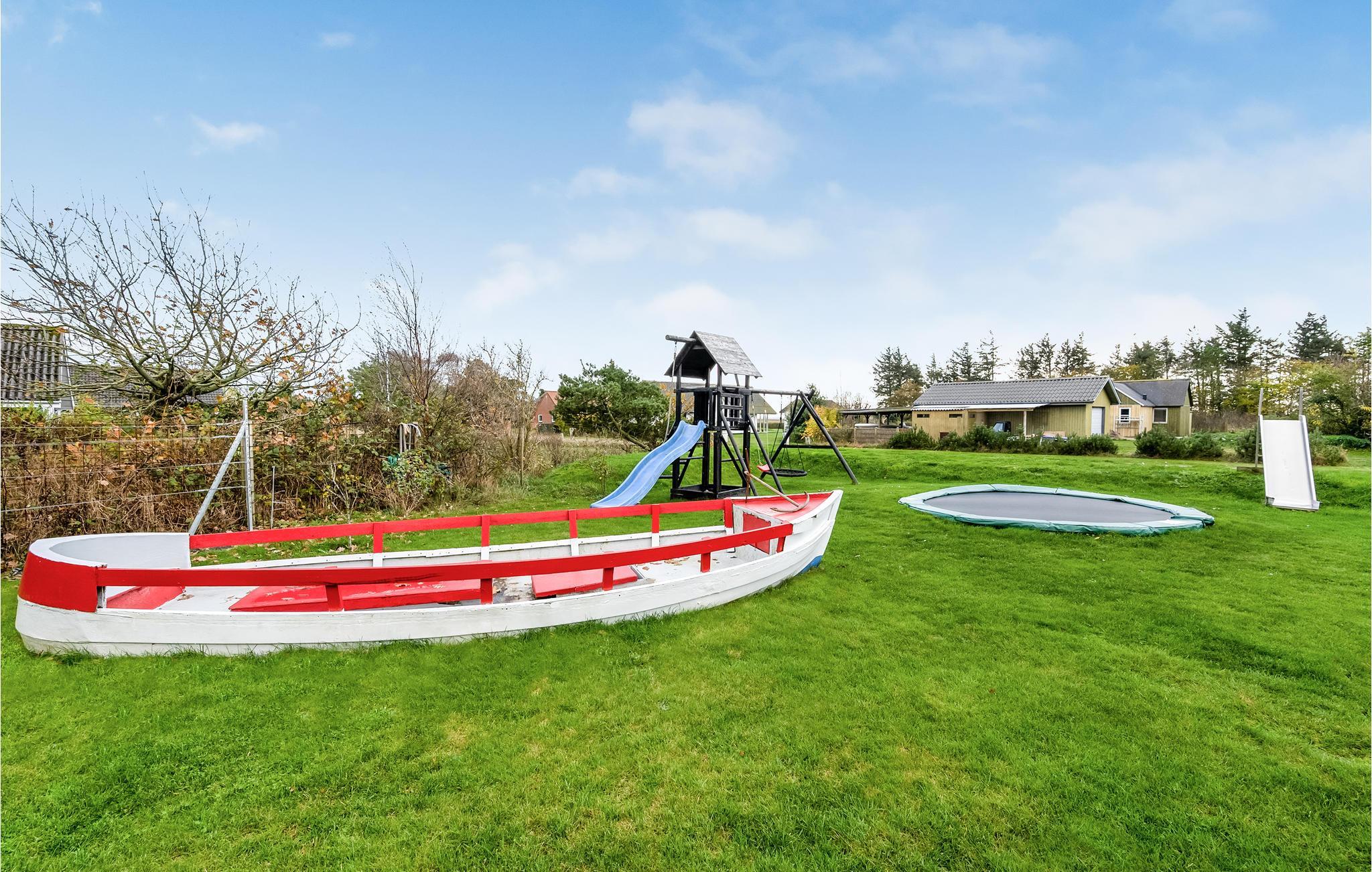 Dieses freundliche Ferienhaus ist sehr komfortabel eingerichetet. Durch die großen Fenster flutet Licht und vom möblierten Loft aus können Sie den nahen Nissum Fjord sehen. An kälteren Tagen können Sie es sich vor dem Kamin bequem machen und einen spannenden Film schauen oder ein gutes Buch lesen. Gratis Brennholz steht für Sie bereit. Im hellen Essbereich können Sie auch im Winter gemütlich essen, während Sie sich wie im Freien fühlen. An wärmeren Tagen bietet der große Garten viel Platz für Spiel und Erholung. Auf der Terrasse k¨onnen Sie gemeinsame Mahlzeiten zu sich nehmen oder den Tag mit einem Grillabend beenden. Auf dem großen Grundstück finden Sie auch den Spielplatz mit Spielschiff, Rutsche, Klettergerüst, Schaukel und Trampolin. Hier werden Kinder viel Spaß haben.