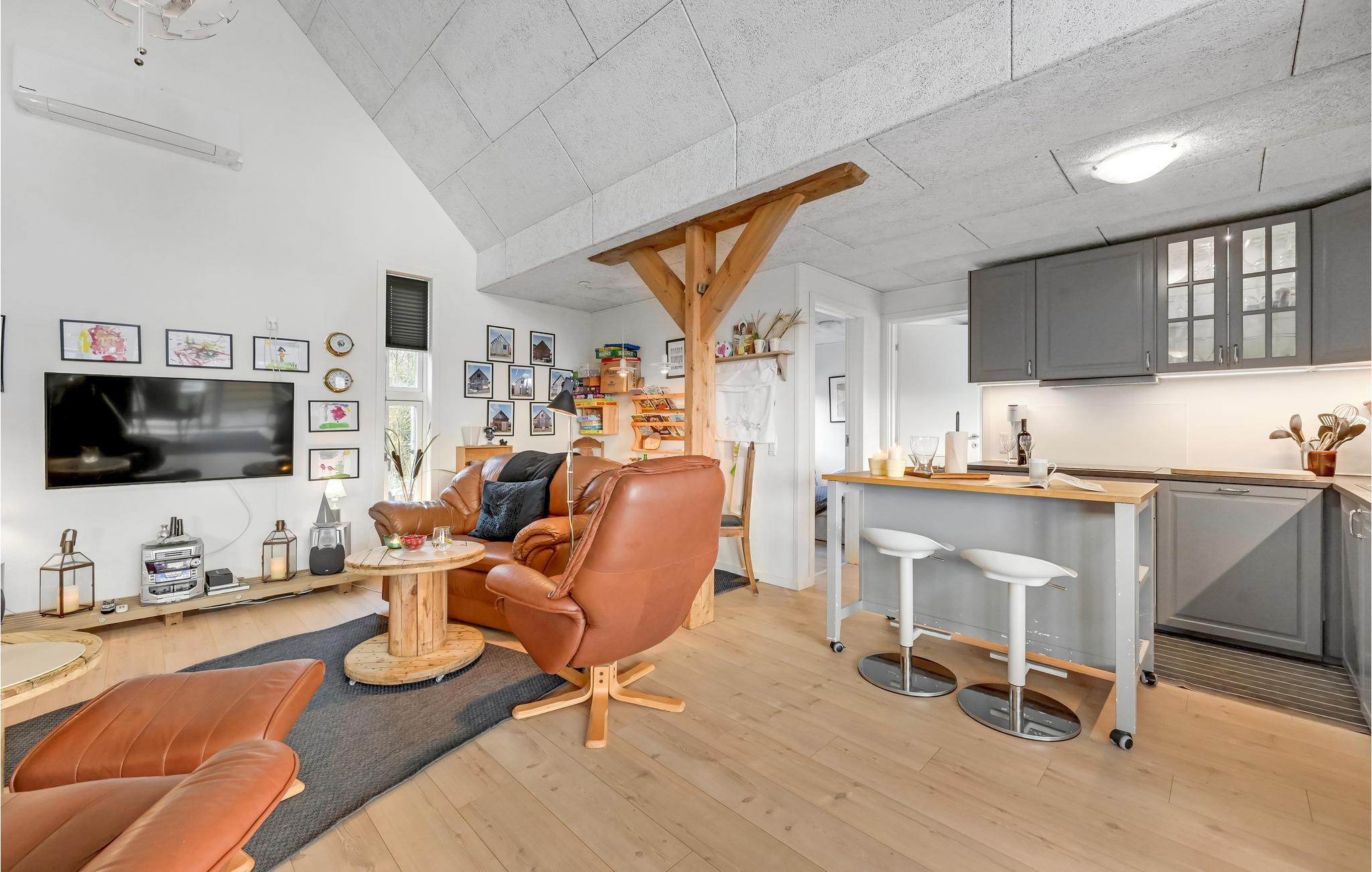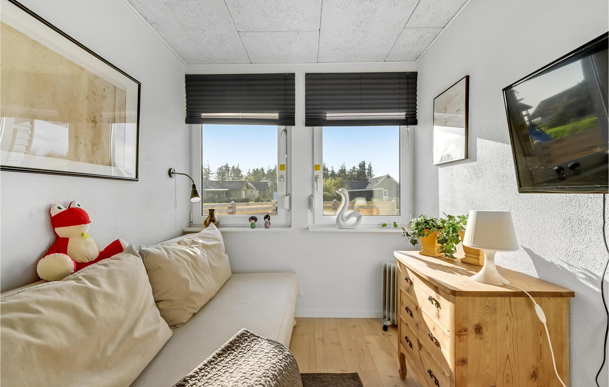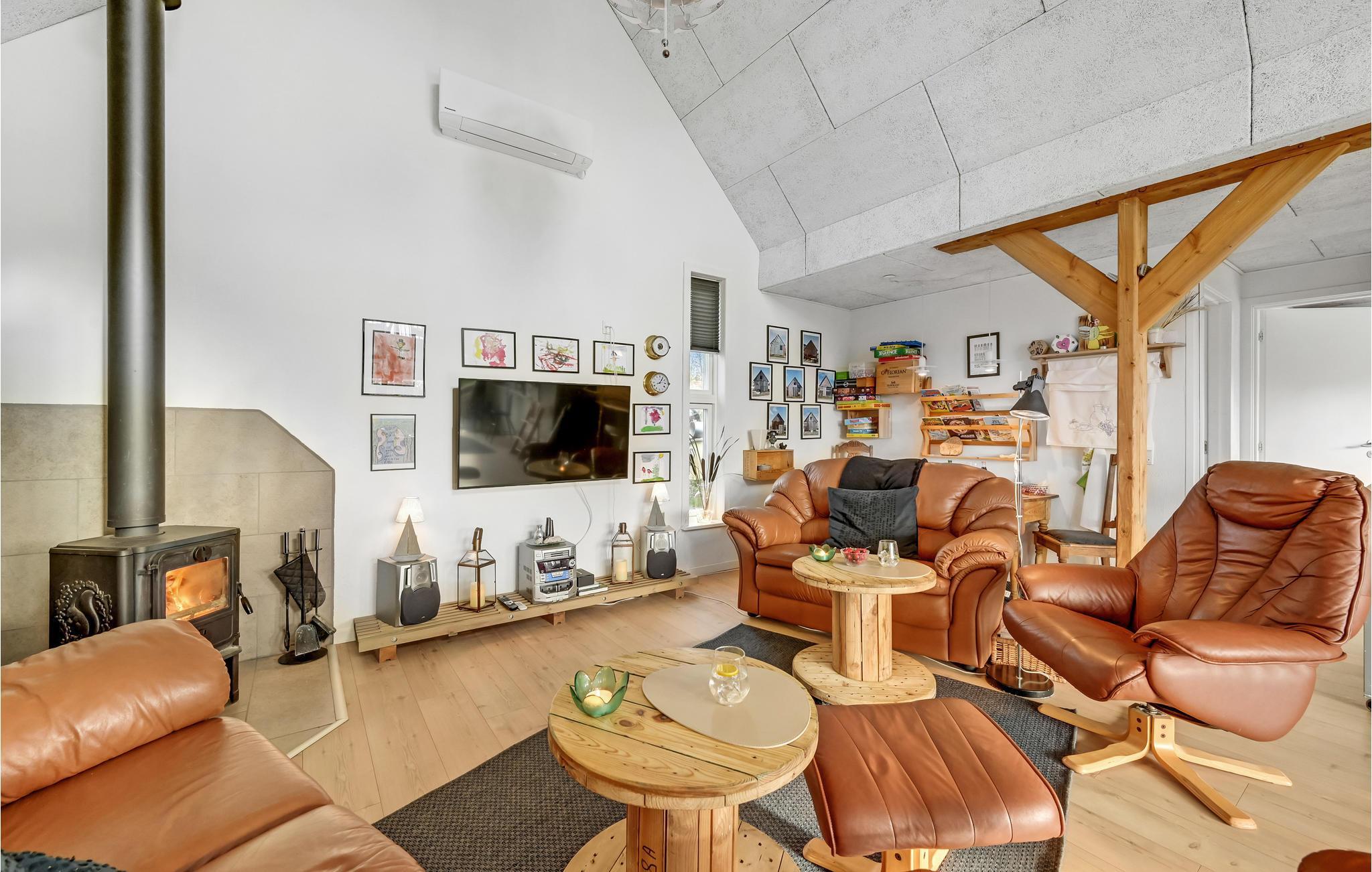 Dieses freundliche Ferienhaus ist sehr komfortabel eingerichetet. Durch die großen Fenster flutet Licht und vom möblierten Loft aus können Sie den nahen Nissum Fjord sehen. An kälteren Tagen können Sie es sich vor dem Kamin bequem machen und einen spannenden Film schauen oder ein gutes Buch lesen. Gratis Brennholz steht für Sie bereit. Im hellen Essbereich können Sie auch im Winter gemütlich essen, während Sie sich wie im Freien fühlen. An wärmeren Tagen bietet der große Garten viel Platz für Spiel und Erholung. Auf der Terrasse k¨onnen Sie gemeinsame Mahlzeiten zu sich nehmen oder den Tag mit einem Grillabend beenden. Auf dem großen Grundstück finden Sie auch den Spielplatz mit Spielschiff, Rutsche, Klettergerüst, Schaukel und Trampolin. Hier werden Kinder viel Spaß haben.