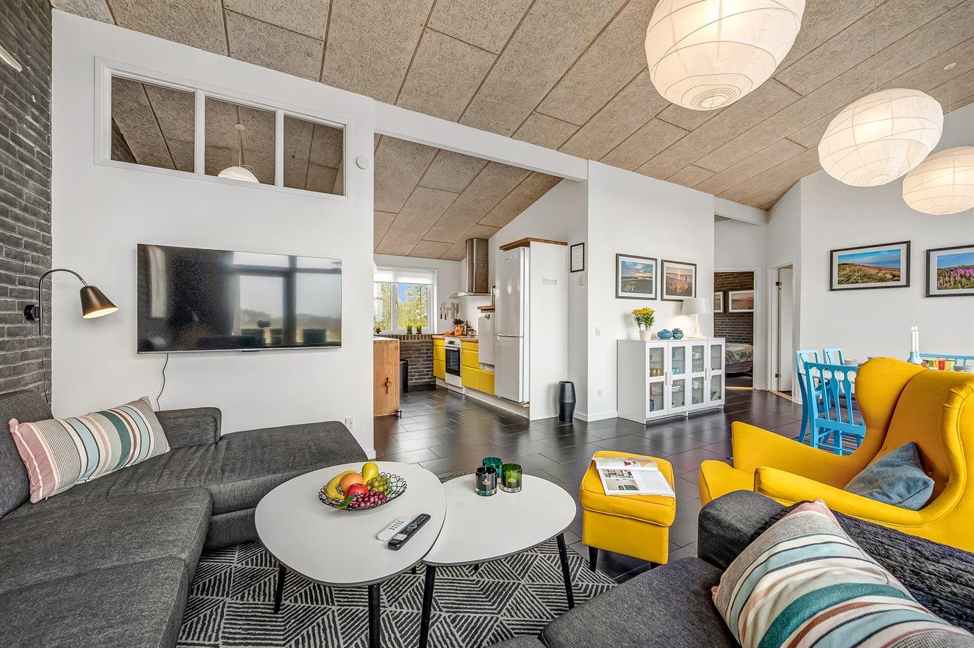 Holiday home suitable for 6 persons as well as 1 child up to 3 years. The holiday home is 117 m² and is build in 2012. In 2019 the holiday home was partial renovated. You can bring along 2 pets. The holiday home is equipped with energy-saving heat pump. There is floorheating all over the holiday home. The holiday home has washing machine. Tumble dryer. Freezer capacity of 60 litres. Further more there is 1 wood-burning stove. For the youngest ones there is 1 high chair.