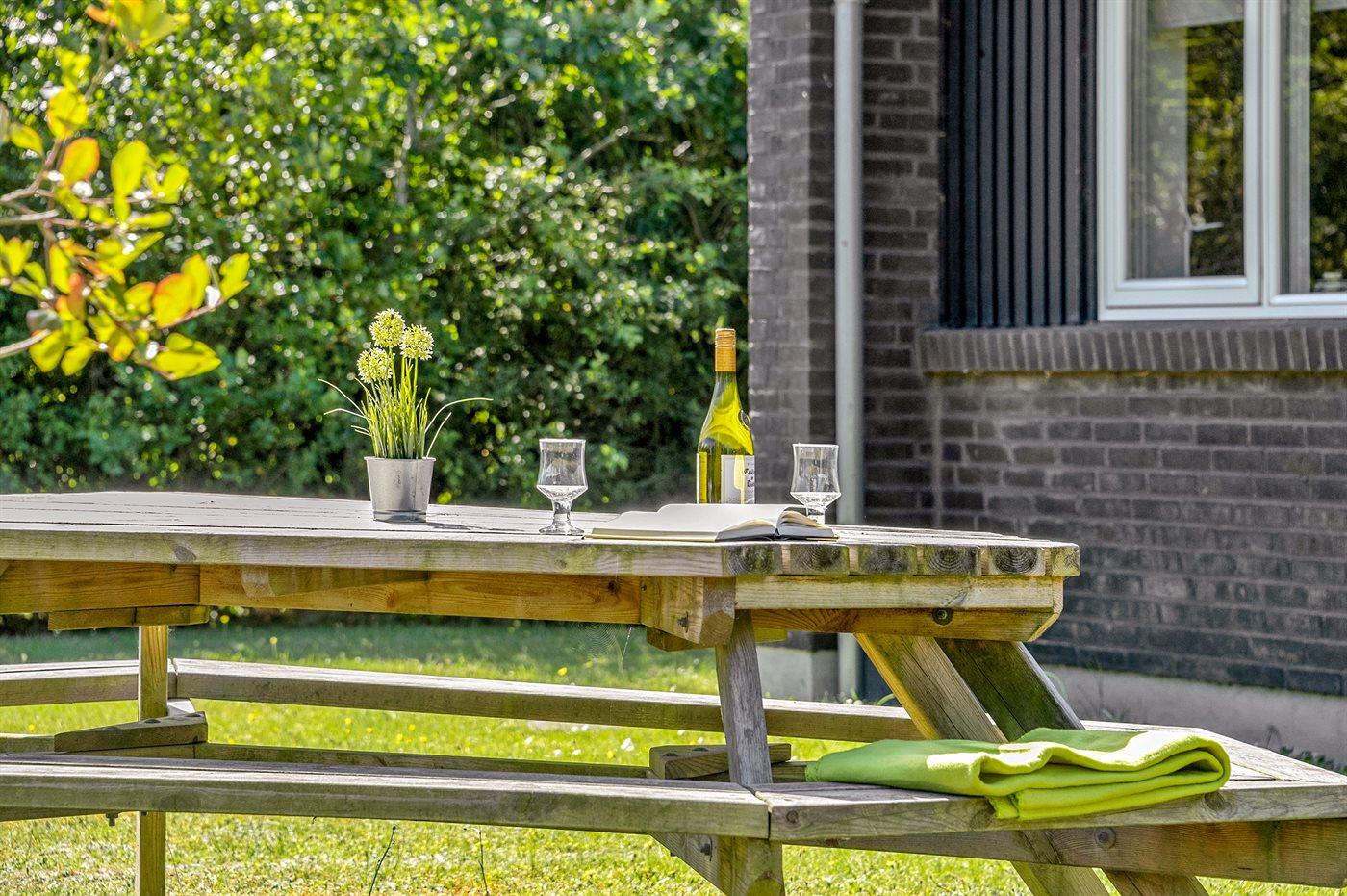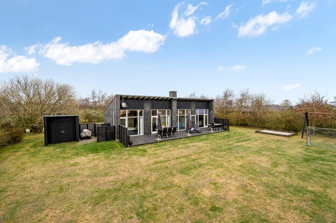 The holiday home is situated on a 1239 m² natural site. Situated 13000 m from the sea. Situated 600 m from inlet. A bathing jetty is available nearby. Nearest shop is 500 m away. A 80 m² terrace belong to the holiday home. You find a tool shed. Swing. Sandbox. Football goal. Situated 600 m from a playground. Parking place by the holiday home.
