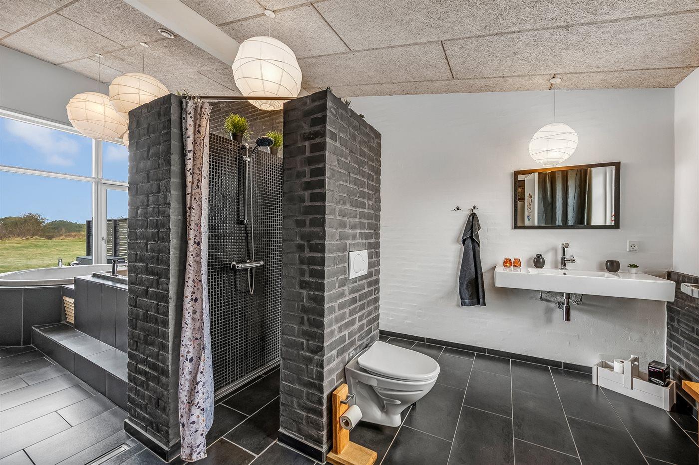 There is 1 bathroom with shower cabinet, bathtub and 1 toilet. There is floor heating in 1 bathroom.