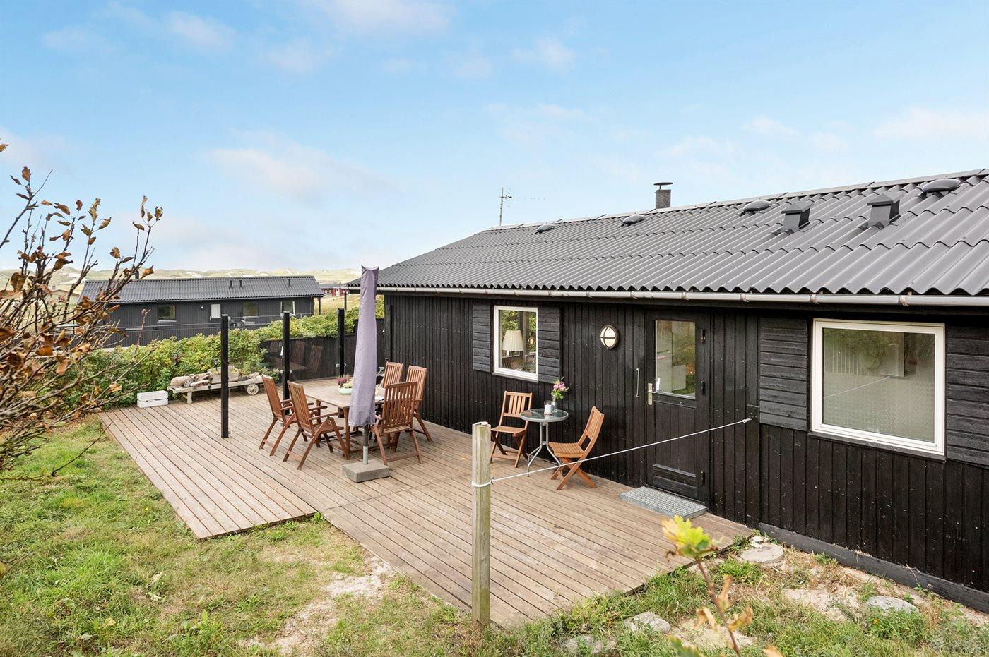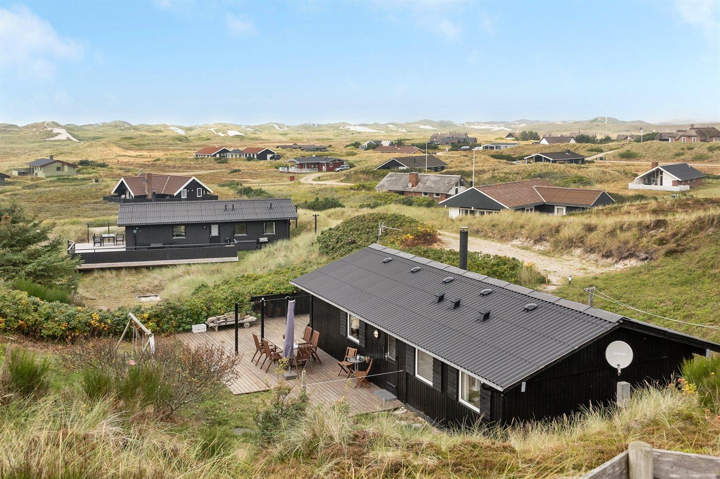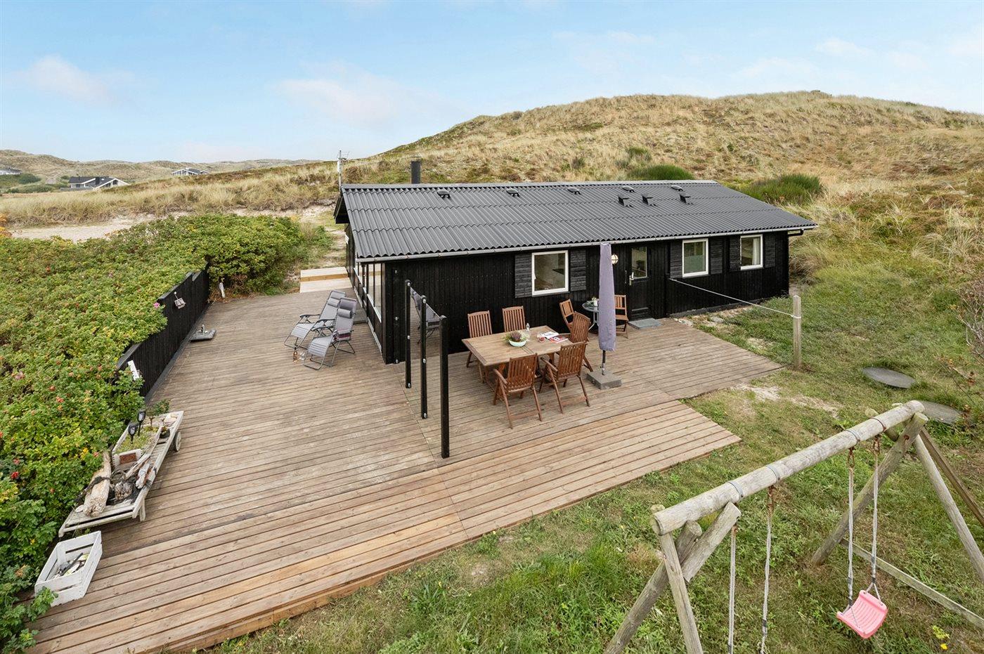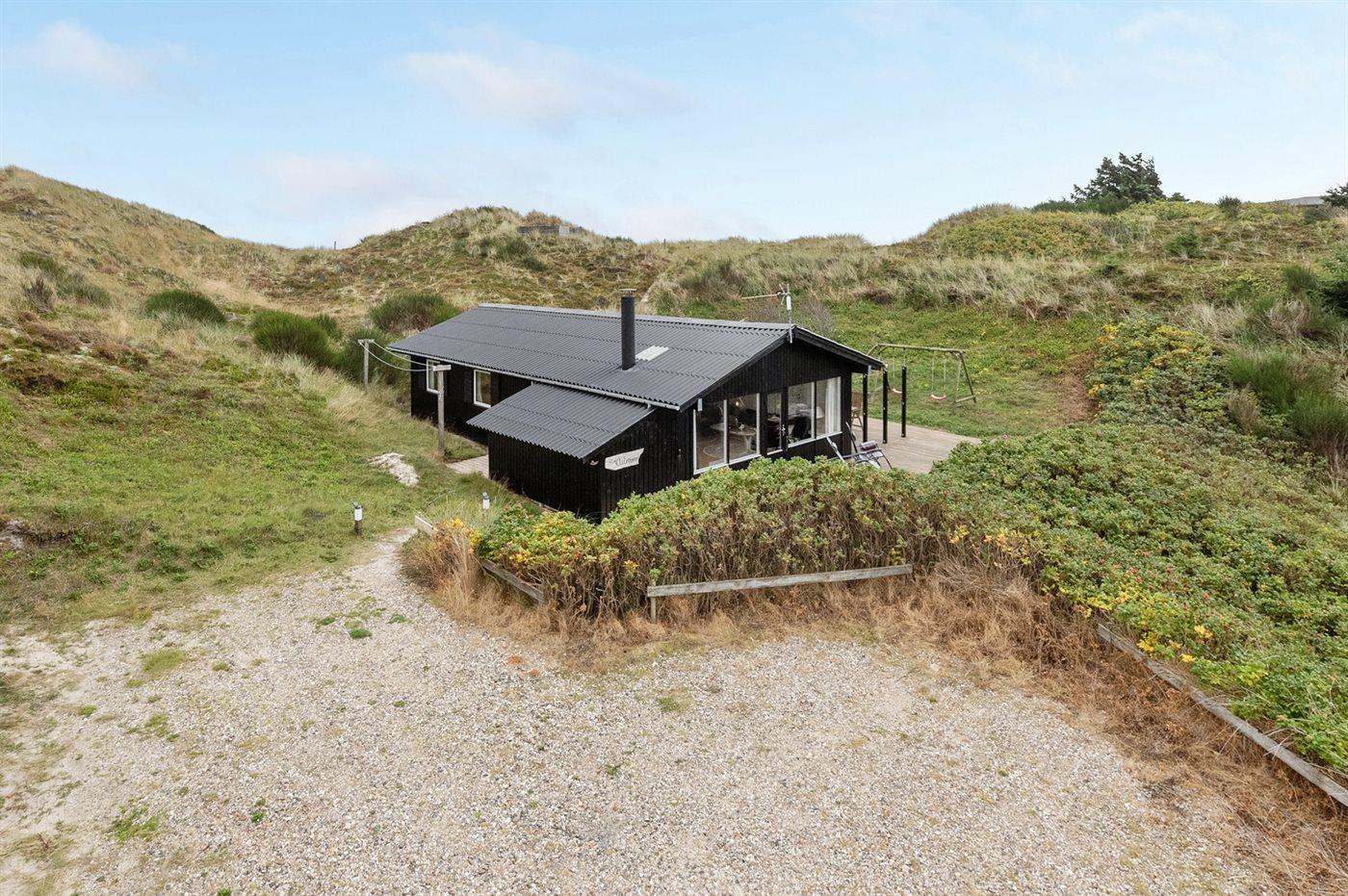 The holiday home is situated on a 2000 m² dune site. Situated 400 m from the sea. Nearest shop is 4500 m away. A 50 m² terrace belong to the holiday home. You find a tool shed. Swing. Parking place by the holiday home.