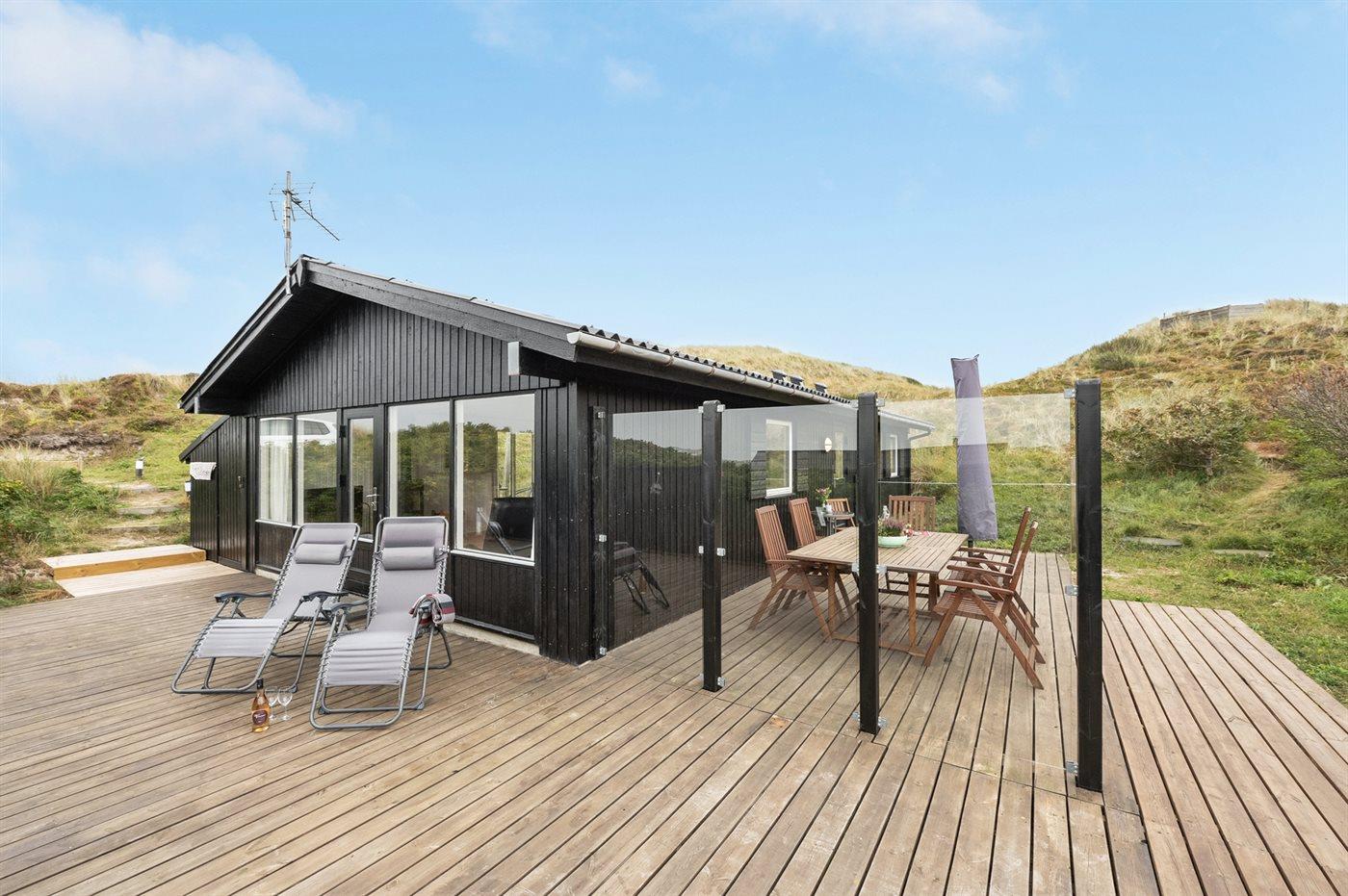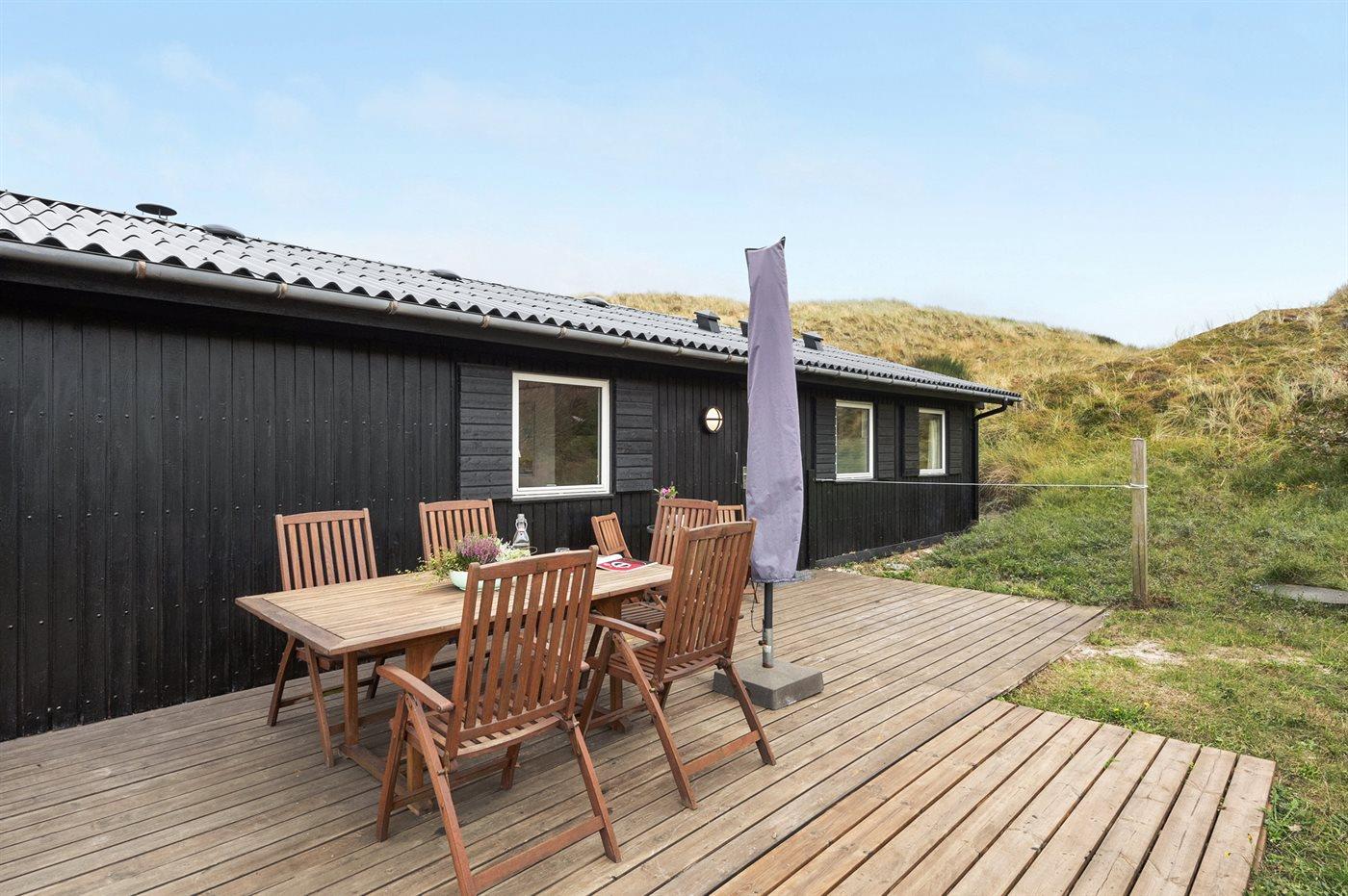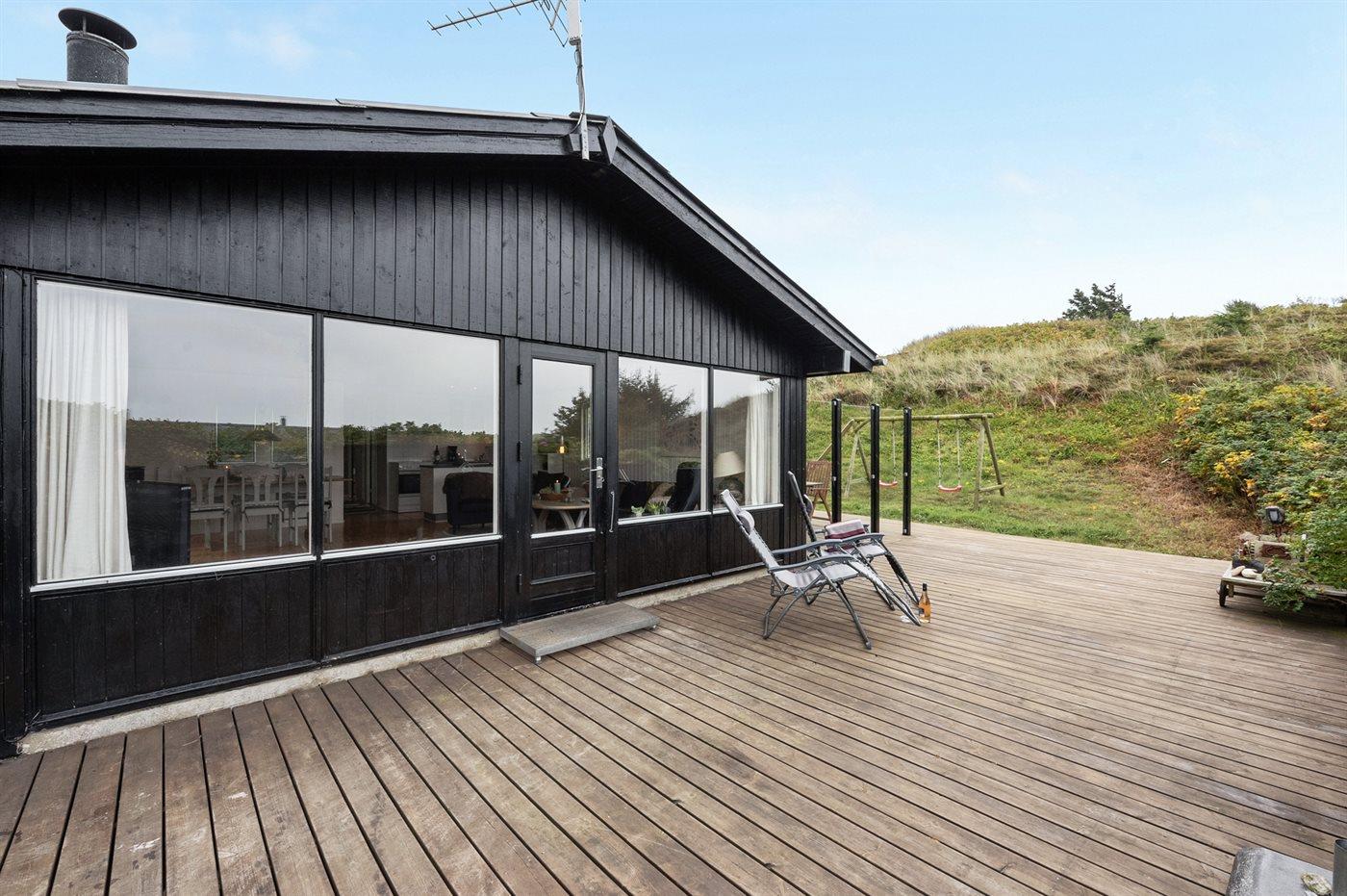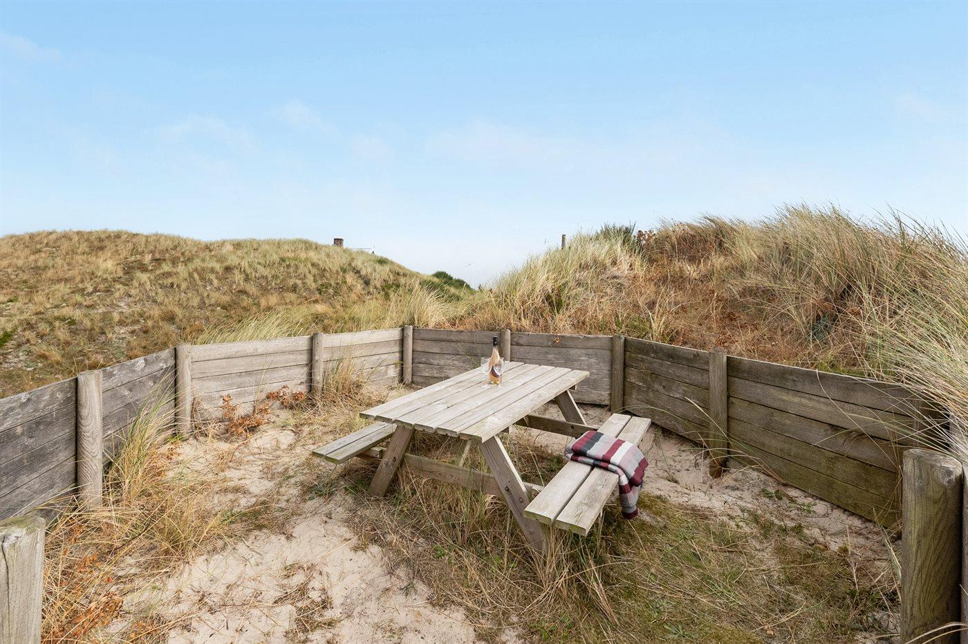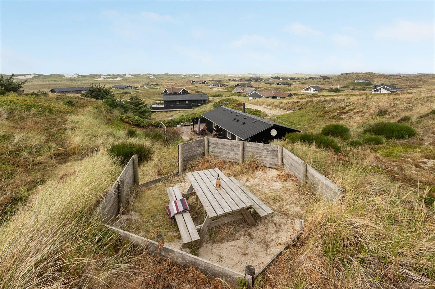 The holiday home is situated on a 2000 m² dune site. Situated 400 m from the sea. Nearest shop is 4500 m away. A 50 m² terrace belong to the holiday home. You find a tool shed. Swing. Parking place by the holiday home.