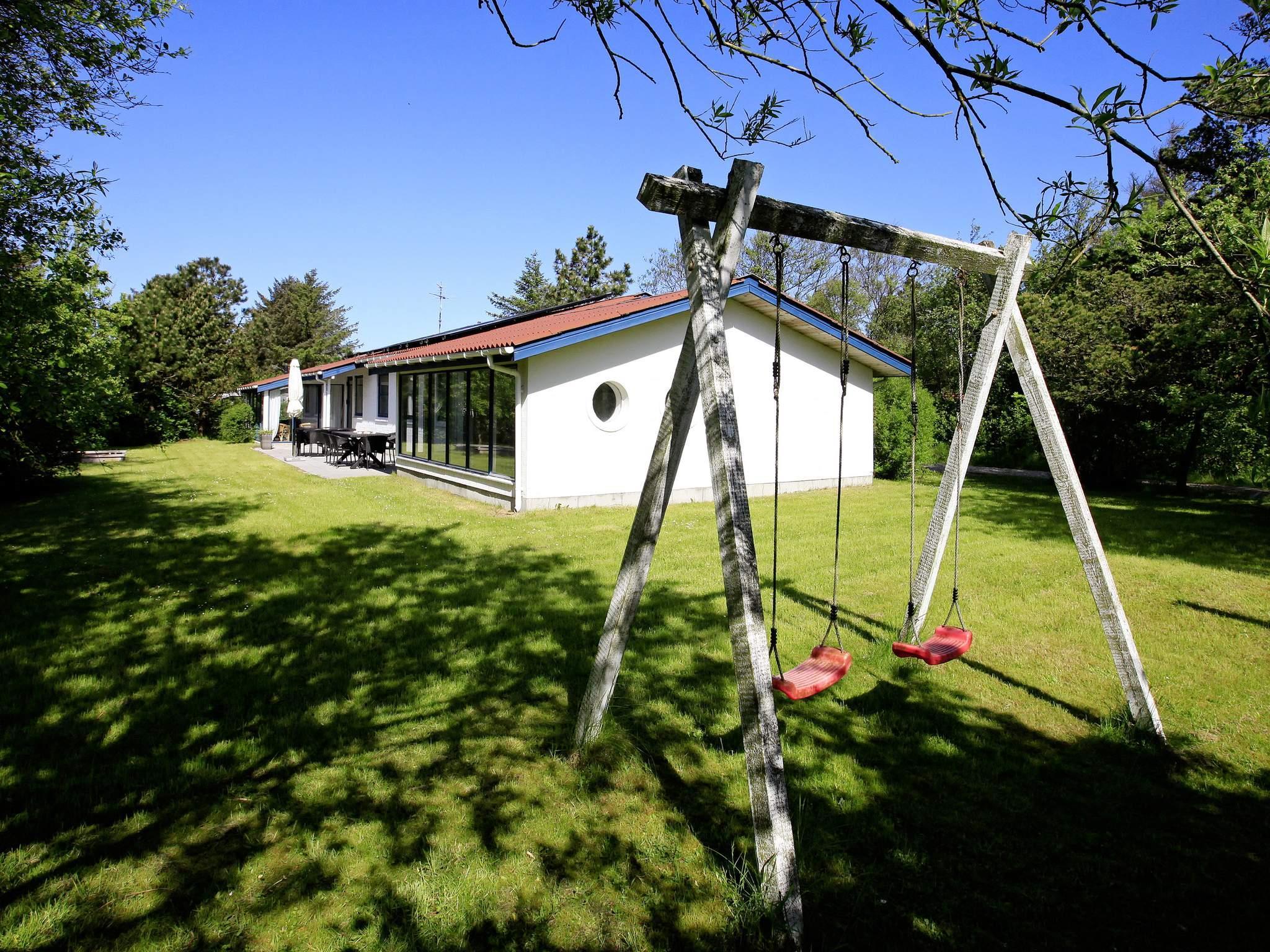 Ringsum das Ferienhaus stehen mehrere Terrassenflächen zur Auswahl, auf denen man z.B. abends gut abgeschirmt sitzen und grillen kann. Das Haus steht auf einem geschützten Naturgrundstück mit Rasenfläche für Spiel, Sport und Spaß im Freien. Für Kinder gibt es einen Sandkasten und eine Schaukel am Haus.