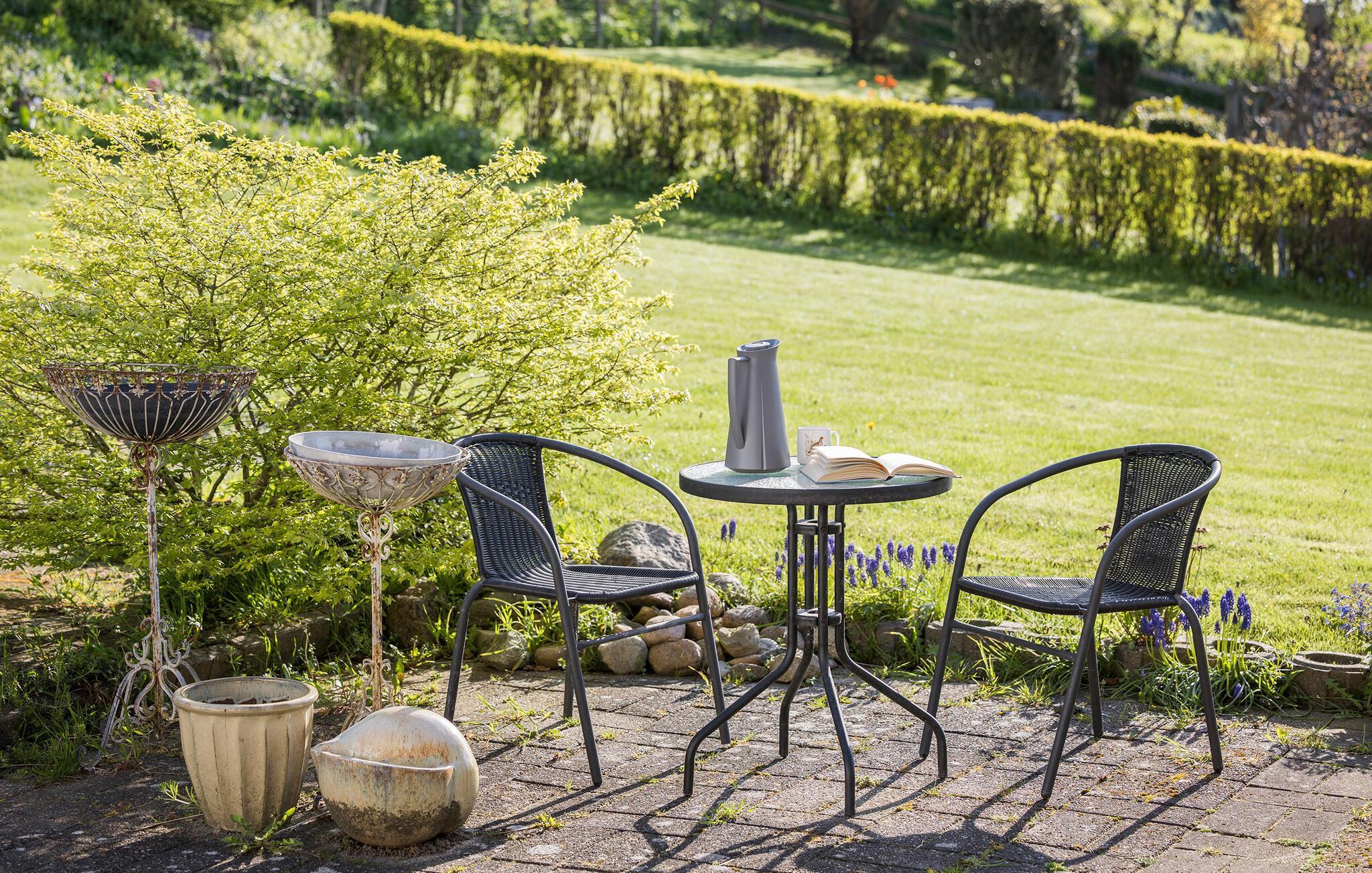 Die Terrasse lädt dazu ein, schöne Stunden im Freien zu verbringen. Lassen Sie hier die Seele baumeln, genießen Sie die Sonne und servieren Sie den Nachmittagskaffee unter freiem Himmel.