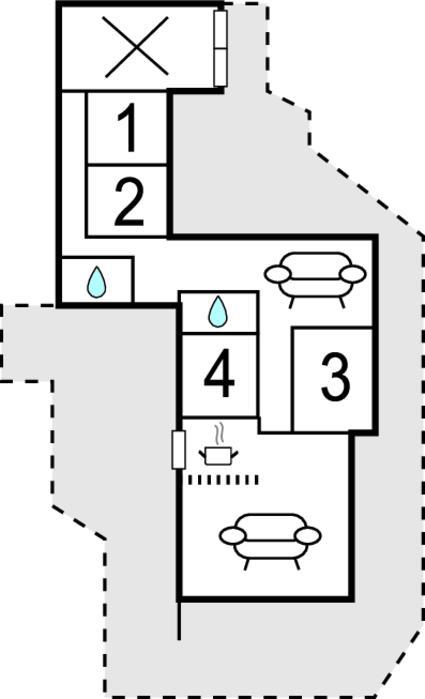 Badezimmer 5m2 (nr. 1) - WC. Warmes und kaltes Wasser. Dusche