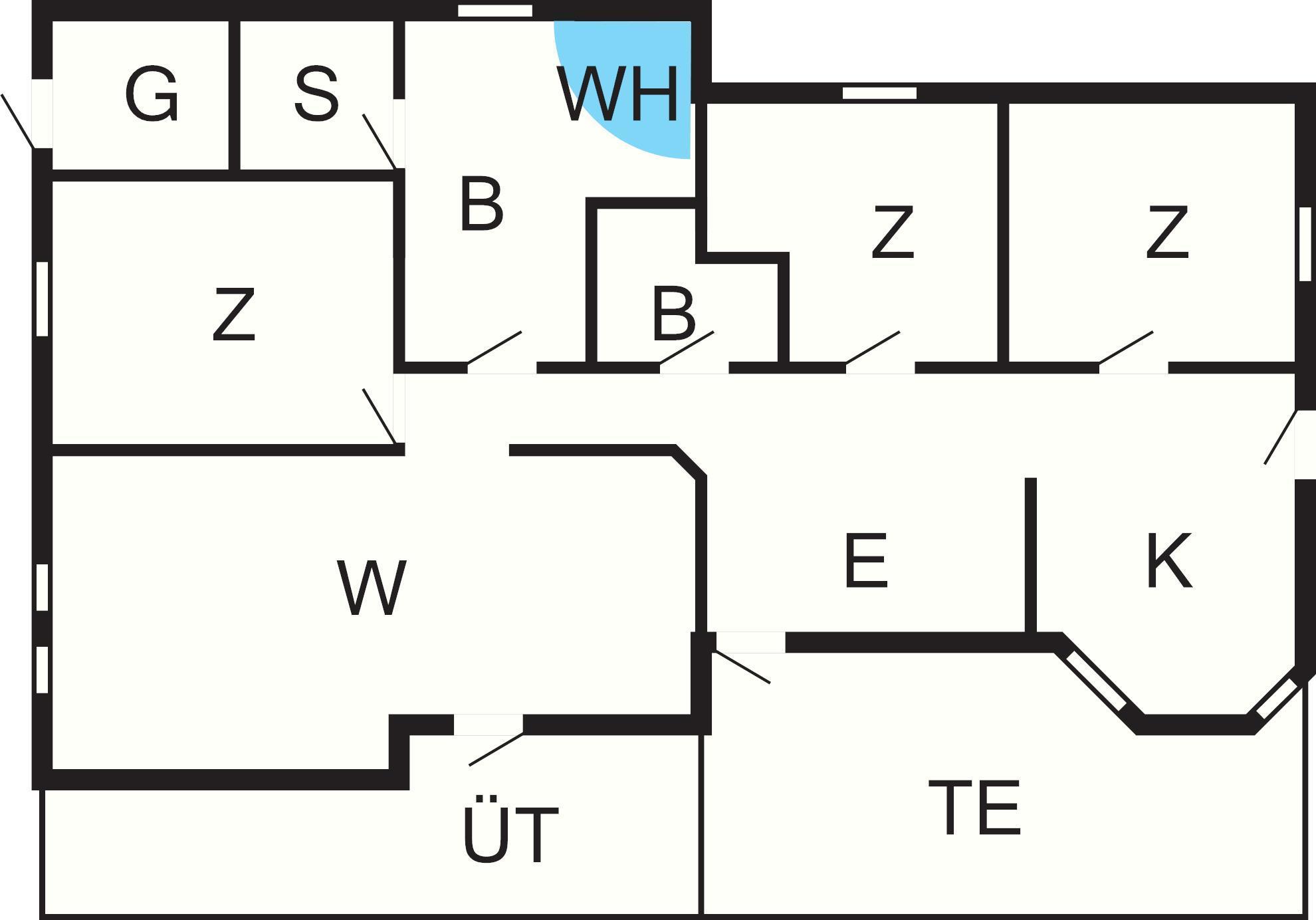 Bad: Waschm, Trockner, WC, Waschb., Dusche, Fußbodenheiz.
