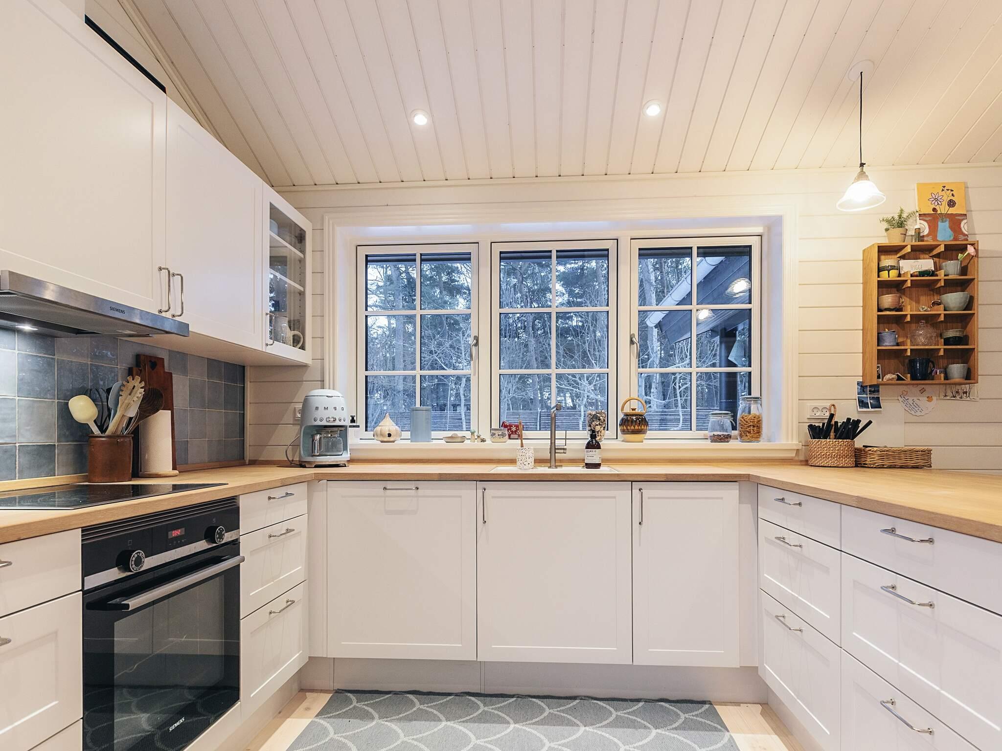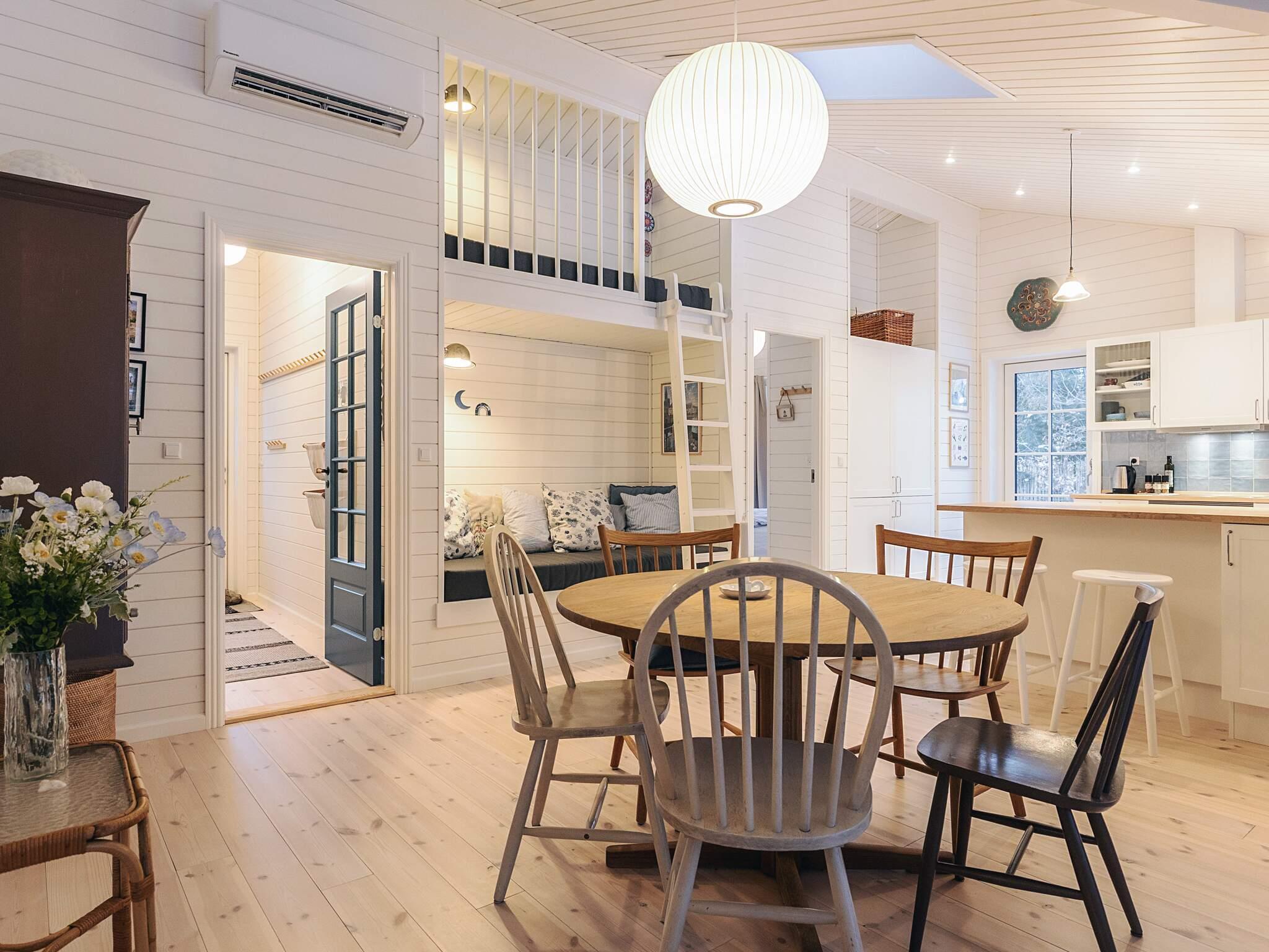 Dieses gemütliche Ferienhaus bietet viel Platz für Familien oder Gruppen in seinen drei komfortablen Schlafzimmern; eines mit Doppelbett, eines mit drei Einzelbetten und ein weiteres mit einem Doppelbett. Zusätzlich gibt es eine Schlafnische mit zwei Zusatzbetten, die ideal für größere Gruppen oder Kinder ist. Das gemütliche Familienzimmer verfügt über einen Holzofen, der sich perfekt zum Entspannen nach einem Tag voller Abenteuer eignet. Das Haus hat eine gut ausgestattete Küche mit u.a. Elektroherd, Kühl-Gefrierkombination, Mikrowelle, Kaffeemaschine und Spülmaschine erleichtern die Zubereitung von Mahlzeiten.