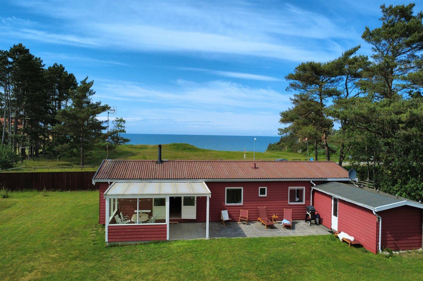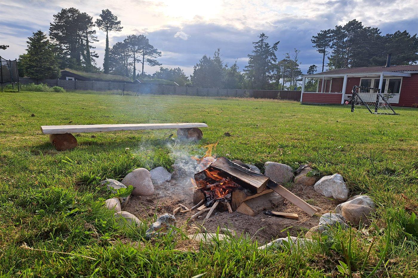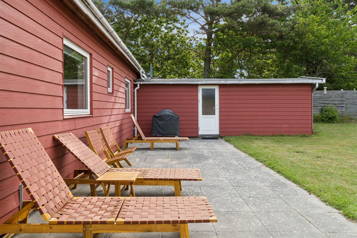 The holiday home is situated on a 1875 m² garden site. Situated 100 m from the sea. Nearest shop is 1000 m away. A terrace belong to the holiday home. Furthermore the house has a covered terrace. Swing. Trampoline. Football goal.Fire place. Barbecue at your disposal. Parking place by the holiday home.