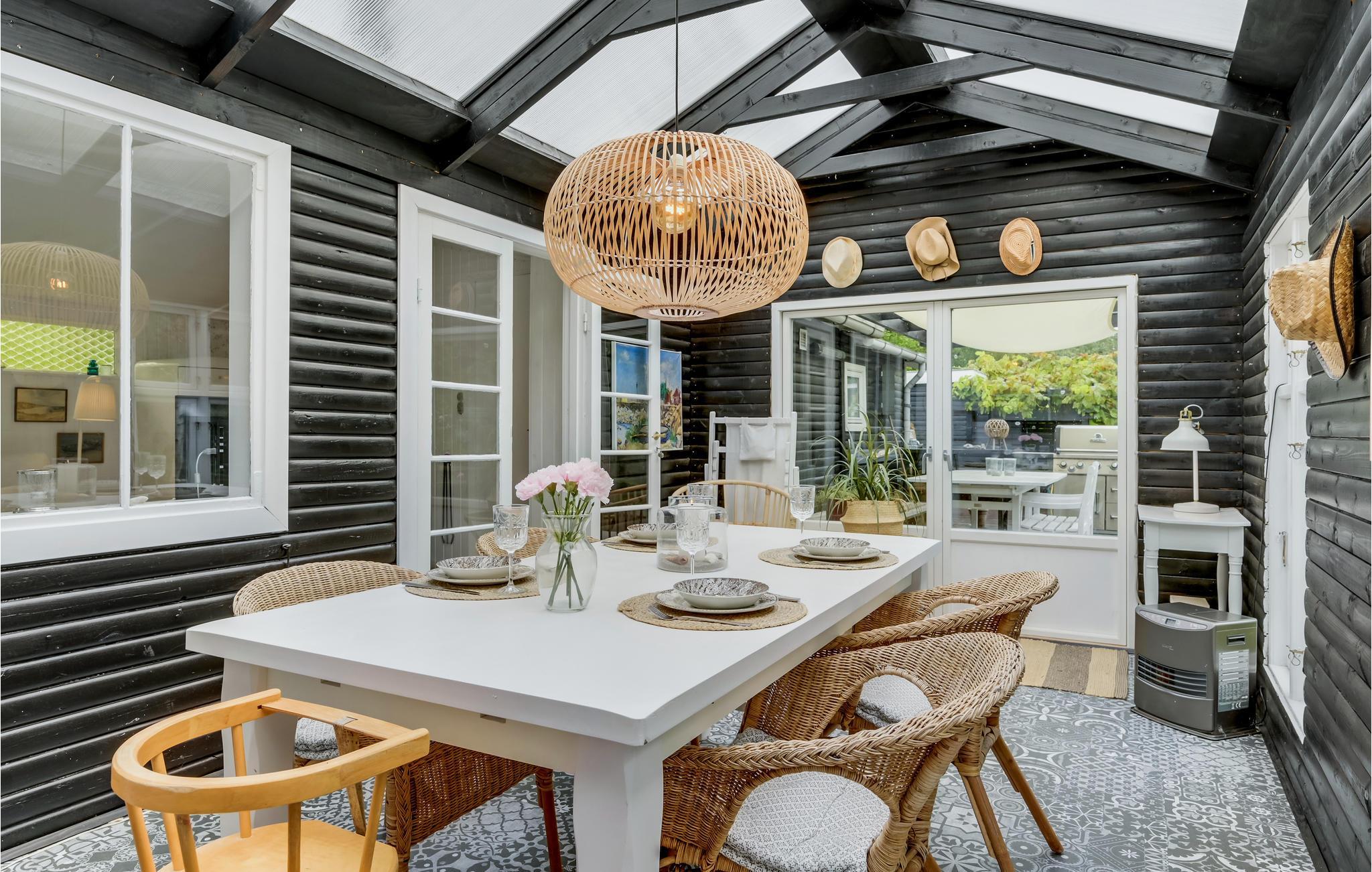 Westlich von Gilleleje lädt Sie das charmante Ferienhaus Vida zu einem erholsamen Familienurlaub ein. Im Innenraum erwartet Sie ein helles, geschmackvolles Interiur mit liebenvollen Details in der Einrichtung. Genießen Sie die Mahlzeiten im hellen Essbereich oder im Wintergarten. Machen Sie sich es abends in der gemütlichen Sofaacke bequem und unterhalten Sie sich beim Brettspieln.