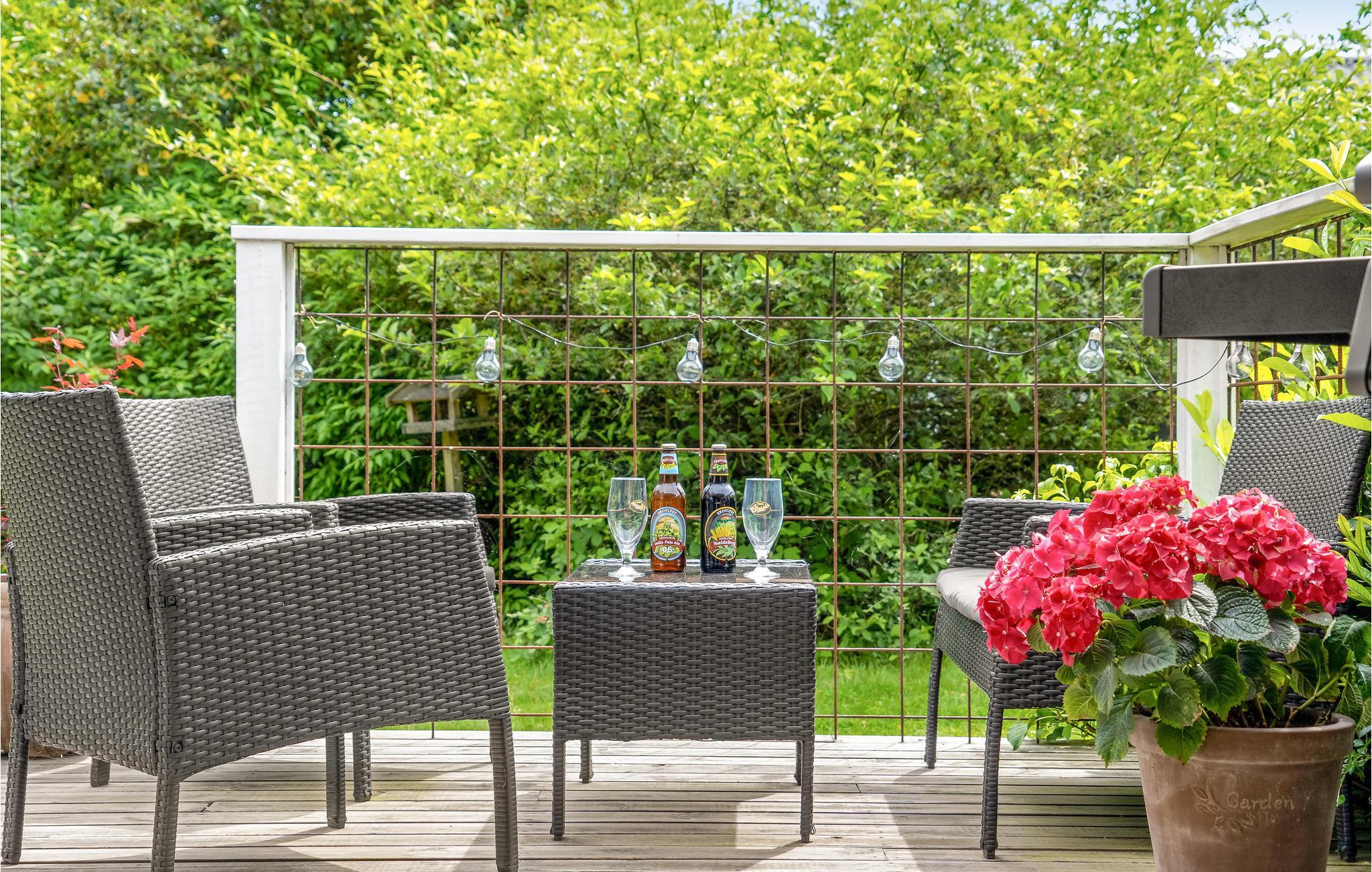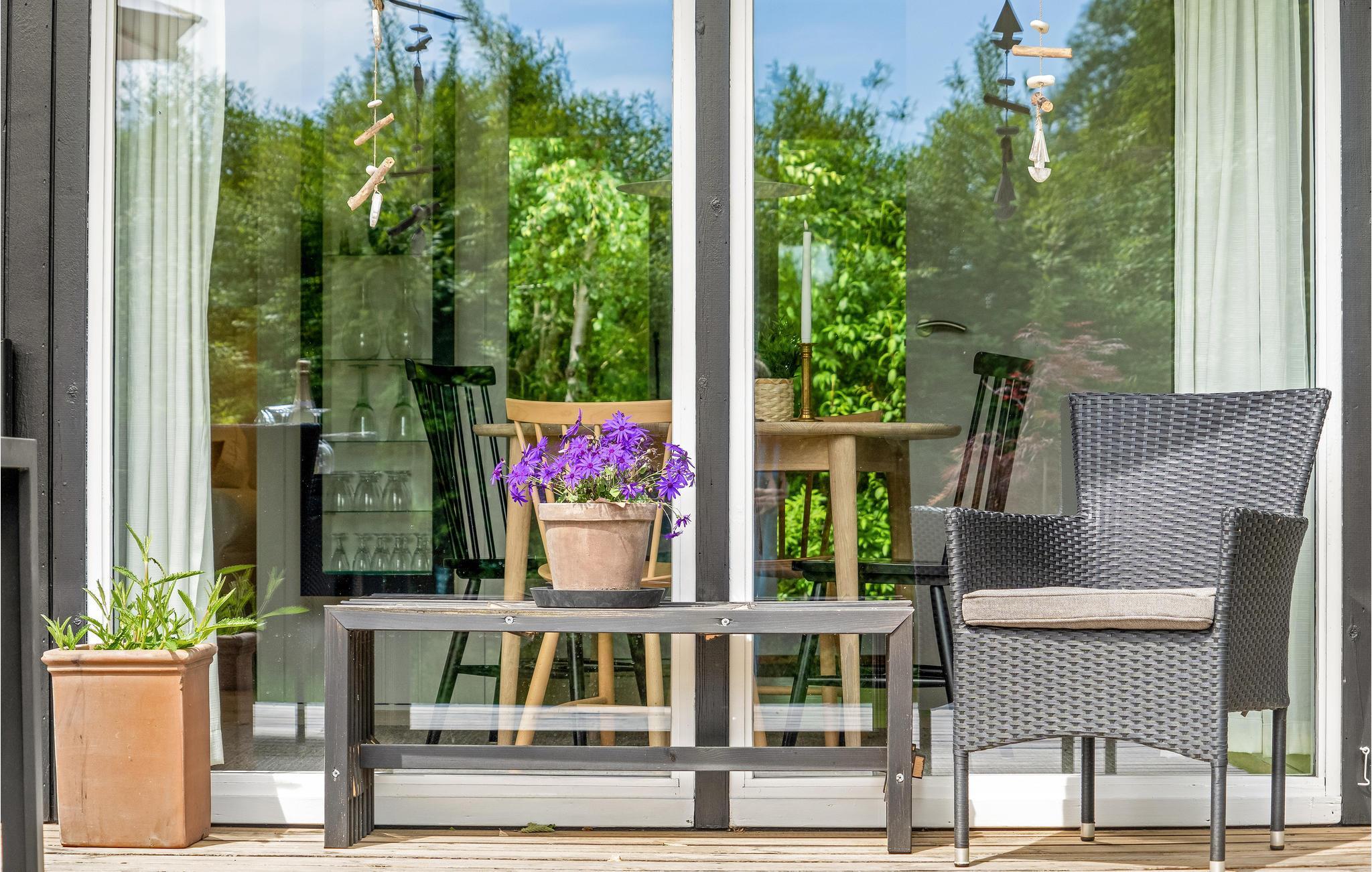 Draußen sitzen Sie idyllisch auf der offenen und überdachten Terrasse, vielleicht brutzeln Sie etwas Leckeres auf dem Grill. Spülen Sie sich nach einem Strandtag unter der Außendusche ab und verbringen Sie lange Sommerabende am Lagerfeuer.
