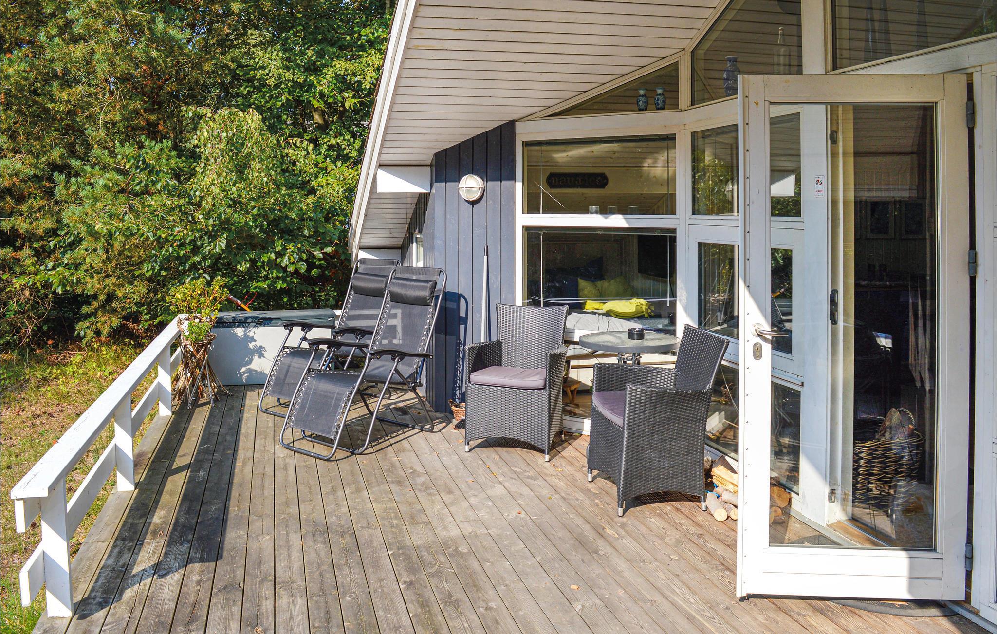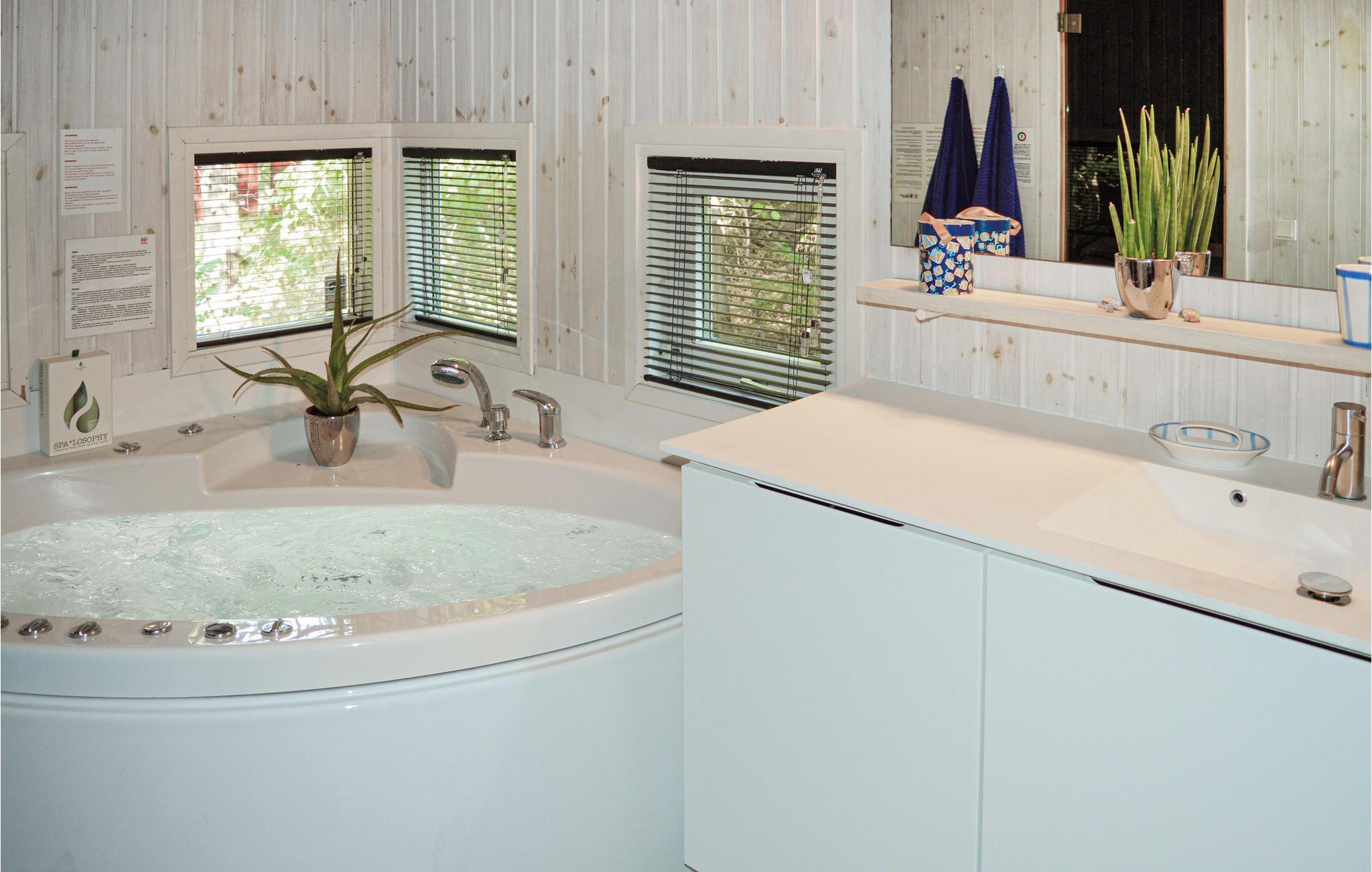 In einem attraktiven und ruhigen Ferienhausgebiet mit Einkaufsmöglichkeiten und nur wenige Gehminuten vom Wasser entfernt, heißt Sie dieses moderne Holzhaus willkommen. Das Haus ist geschmackvoll eingerichtet mit modernen dänischen Möbeln, die farblich ideal auf das restliche Interieur abgestimmt sind und einen stilvollen, persönlichen Eindruck hinterlassen. Bereiten Sie Ihre Lieblingsgerichte in der gemütlichen Küche zu, spielen Sie unterhaltsame Brettspiele am Esstisch und genießen Sie an kühlen Abenden das Knistern des Kaminofens. Im Whirlpool und in der Sauna können Sie sich entspannen und nach einem langen Spaziergang pure Wellness genießen.
