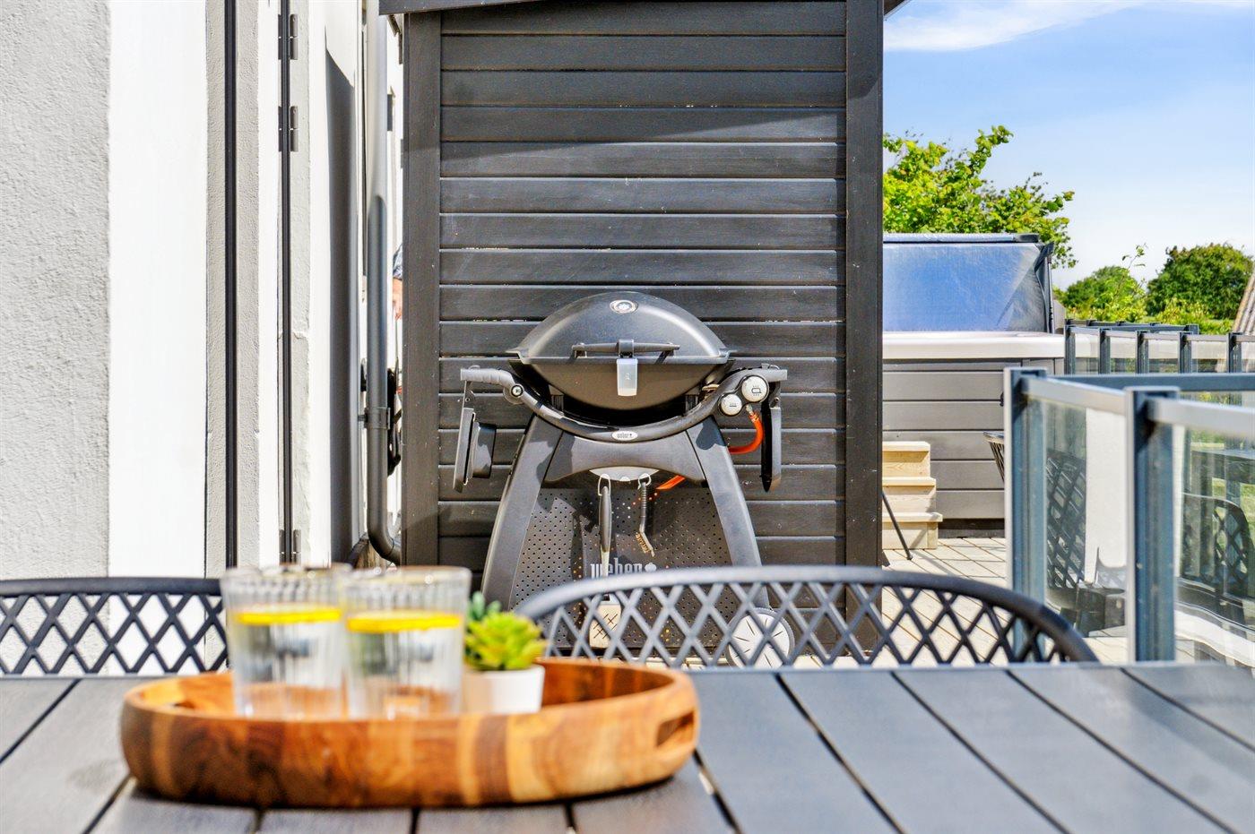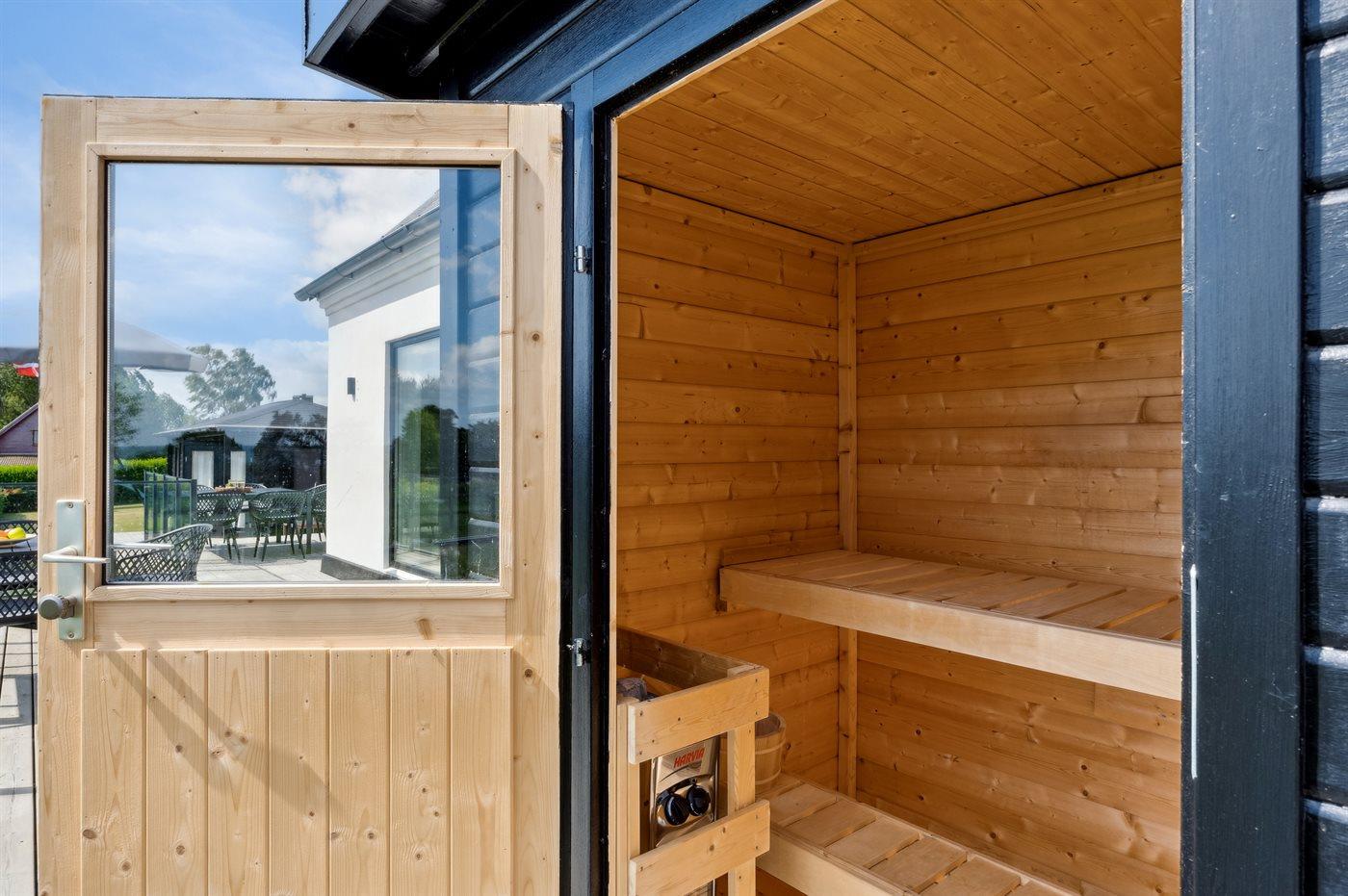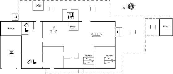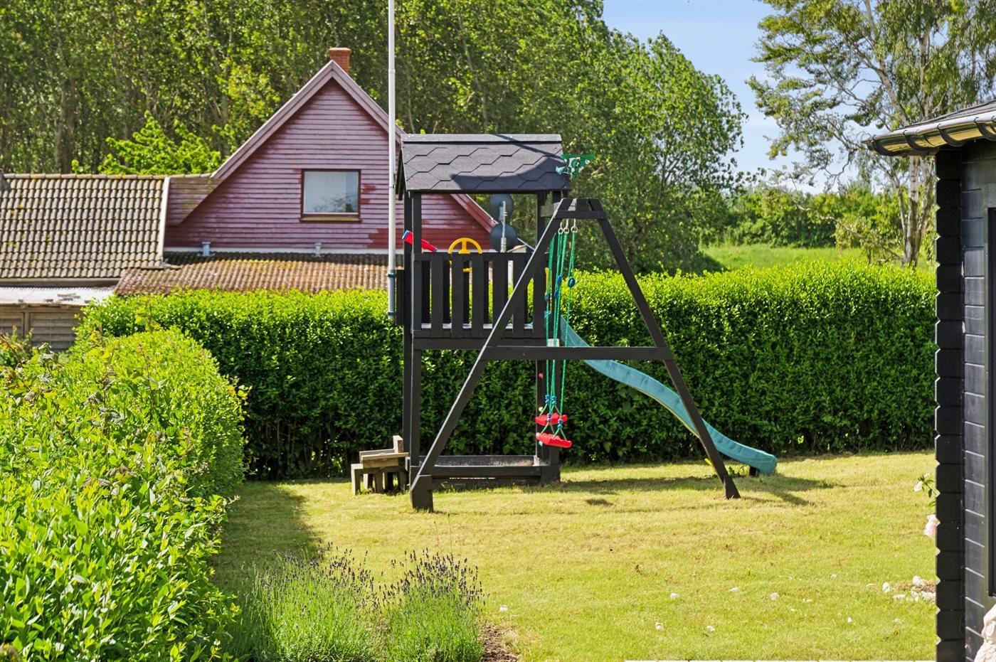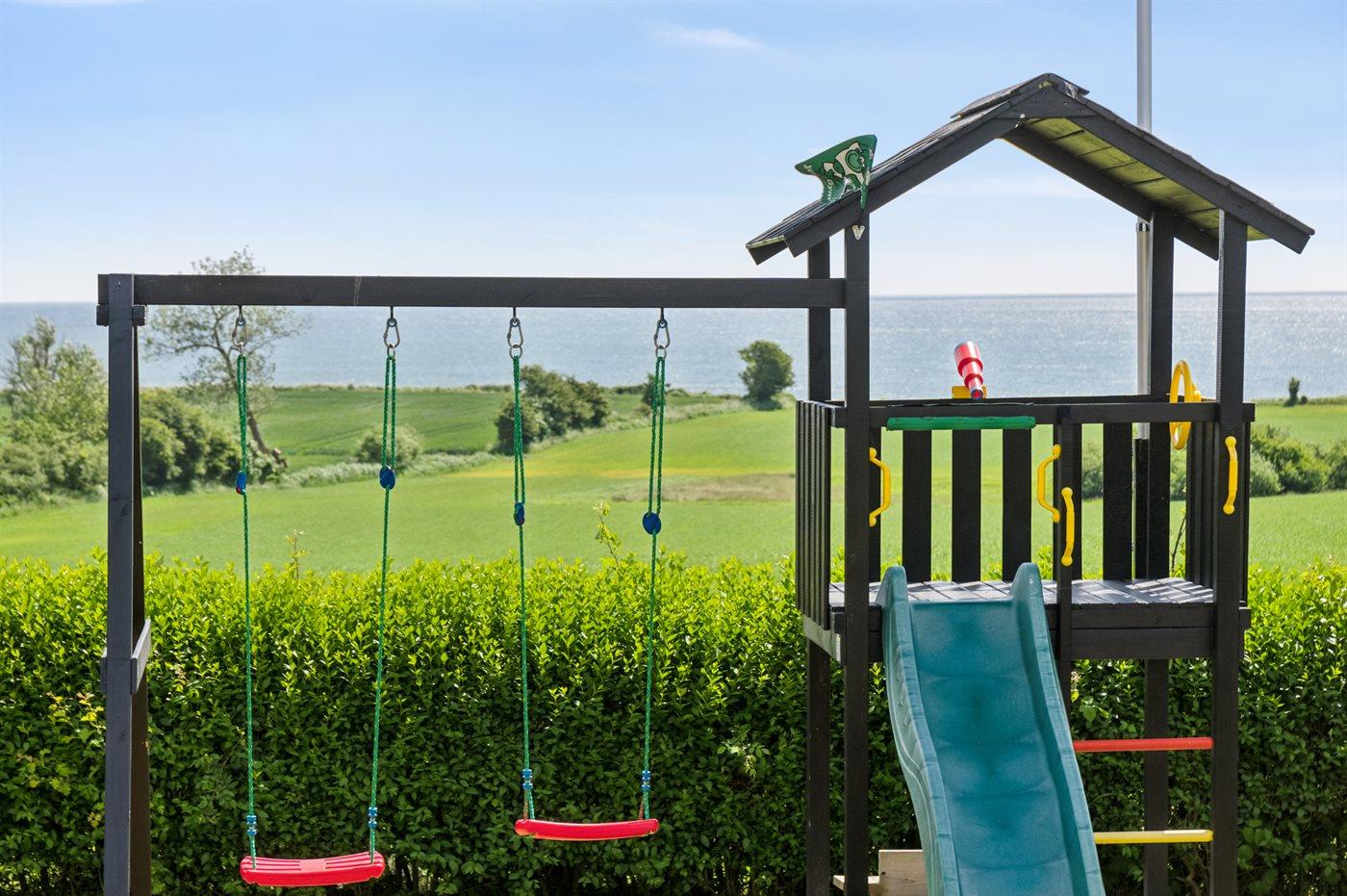 The holiday home is situated on a 788 m² garden site. Situated 450 m from the sea. Nearest shop is 1000 m away. A terrace belong to the holiday home. Furthermore the house has a covered terrace. Swing. Sandbox. Play tower. Slide. Outdoor sauna. Barbecue at your disposal. Garage at your disposal. Plug for charging electric car is available. CEE socket. Parking place by the holiday home.