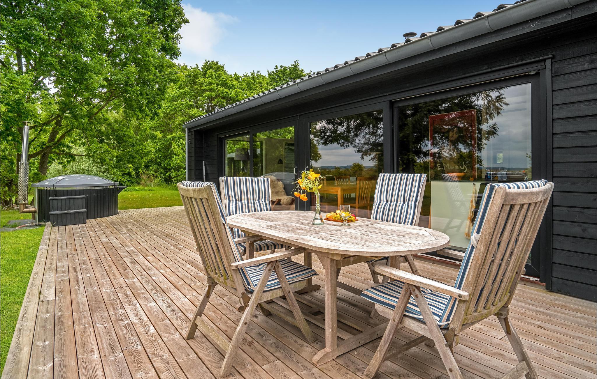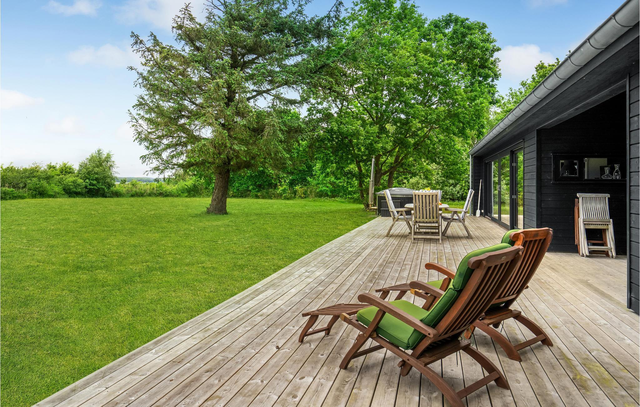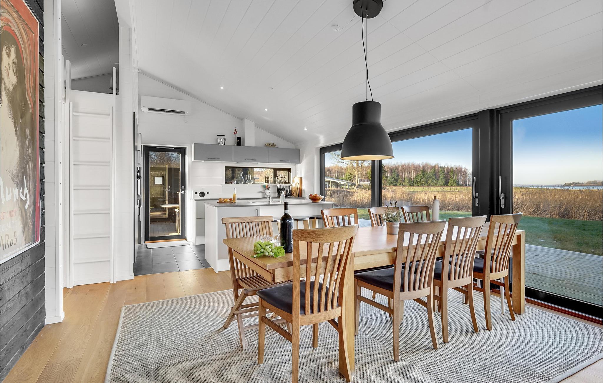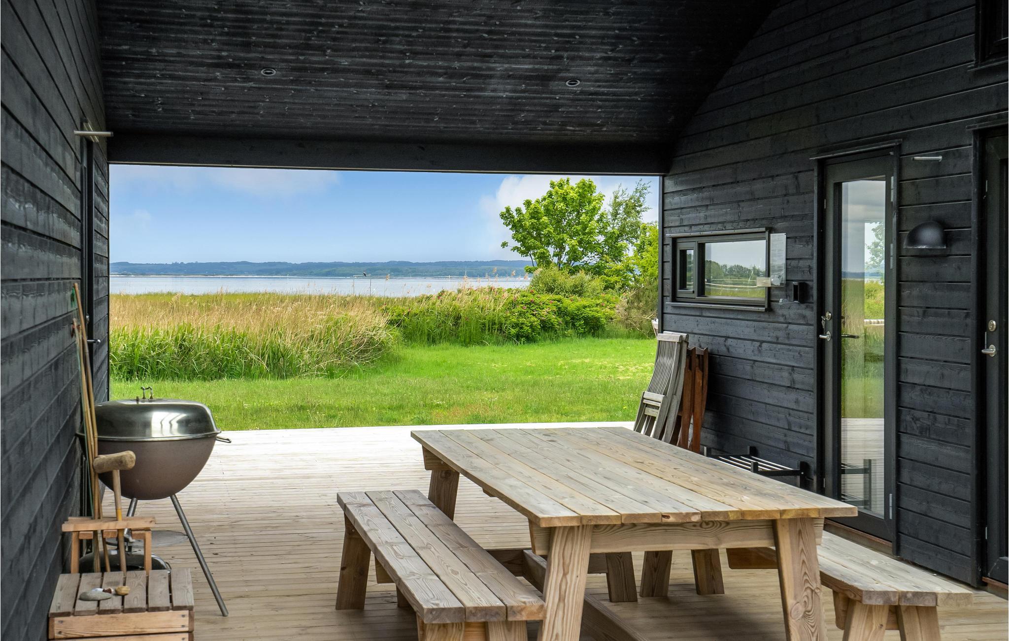 Die Glasfronten lassen den Raum mit Licht durchfluten, welches das natürliche Ambiente des ganzen Hauses verstärkt. Des weiteren lädt diese moderne Ausstattung Sie ein sich in diesem Ferienhaus am Hals Strand voll und ganz wohlzufühlen. Der ganze Wohnraum ist miteinander verbunden, was es sehr leicht für Sie macht sich frei und flüssig zu bewegen. Stellen Sie sich vor, das geschmackvolle Frühstück mit frisch gebrauten Kaffee in dieser ideal ausgestatteten Küche vorzubereiten und darauffolgend sich bei Tisch draußen oder drinnen zu treffen, um den Tag gemeinsam in Angriff zu nehmen.