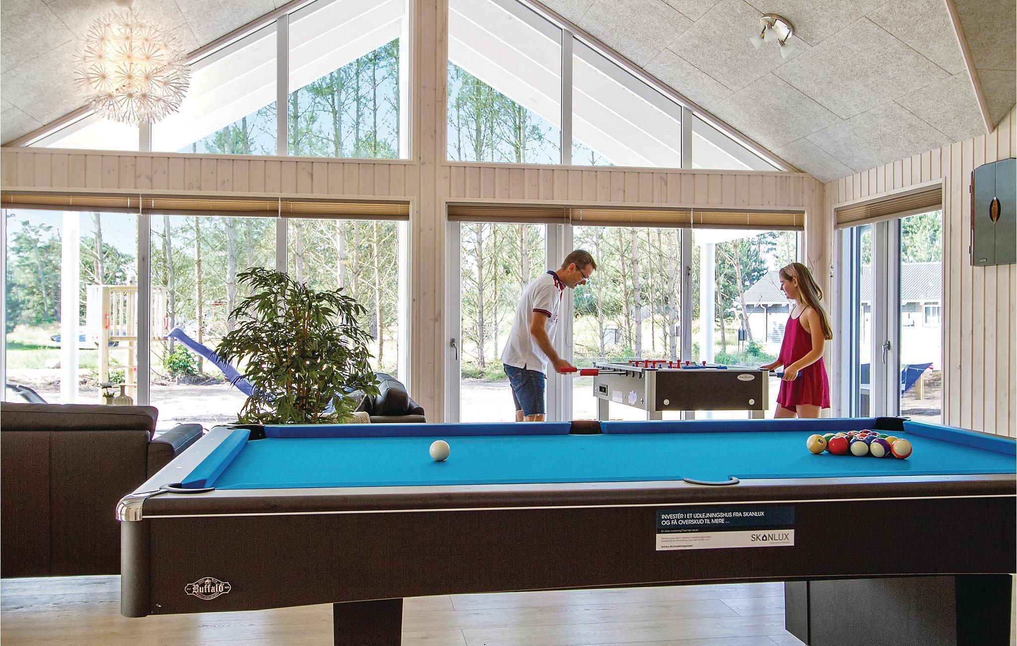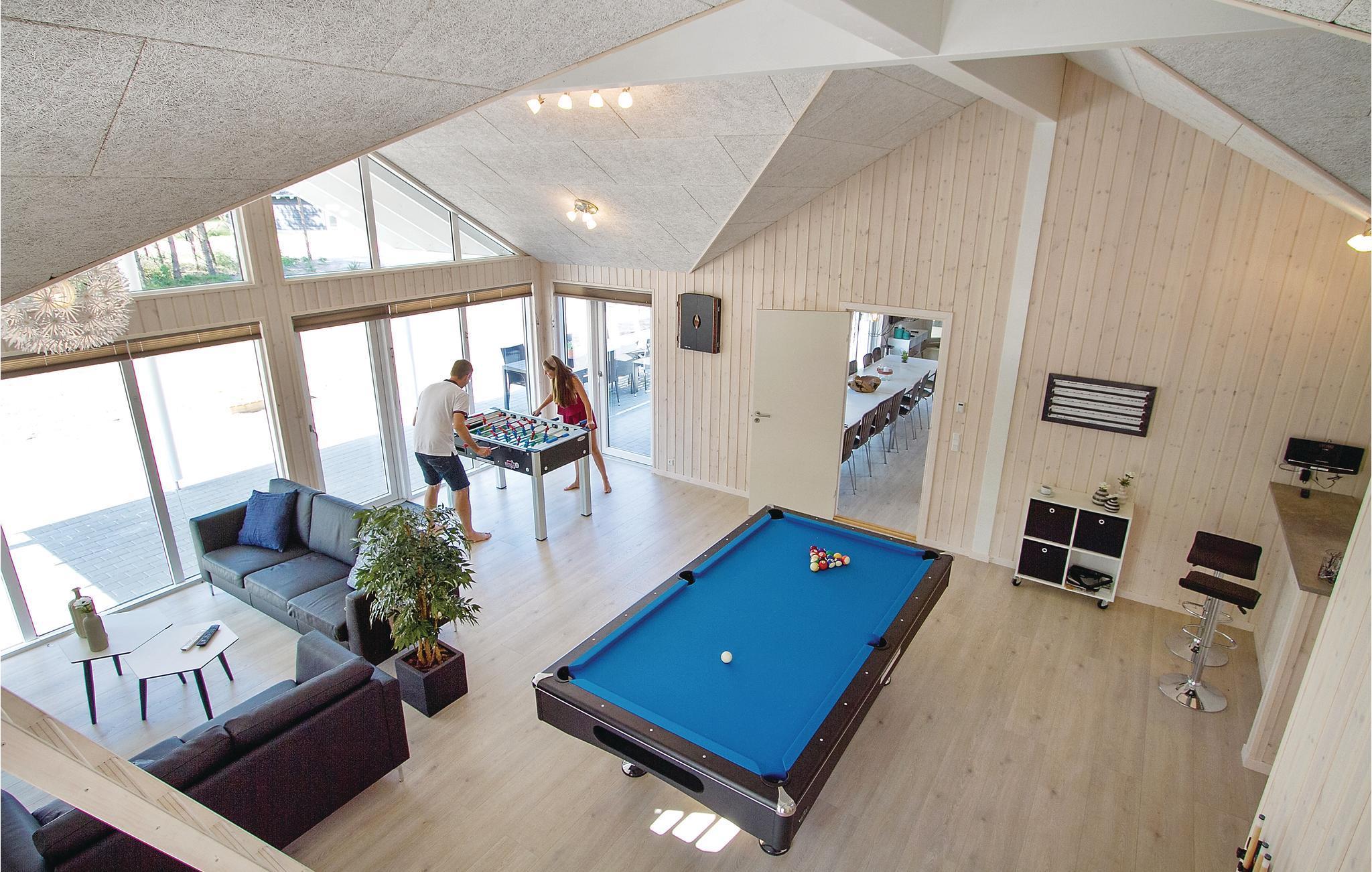 Das große und gut ausgestattete Qualitätsferienhaus ist ein Zentrum an Behaglichkeit. Es bietet auch zu jeder Jahreszeit Möglichkeiten zu einem aktiven Aufenthalt. Es eignet sich aufgrund seiner Qualität und Ausstattung auch für Teambuilding-Arrangements und anderen Firmenveranstaltungen. Im gepflegten Haus gibt es einen Swimmingpool mit Rutsche, hier werden alle schöne Stunden erleben. Sie können Wohlgefühl auch im Whirlpool und der Sauna genießen. Rund um den Esstisch gibt es viel Platz und in der offenen Küche gelingen Urlaubsgerichte ganz einfach. Im Spielzimmer finden Sie Tischtennis, Billard und Tischfußball. Und für Ihre Kinder sind im Garten Schukel, Sandkasten und Spielturm vorhanden. Hier können Sie überall herrlich entspannen. Vom Haus haben Sie es nicht weit zum ausgezeichneten Sandstrand, zu gemütlichen, kleinen Läden und zu Restaurants.