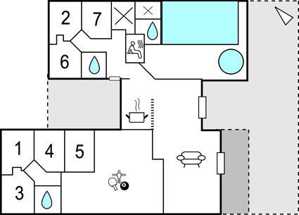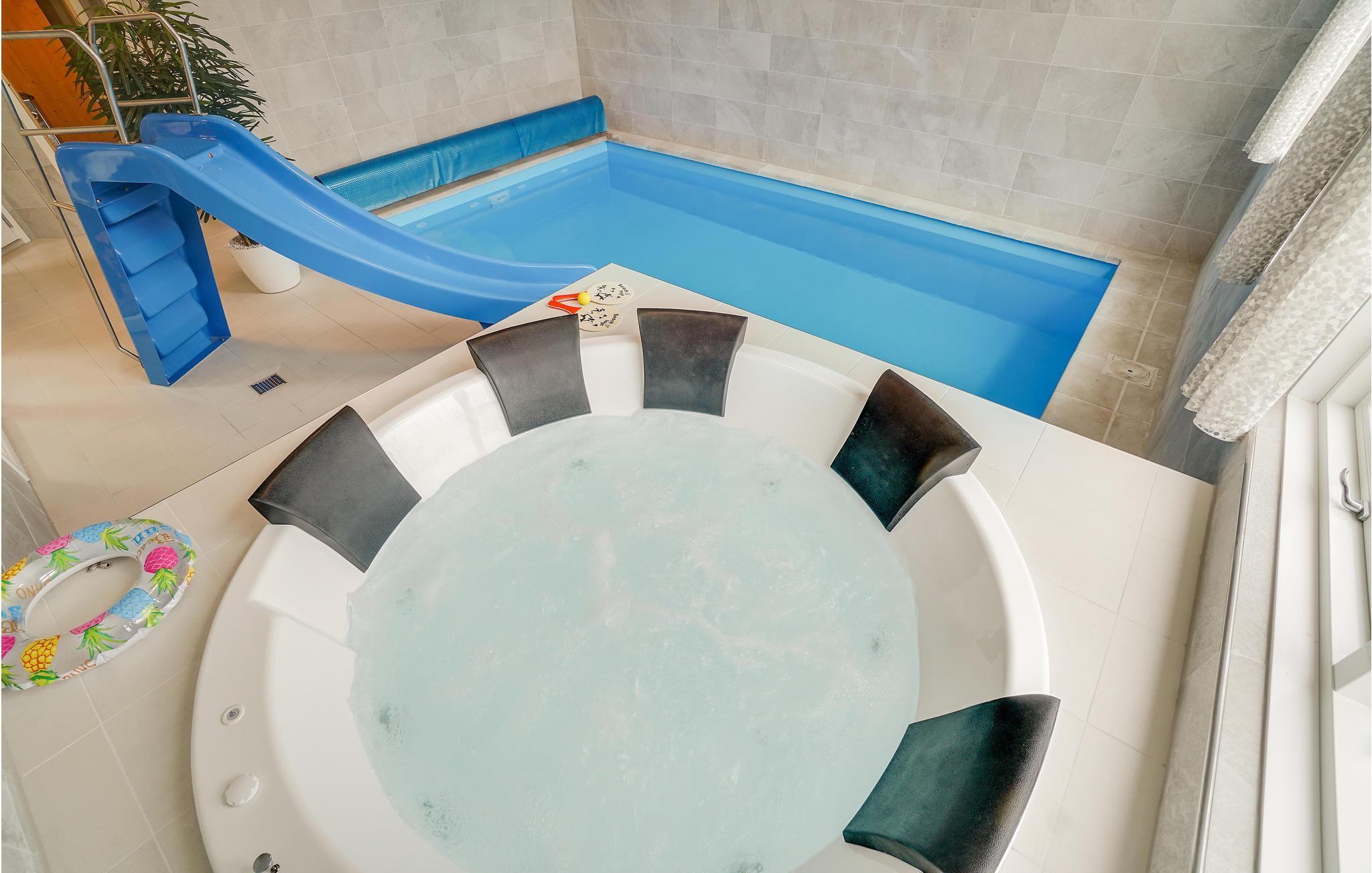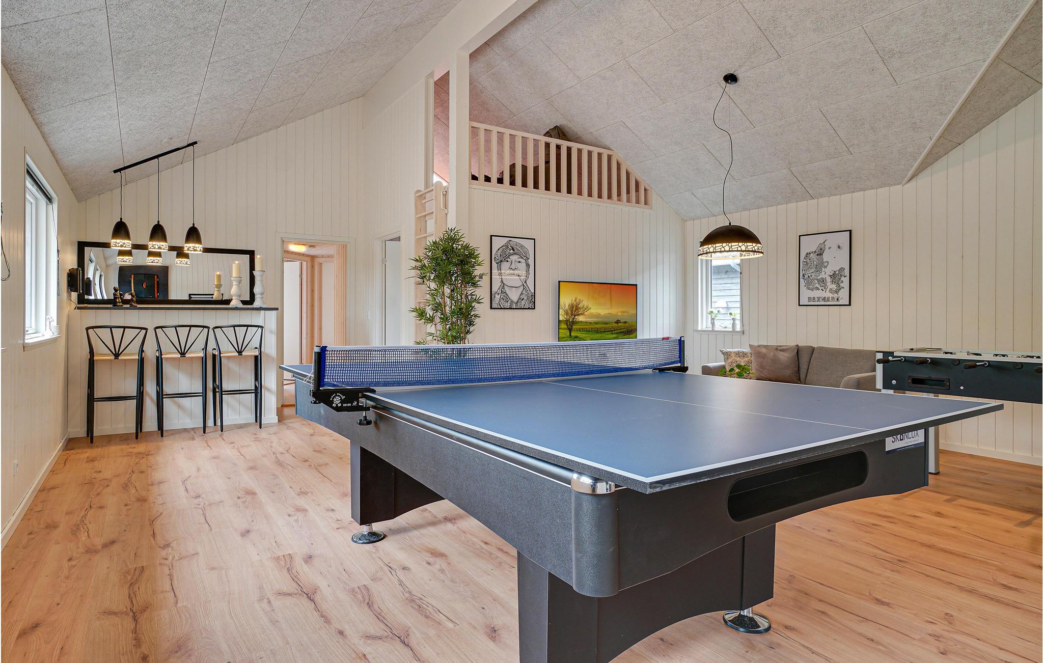 Dieses schöne und sehr gut ausgestattete Ferienhaus strahlt Urlaubsfreude aus und bietet zu jeder Jahreszeit zahlreiche Aktivitätsmöglichkeiten. Das moderne Haus erscheint überall einladend. Es gibt einen schönen, innenliegenden Swimmingpool, wo die Kinder und kindliche Seelen stundenlang im Wasser herumtollen können. Sie können Ihren Urlaub auch bei Wellness im großen Whirlpool genießen und sich in der gemütlichen Sauna wärmen. Hier ist wirklich viel Platz mit einem großen Esstisch und einer schönen, offenen Küche, die mit allen modernen Annehmlichkeiten ausgestattet ist. Das Haus bietet auch einen großen Aktivitätsraum, in dem Sie Tischtennis, Billard oder Tischfußball spielen können.