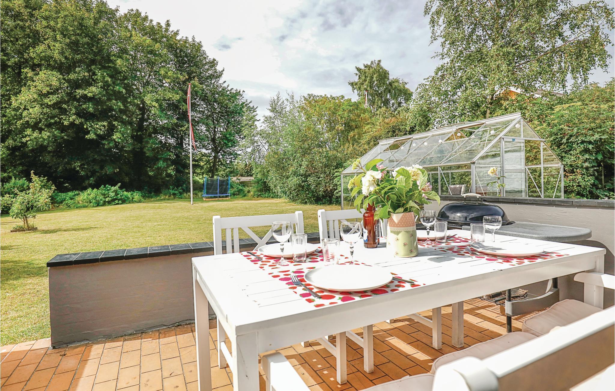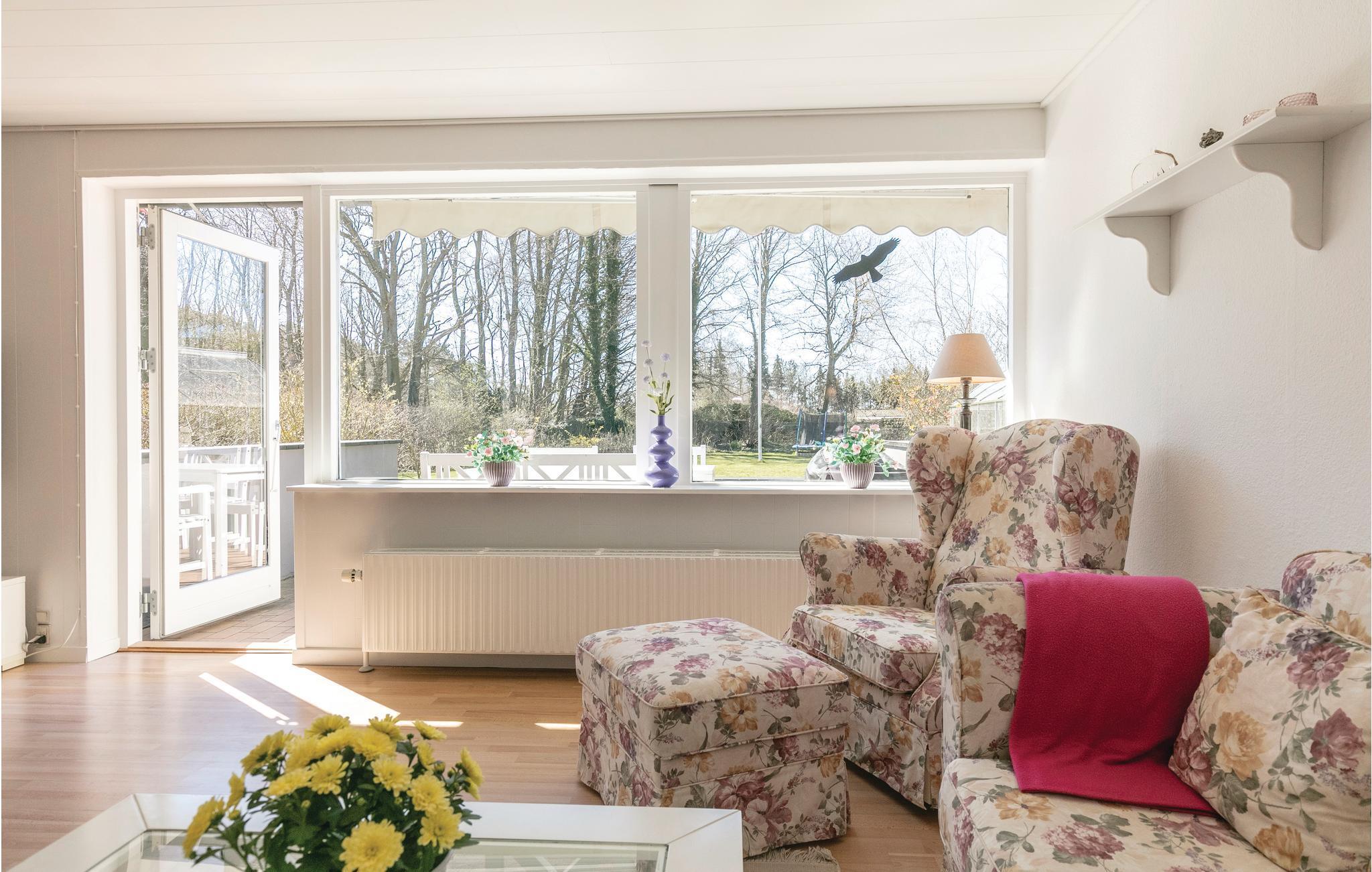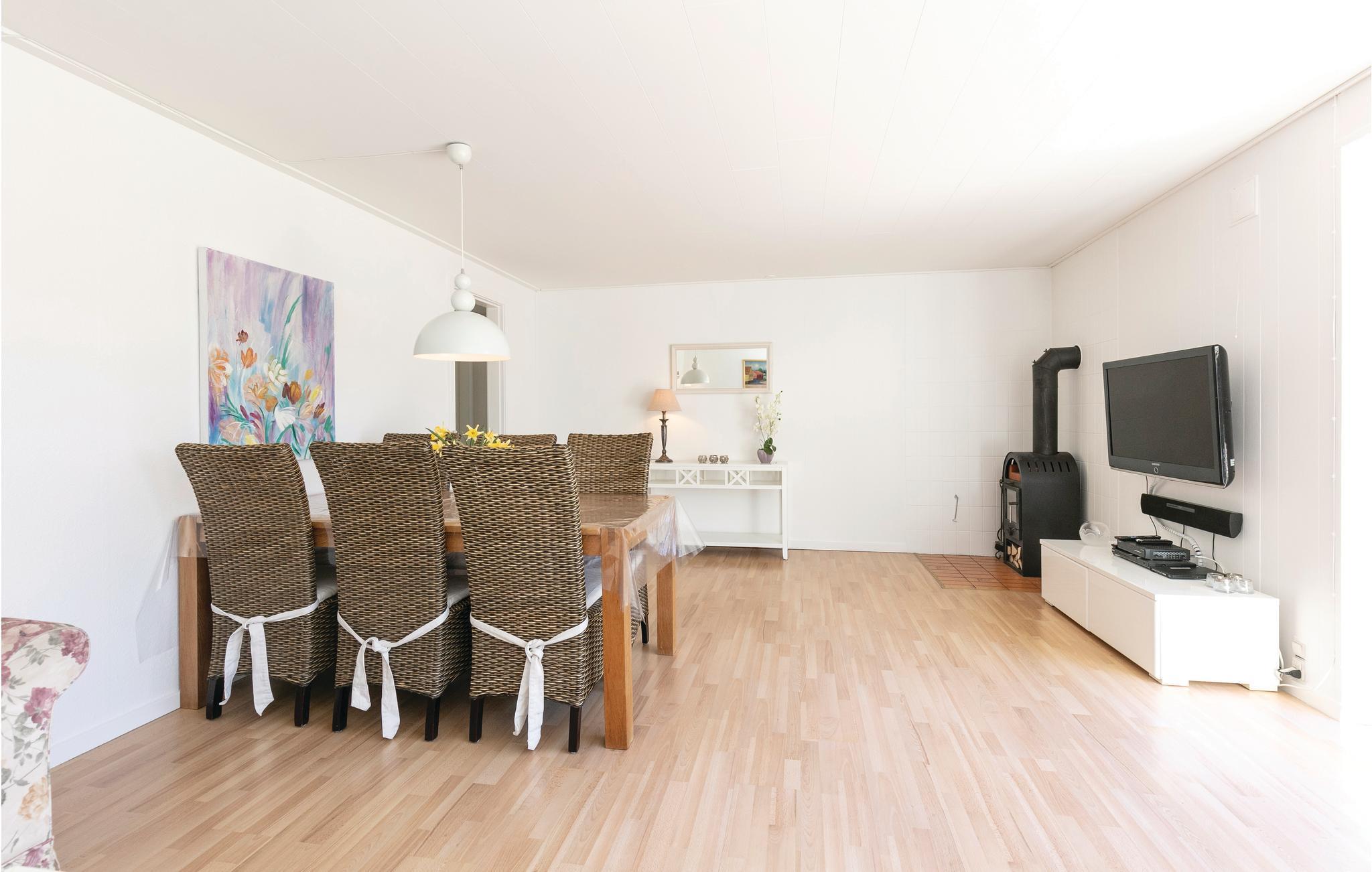 Gemütliches Ferienhaus in guter Lage, dicht am pulsierenden Leben der Fischersiedlung Snogebæk und doch friedlich gelegen, mit herrlich großem und kinderfreundlichem Garten, der an den Wald von Snogebæk angrenzt. Das Haus ist geräumig und verfügt über ein großes Wohnzimmer mit Kamin und einer breiten Fensterfront zum Terrassenbereich und dem großen Garten. Darüber hinaus finden Sie hier ein großes Schlafzimmer mit Doppelbett (verstellbarer Lattenrost) und zugehörigem Babybett, sowie ein kleineres Zimmer mit 2 Einzelbetten. In diesem schönen Ferienhaus gibt es auch ein helles Badezimmer mit Dusche und Fußbodenheizung und eine neuere, gut ausgestattete Küche mit Geschirrspüler. Abstellraum mit Waschmaschine und großem Gefrierschrank. Im kinderfreundlichen und eingezäunten Garten steht ein kleines Trampolin, das Sie auf eigene Gewähr benutzen, außerdem gibt es einen großen Sandkasten und einen geräumigen Pavillon mit Solarzellenbeleuchtung. Auf dem gemütlichen Terrassenbereich gibt es mehrere Garnituren Gartenmöbel mit dazugehörigen Sitzkissen, einen Grill und eine Markise, alles, damit Sie Ihren Urlaub so richtig genießen können. Dieses Ferienhaus liegt in unmittelbarer Nähe zum Strand in Snogebæk, dem kinderfreundlichen Balka-Strand und nicht weit von Cafés, einer Eisdiele, dem Wirtshaus Sørens Værtshus, Einkaufsmöglichkeiten und Restaurants, darunter auch eine gemütliche Räucherei.