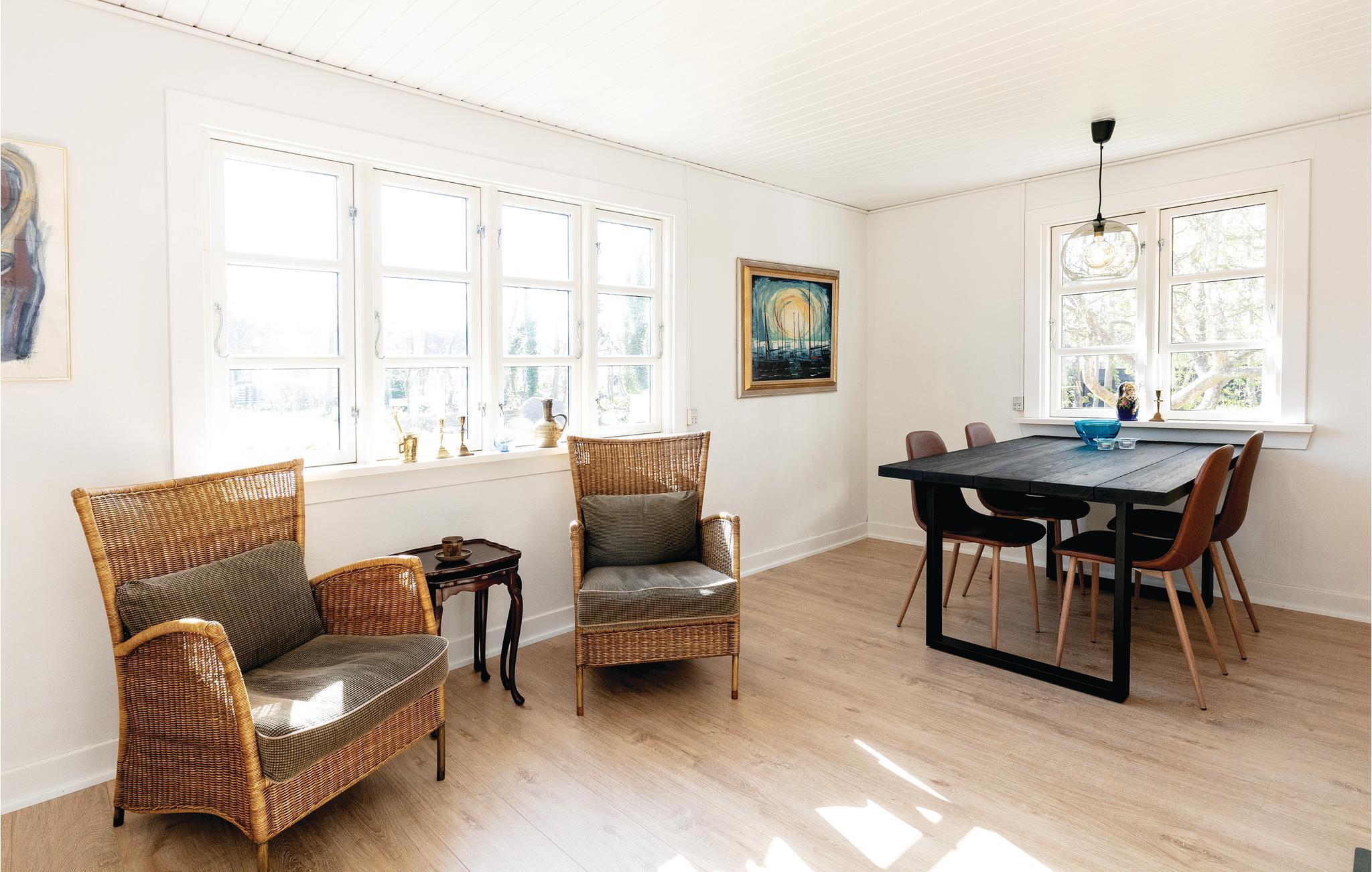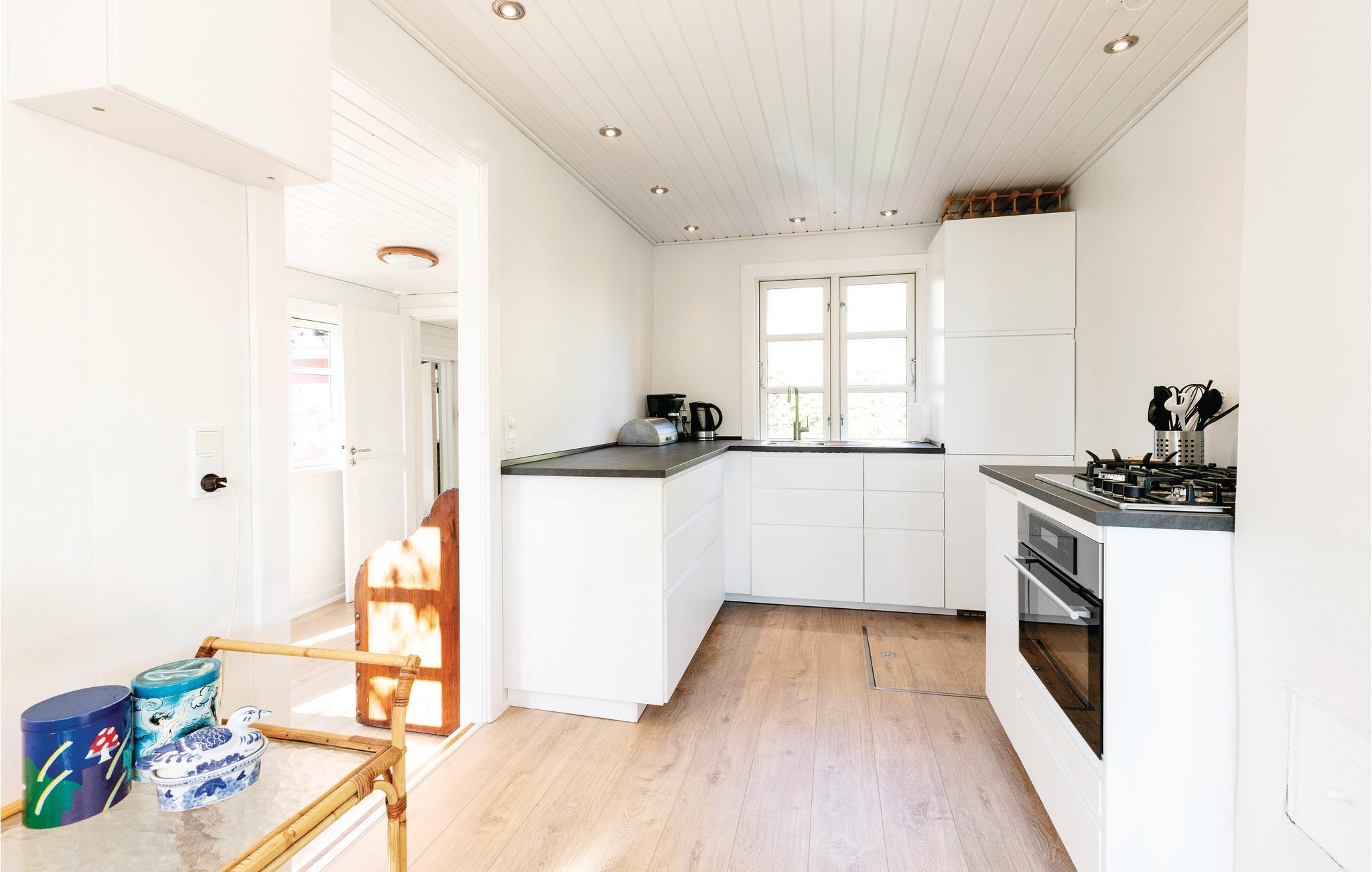 Ihr Ferienhaus in Snogebæk präsentiert sich hell und charmant, mit einer schönen offenen Küche, einem gepflegten Badezimmer und einem gut gestalteten Ess- und Wohnzimmer, in dem ein Kaminofen die Hauptwärmequelle des Hauses ist. Das gemütliche Haus verfügt über zwei Schlafzimmer, von denen das größere einen direkten Zugang zu einer kleinen Terrasse hinter dem Haus bietet. Vor dem Ferienhaus befindet sich eine gemütliche kleine Terrasse mit Fliesen und bequemen Gartenmöbeln.