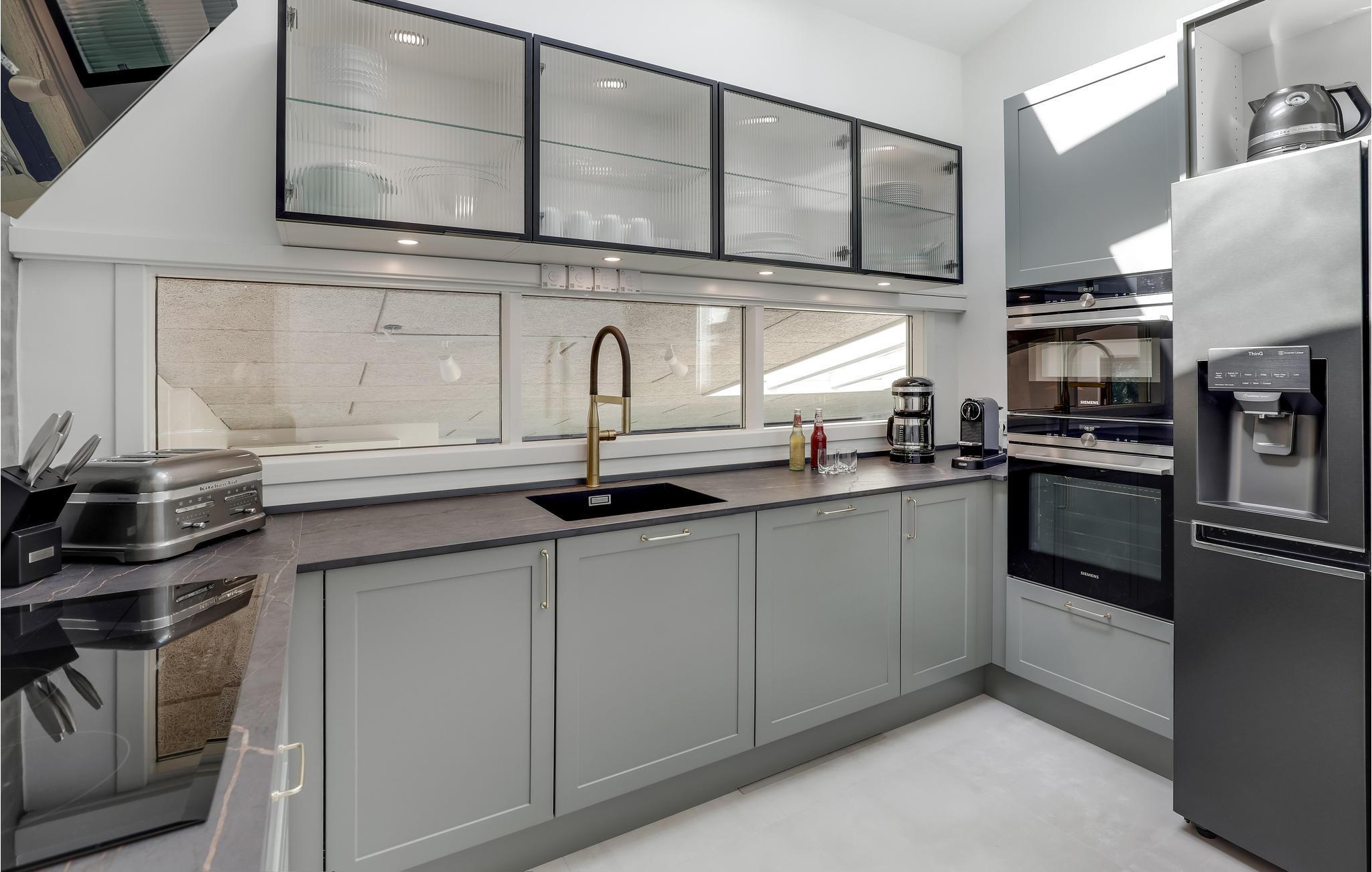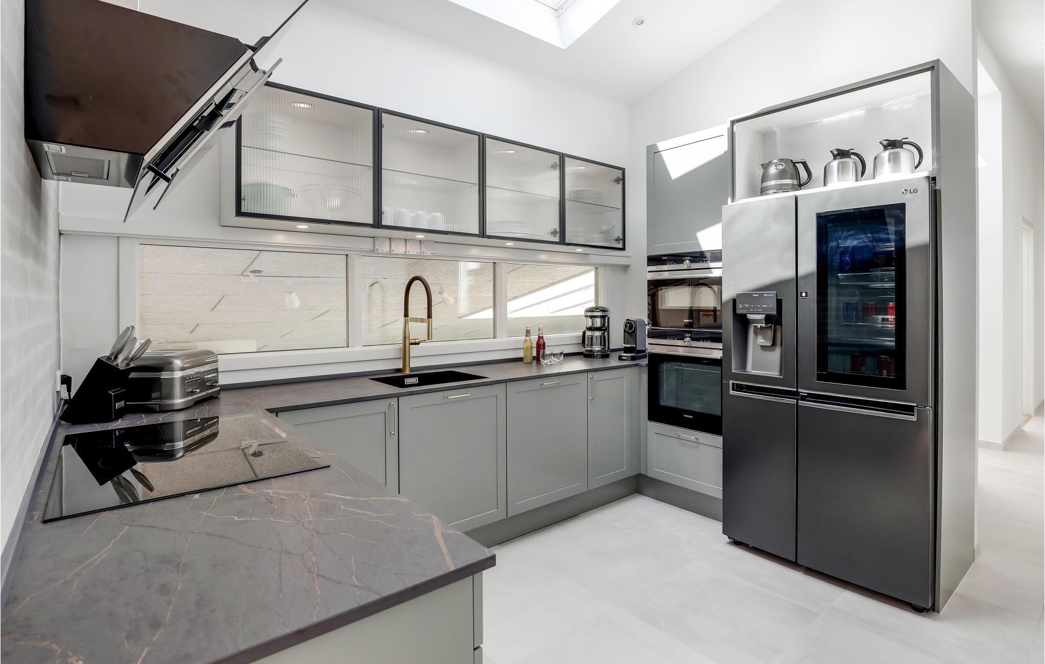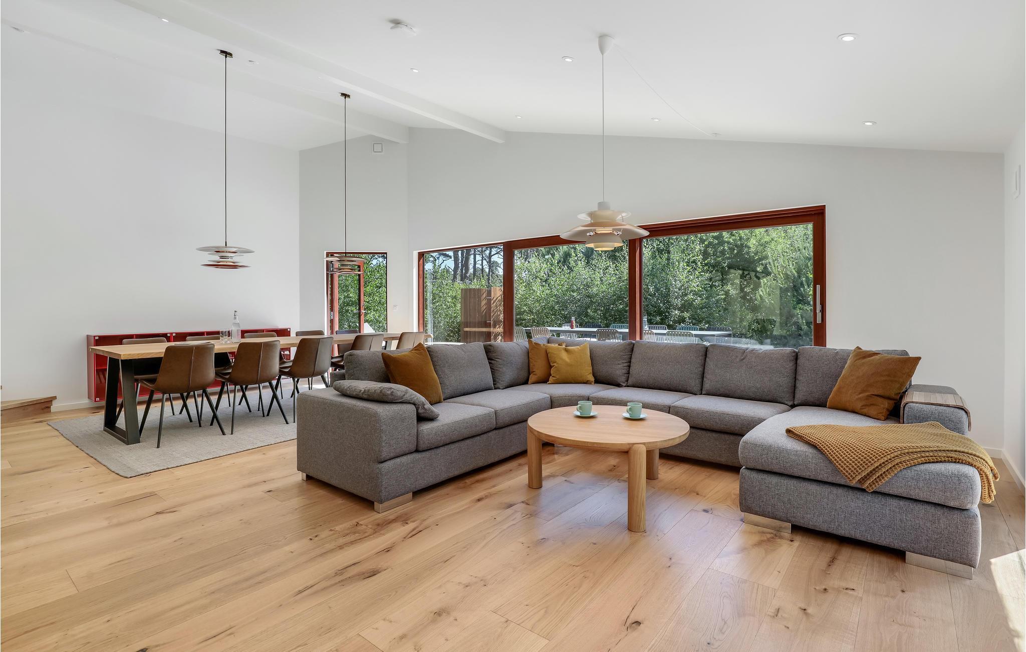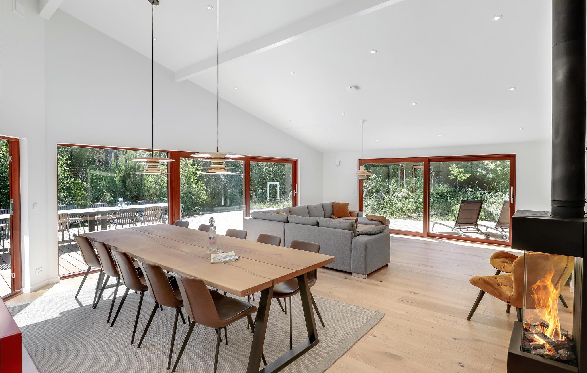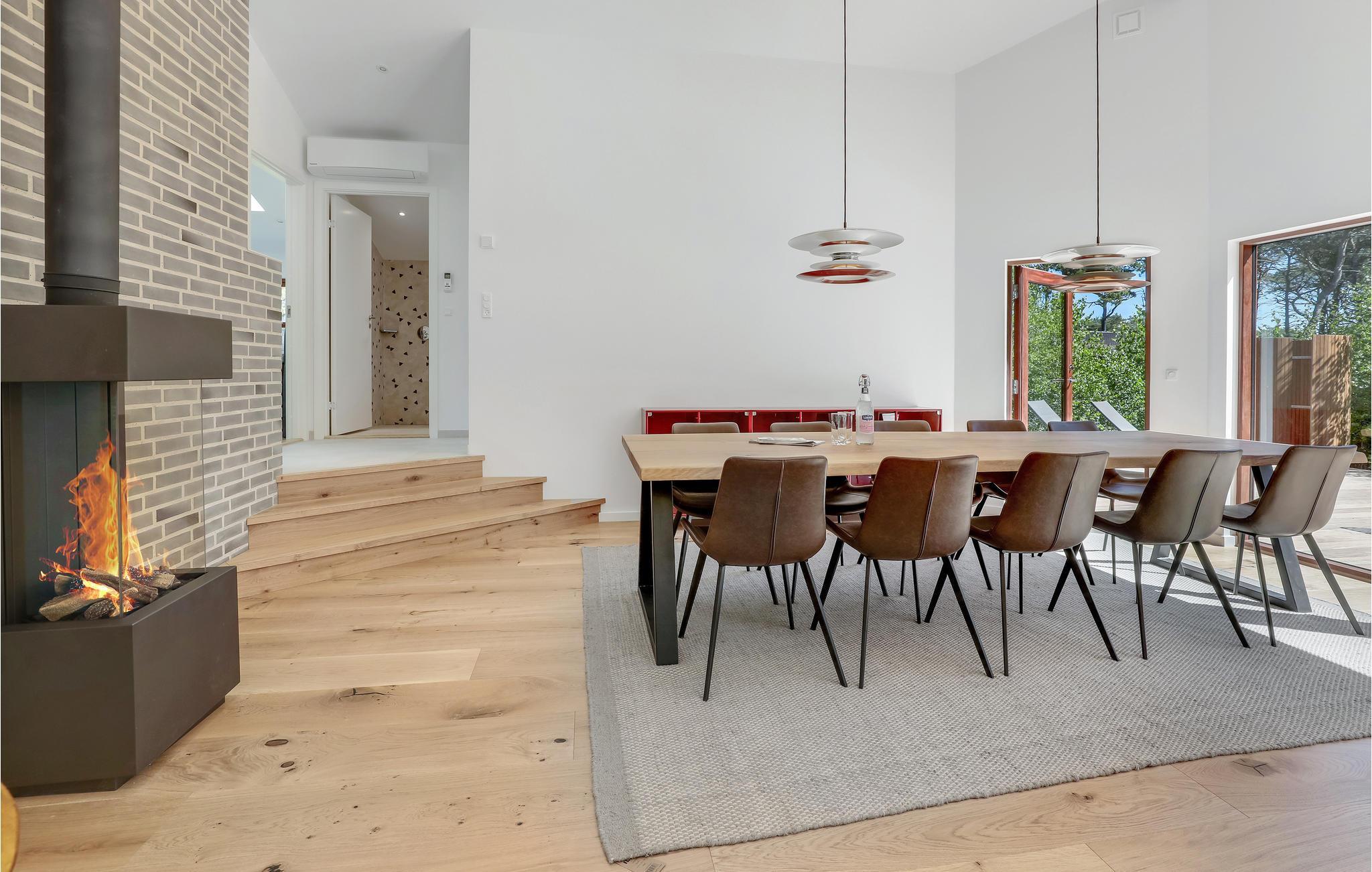 Das Ferienhaus verfügt über eine durchgehende Fußbodenheizung und ein Belüftungssystem, was für ein angenehmes Raumklima sorgt. Ob drinnen oder im Garten, hier erleben Sie traumhafte Urlaubstage. Im Wohnzimmer können Sie an kühleren Tagen den Elektrokamin anzünden oder mit dem Kochen beginnen, während die Kinder im Swimmingpool planschen, den Sie von der Küche aus im Blick haben. Es gibt fünf gemütliche Schlafzimmer, sodass das Haus viele Personen gut unterbringen kann.