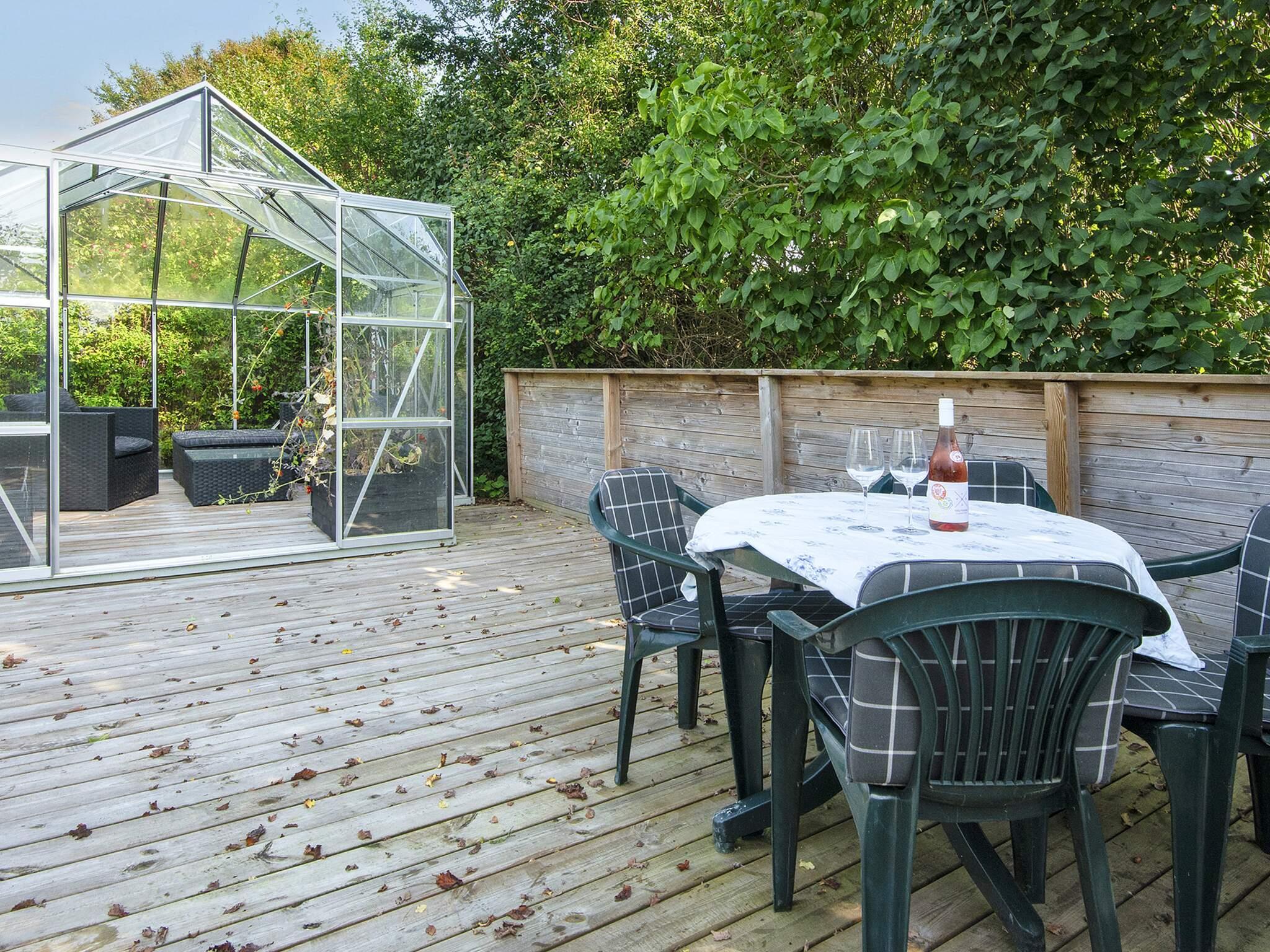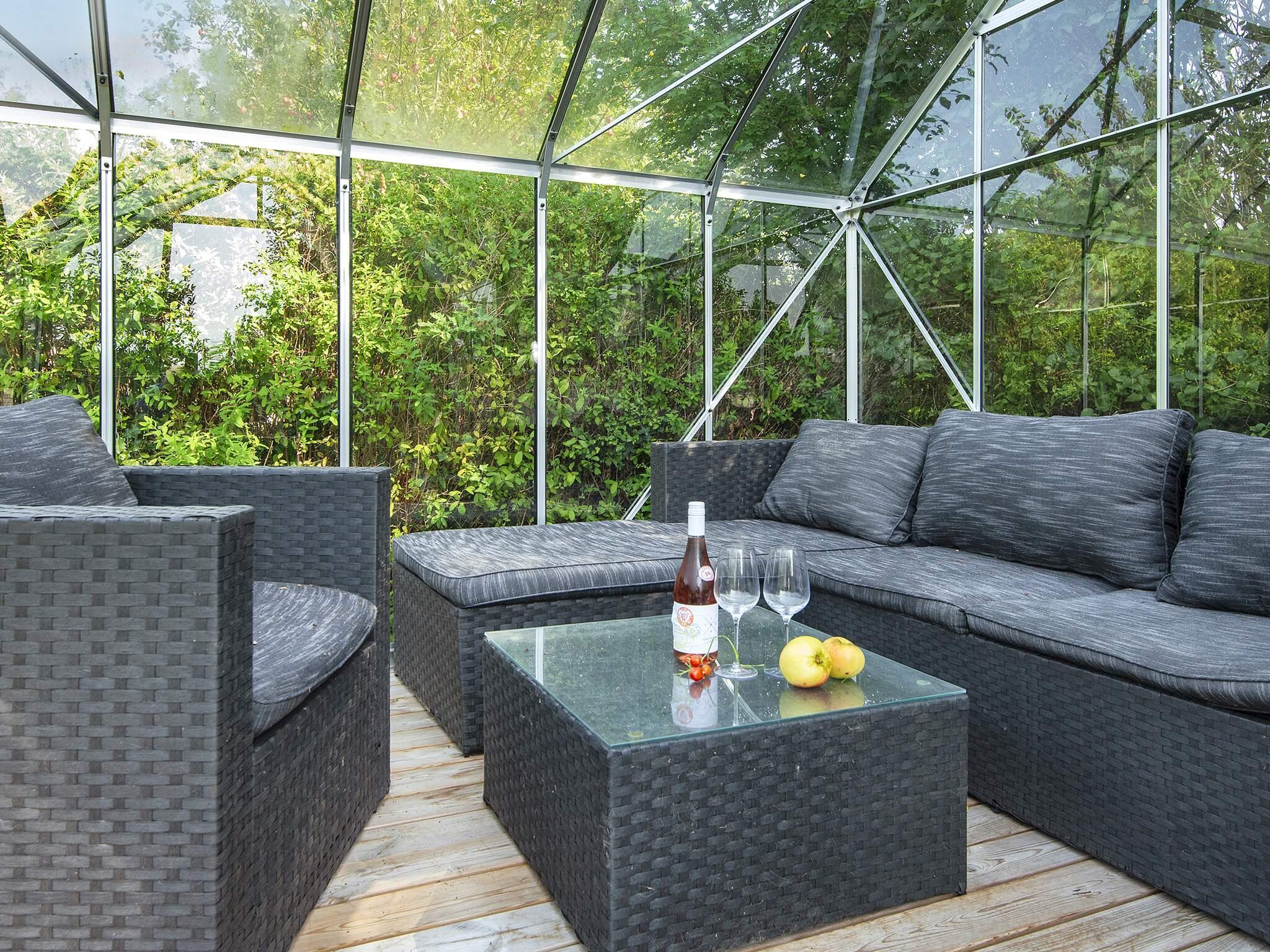 Das große Wohnzimmer bietet direkten Zugang zu einer schönen, überdachten Terrasse, auf der Sie Ihre Mahlzeiten bei jedem Wetter genießen können. Der Garten bietet mehrere gemütliche Ecken, die zum Entspannen und Lesen einladen. Außerdem gibt es eine charmante Orangerie, in der Sie die Abende auch bei Wind genießen können.