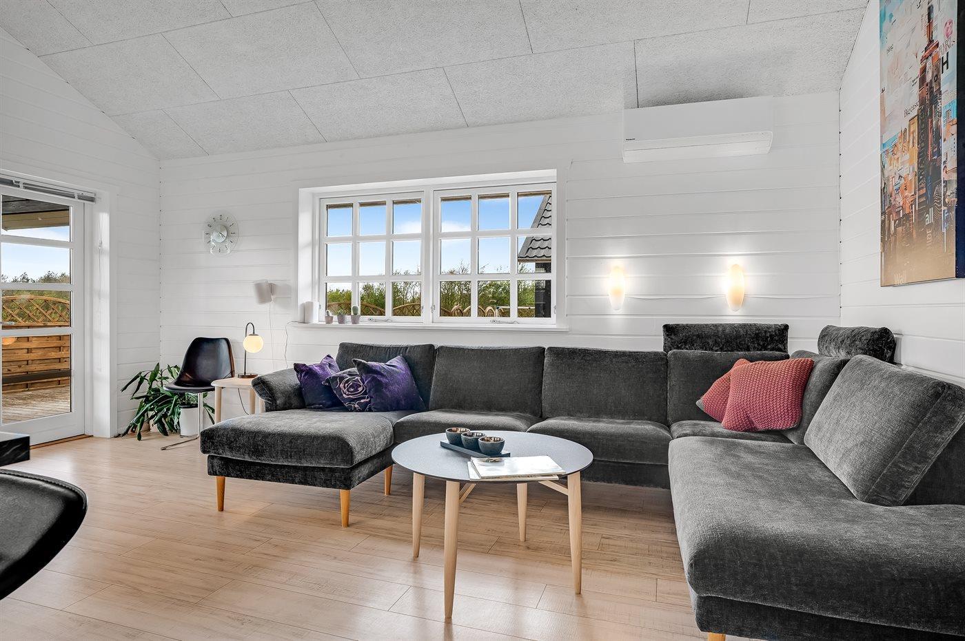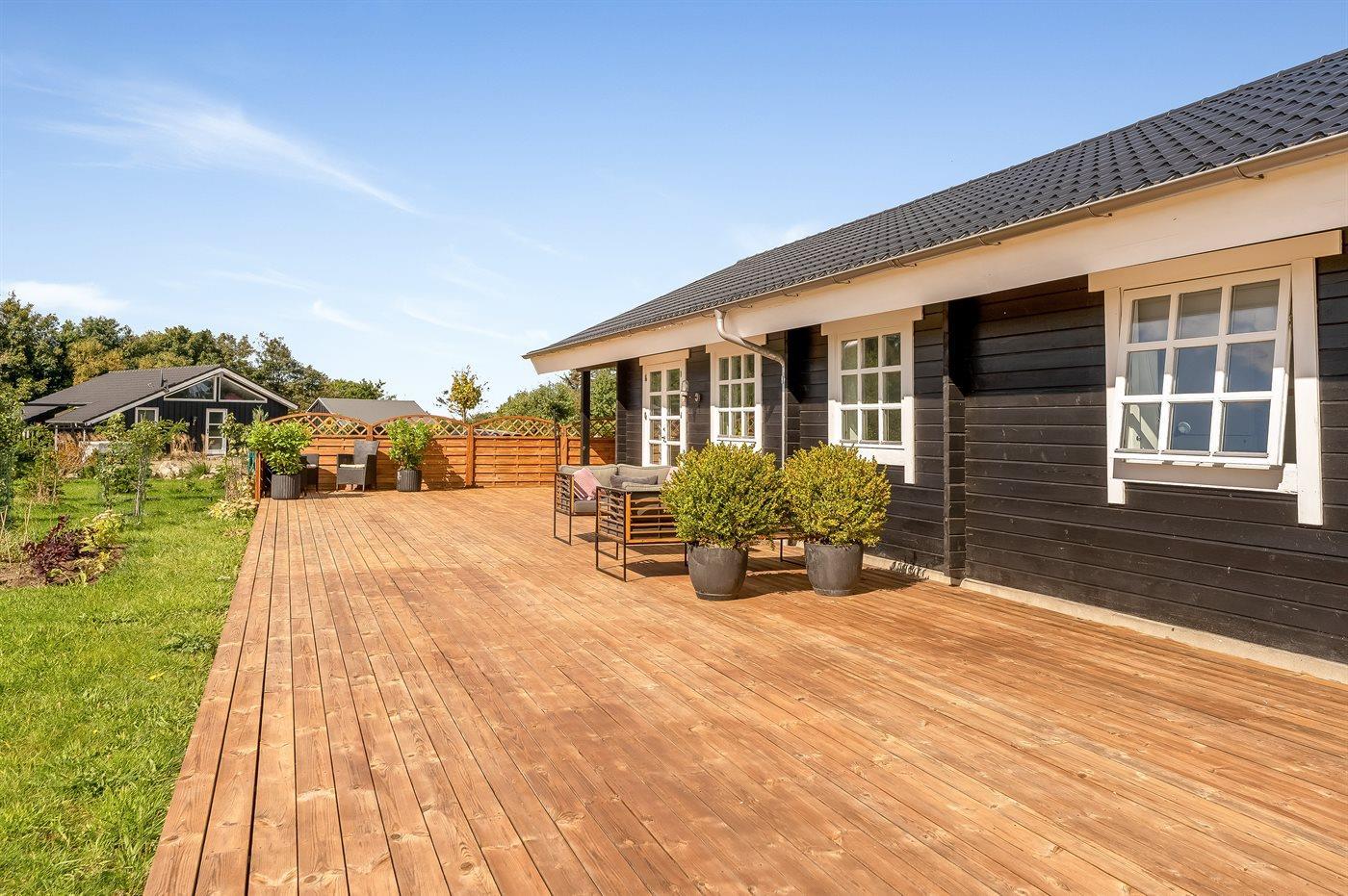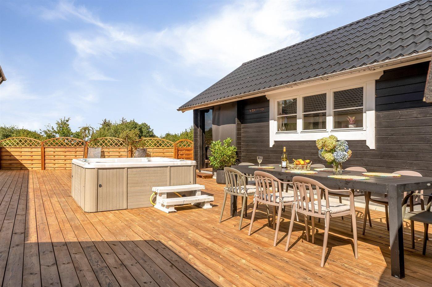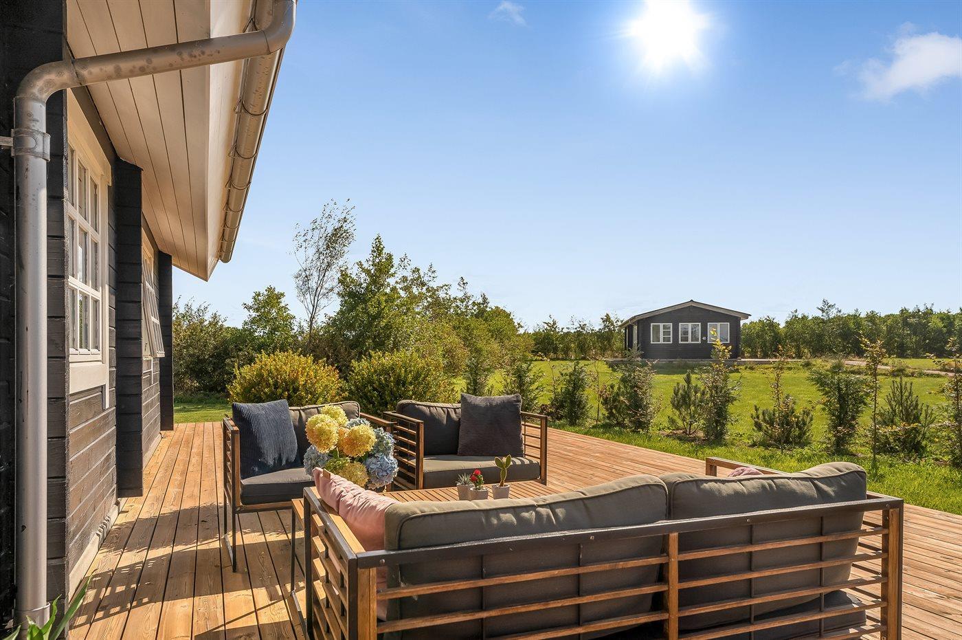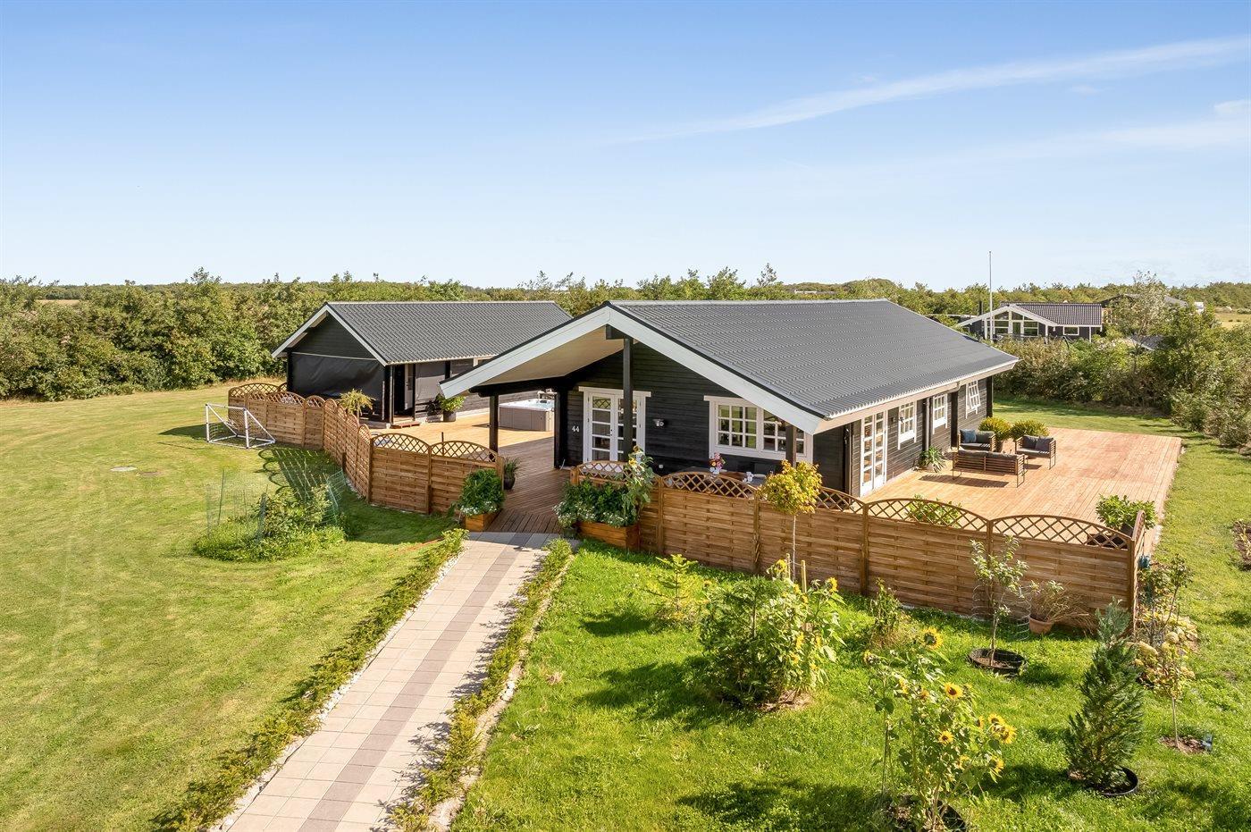 The holiday home is situated on a 2936 m² natural site. Situated 500 m from inlet. Nearest shop is 2000 m away. A terrace belong to the holiday home. Furthermore the house has a covered terrace. Football goal. Outdoor sauna. Parking place by the holiday home.
