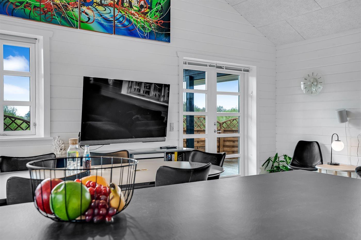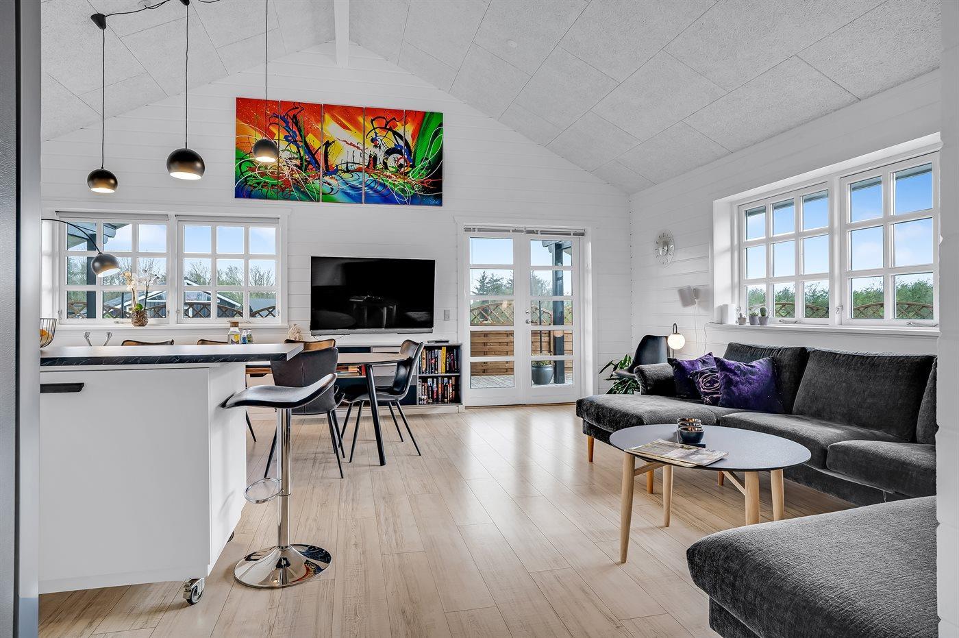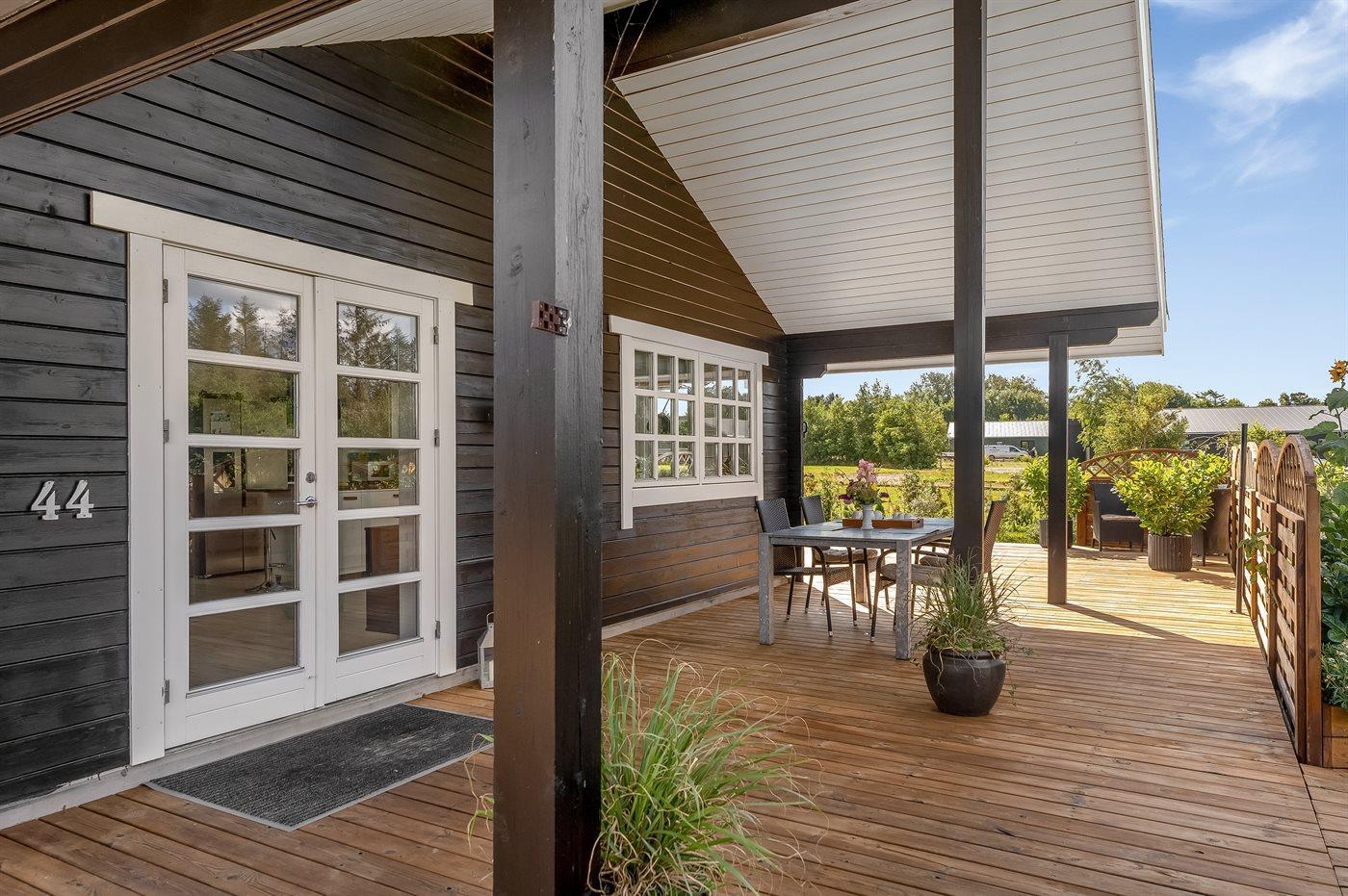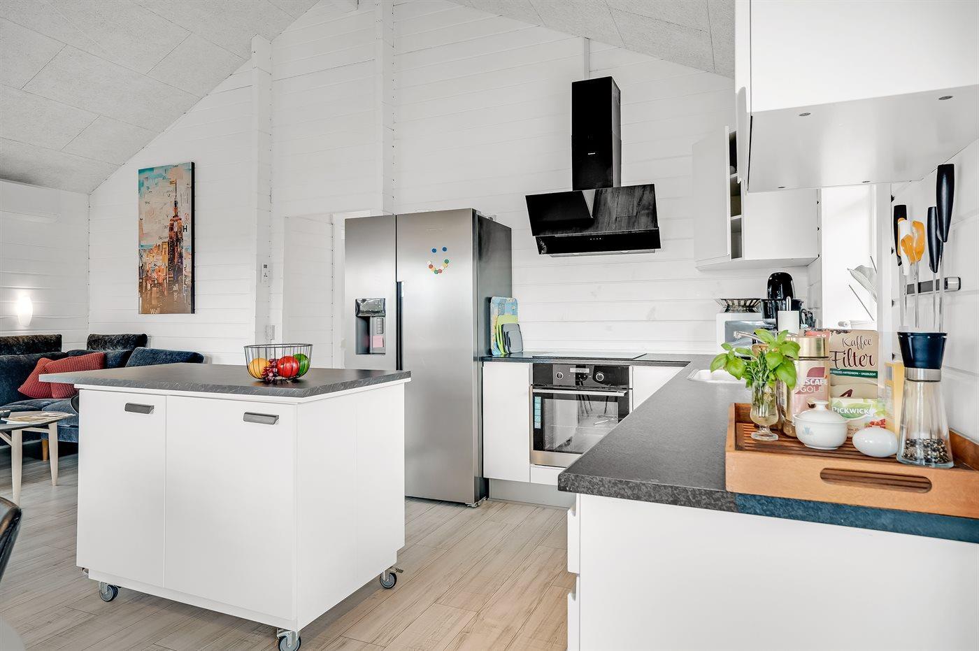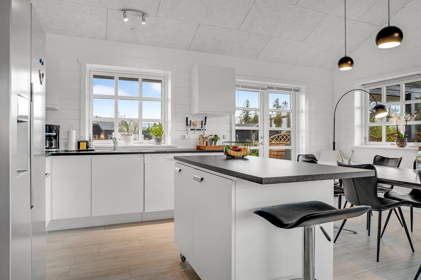 The holiday home is situated on a 2936 m² natural site. Situated 500 m from inlet. Nearest shop is 2000 m away. A terrace belong to the holiday home. Furthermore the house has a covered terrace. Football goal. Outdoor sauna. Parking place by the holiday home.