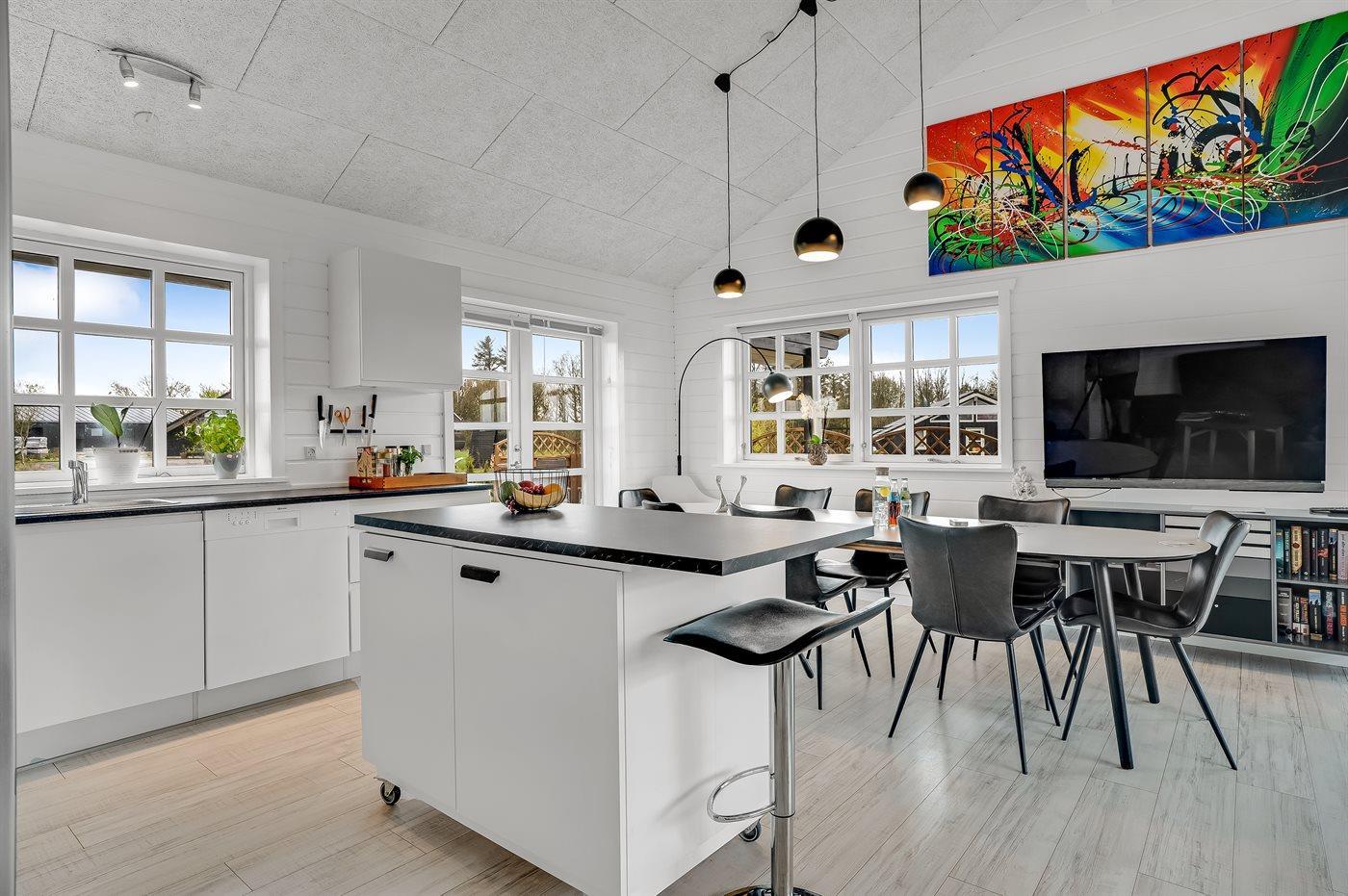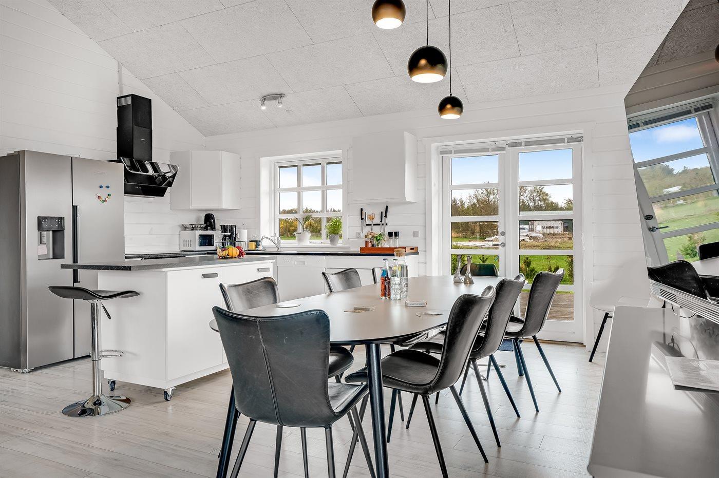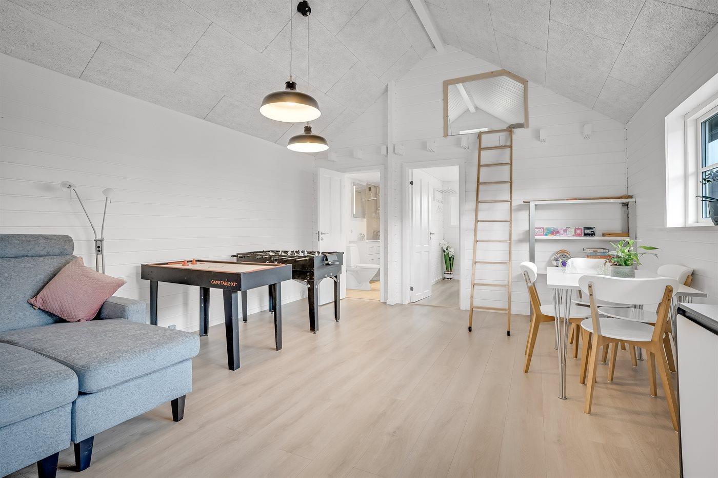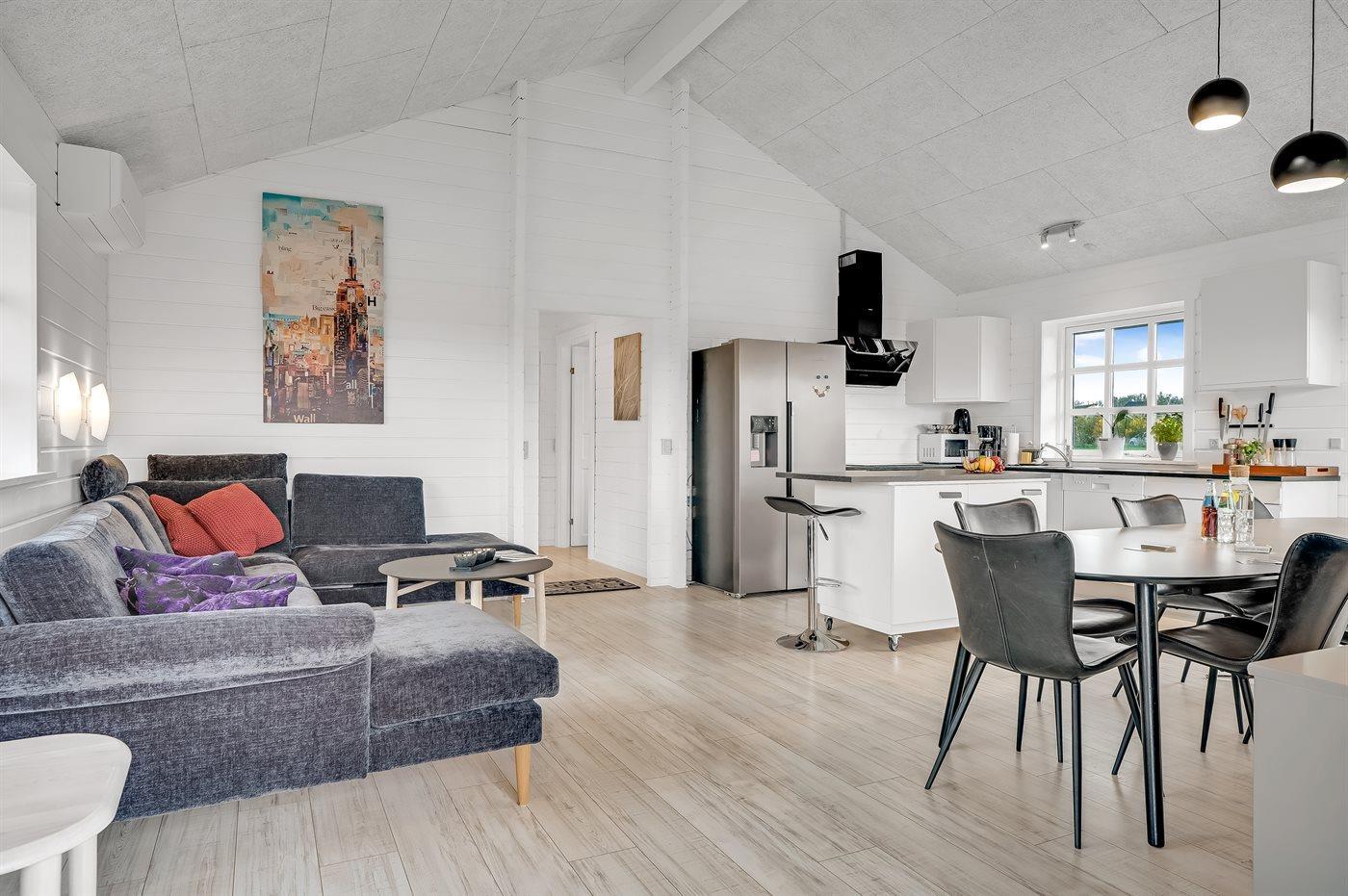 The holiday home is situated on a 2936 m² natural site. Situated 500 m from inlet. Nearest shop is 2000 m away. A terrace belong to the holiday home. Furthermore the house has a covered terrace. Football goal. Outdoor sauna. Parking place by the holiday home.