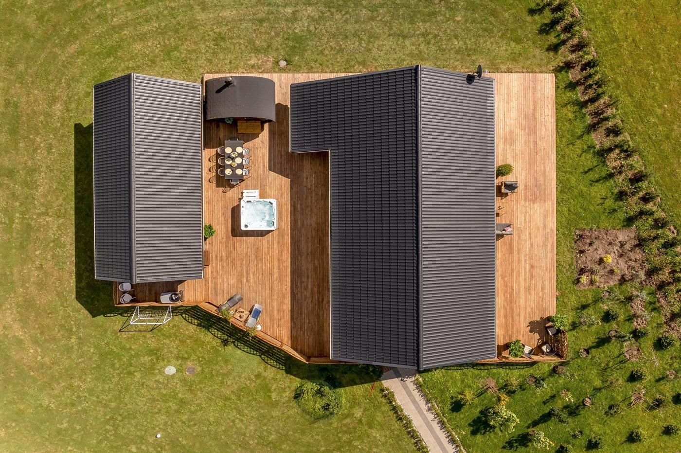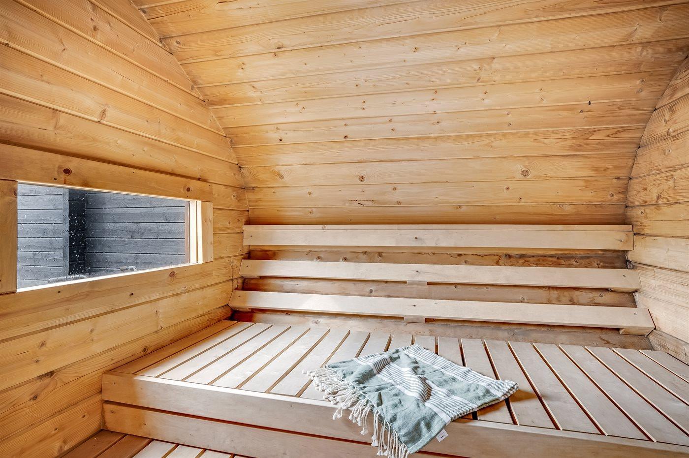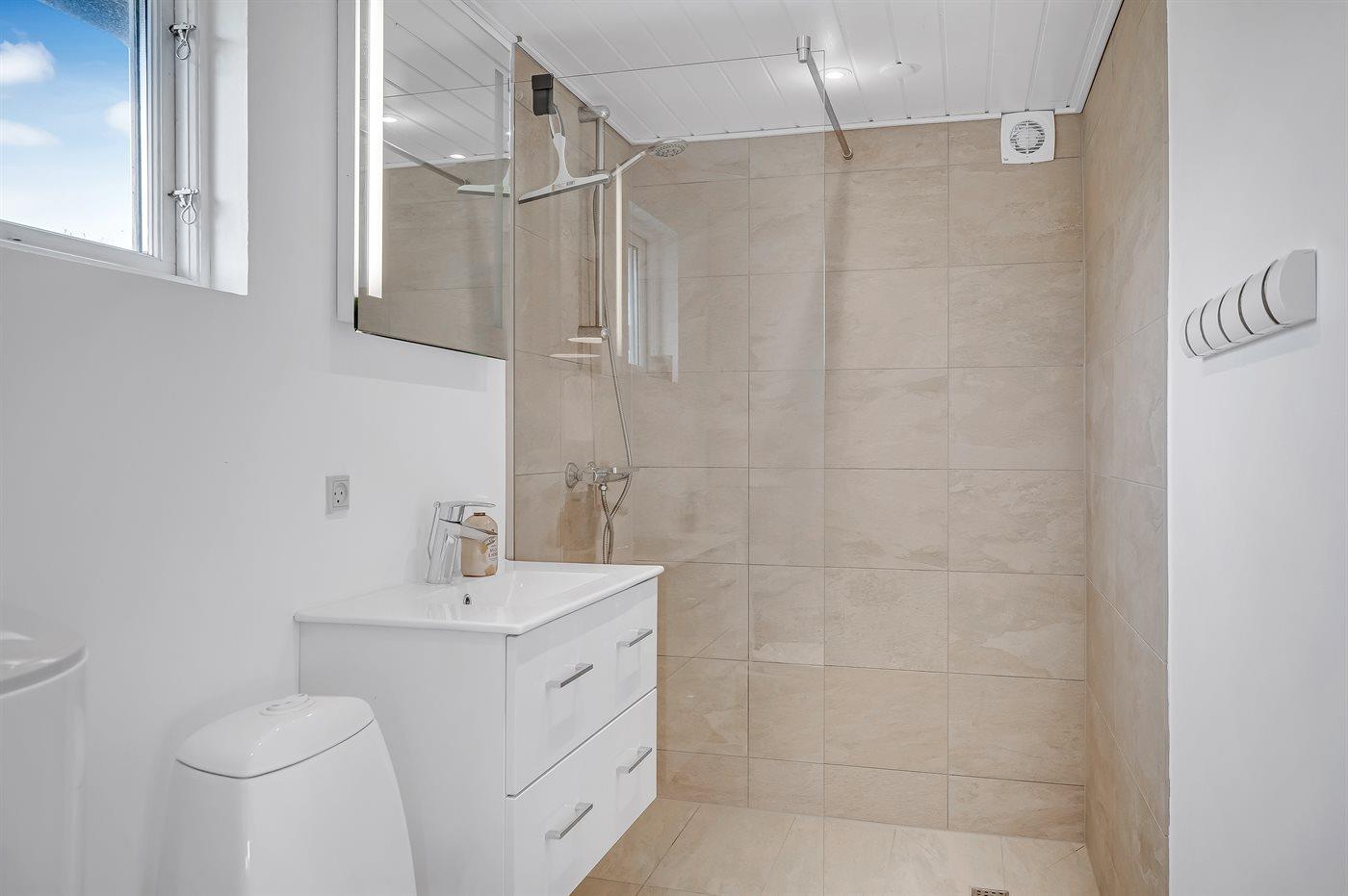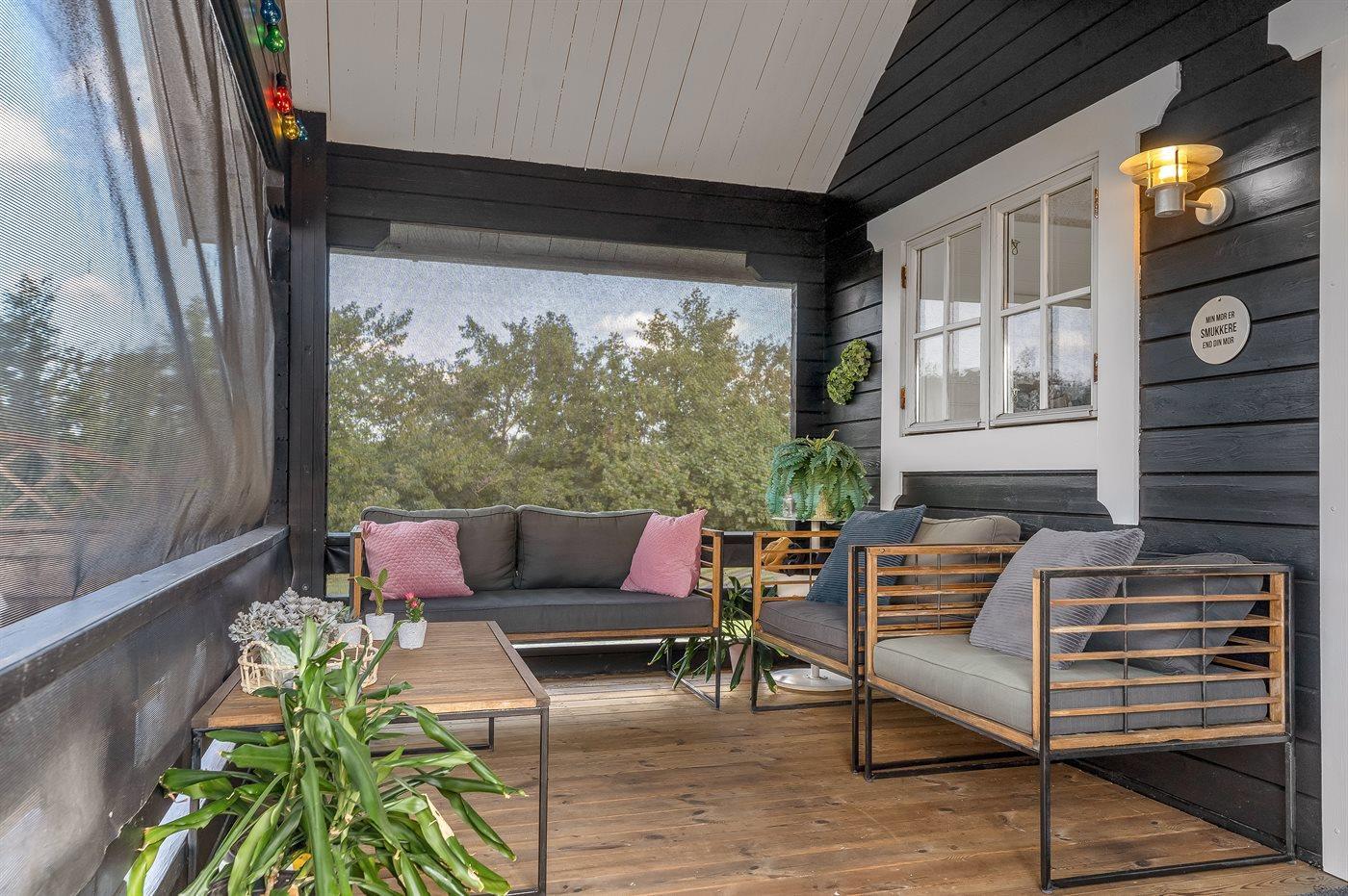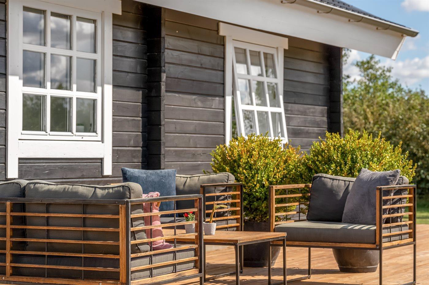 The holiday home is situated on a 2936 m² natural site. Situated 500 m from inlet. Nearest shop is 2000 m away. A terrace belong to the holiday home. Furthermore the house has a covered terrace. Football goal. Outdoor sauna. Parking place by the holiday home.