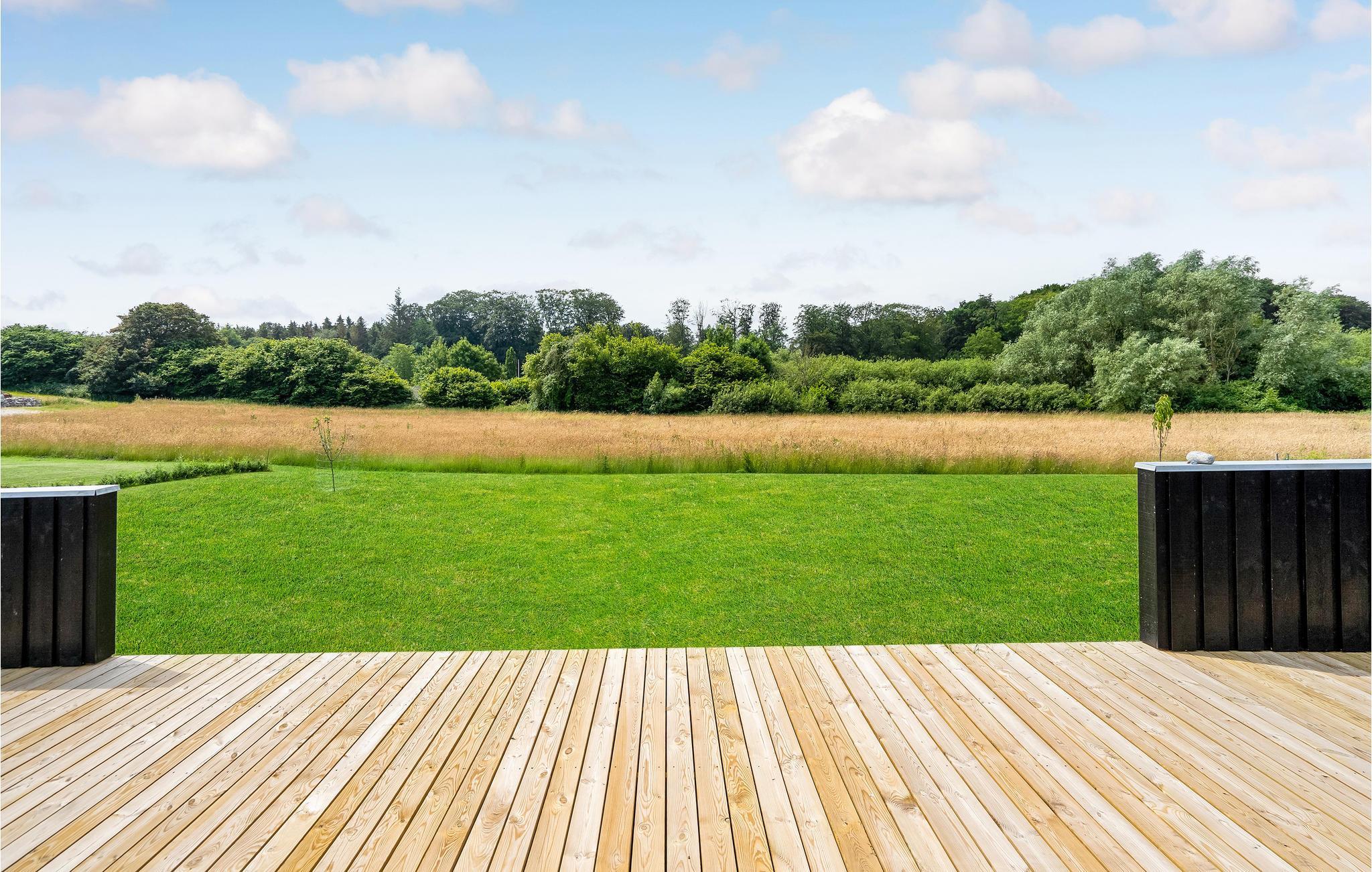 Das Qualitätshaus aus Holz liegt im Freizeithausgebiet von Spodsbjerg.