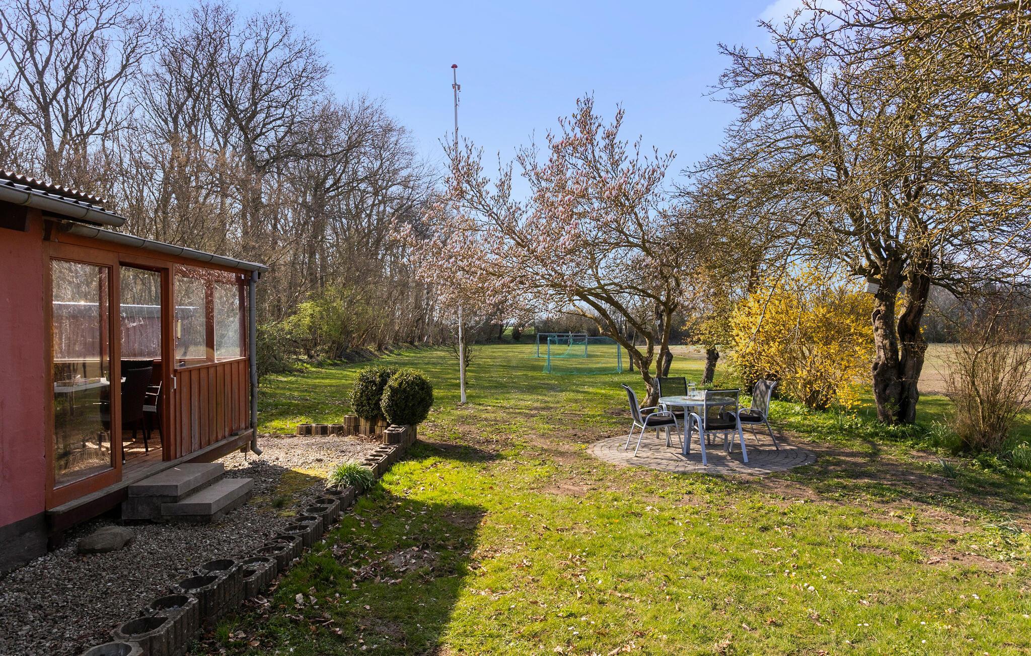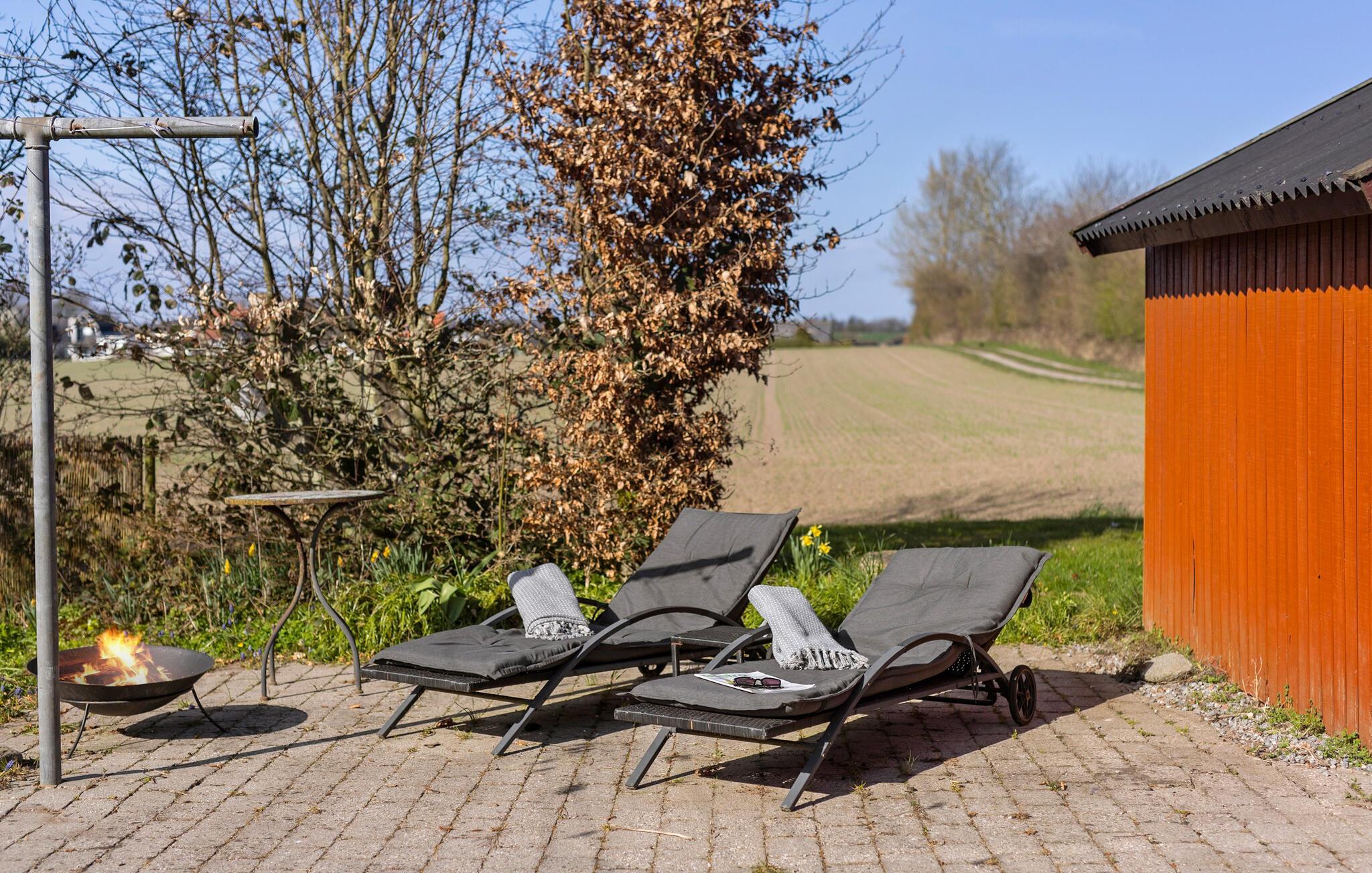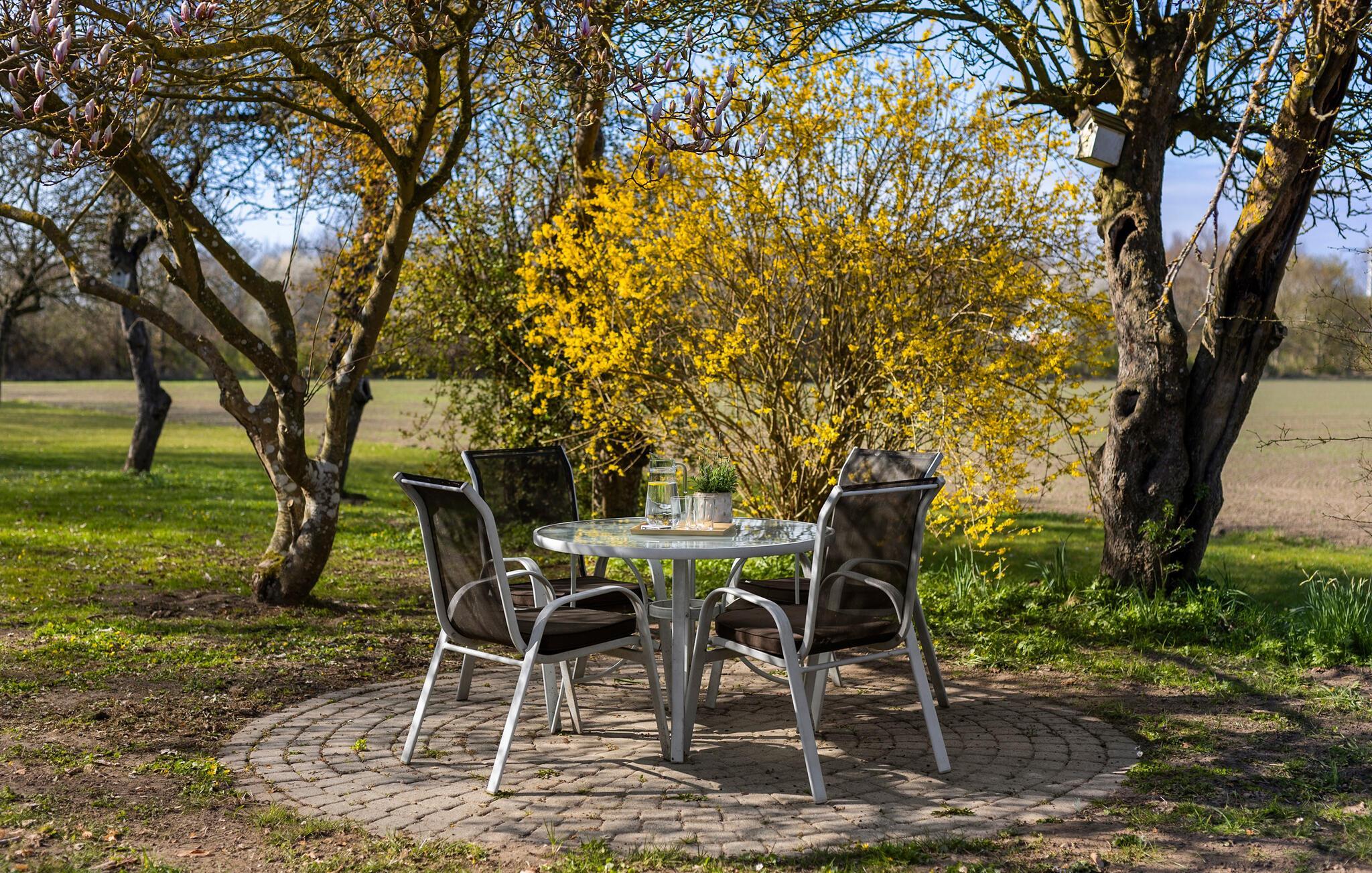 Nutzen Sie die verschiedenen Sitzplätze im Garten und auf der Terrasse, ob in der Sonne, im Schatten der Bäume oder geschützt unter dem Dach. Entspannen Sie auf den Liegestühlen, während sich die Landschaft ringsum in ihrer natürlichen Schönheit zeigt. Für stimmungsvolle Abende steht eine kleine Feuerschale bereit.