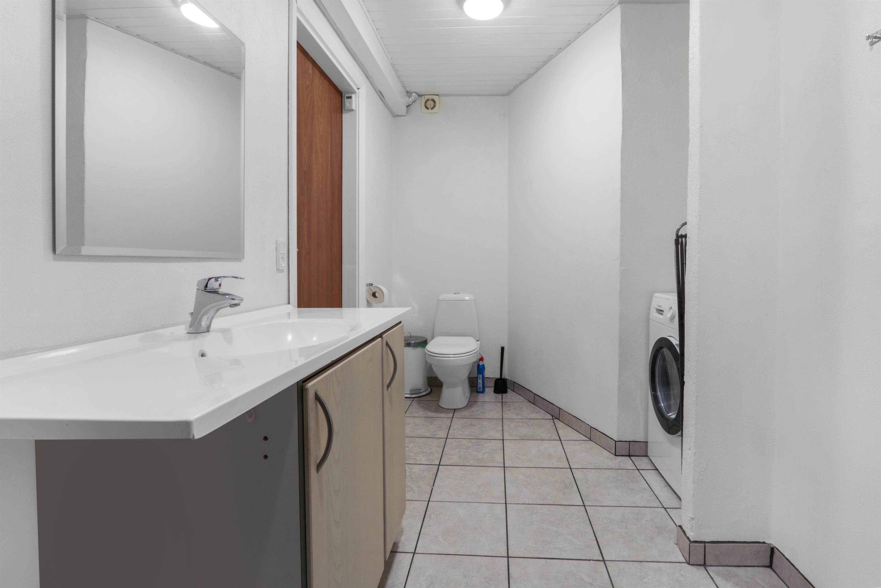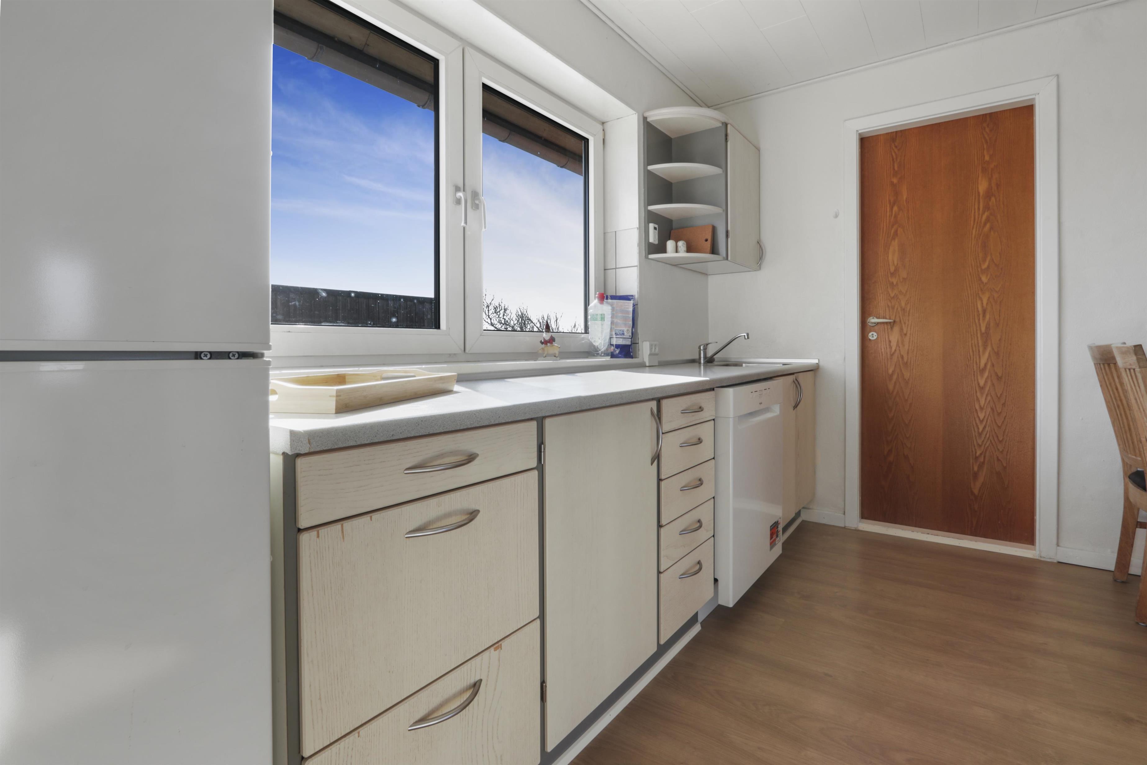 Die Wohnung ist schlicht und praktisch eingerichtet. Küche mit Essbereich, Glaskeramik-Kochfeld, Dunstabzugshaube, Geschirrspüler und Kühlschrank mit Gefrierfach. Von der Küche aus gibt es Zugang zu einem großen Schlafzimmer (1 Doppelbett). Wohnzimmer mit TV (deutsche und dänische Sender) und Schlafsofa (für 2 Personen). Renoviertes Badezimmer mit WC, Waschbecken, Dusche, Waschmaschine und Fliessenboden. Die gesamte Wohnung wird durch eine neue und nachhaltige Luft-Wasser-Wärmepumpe beheizt.