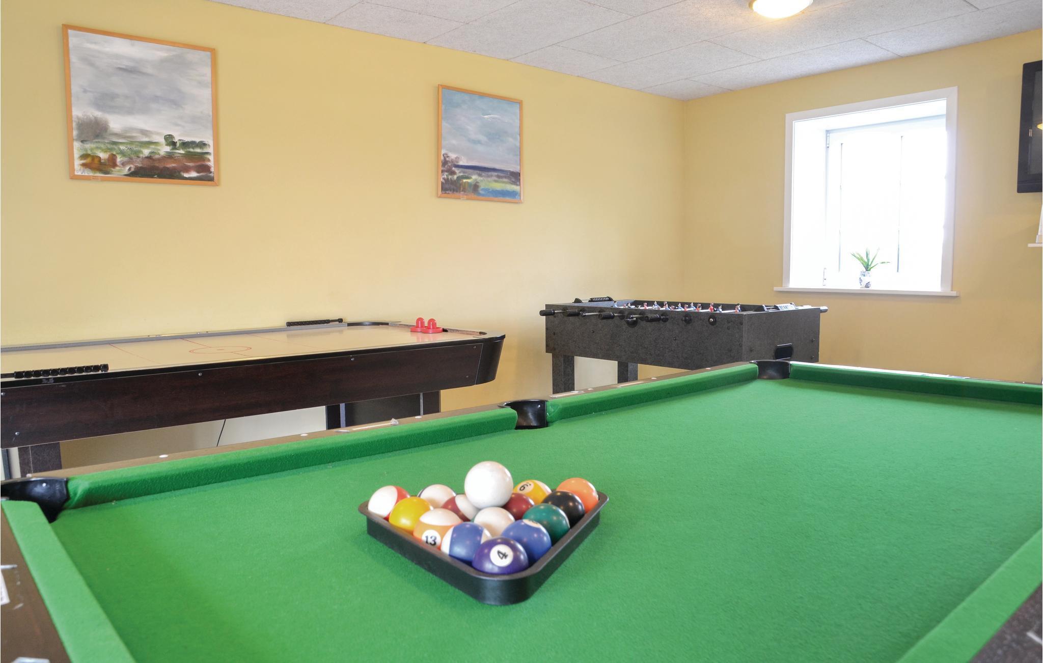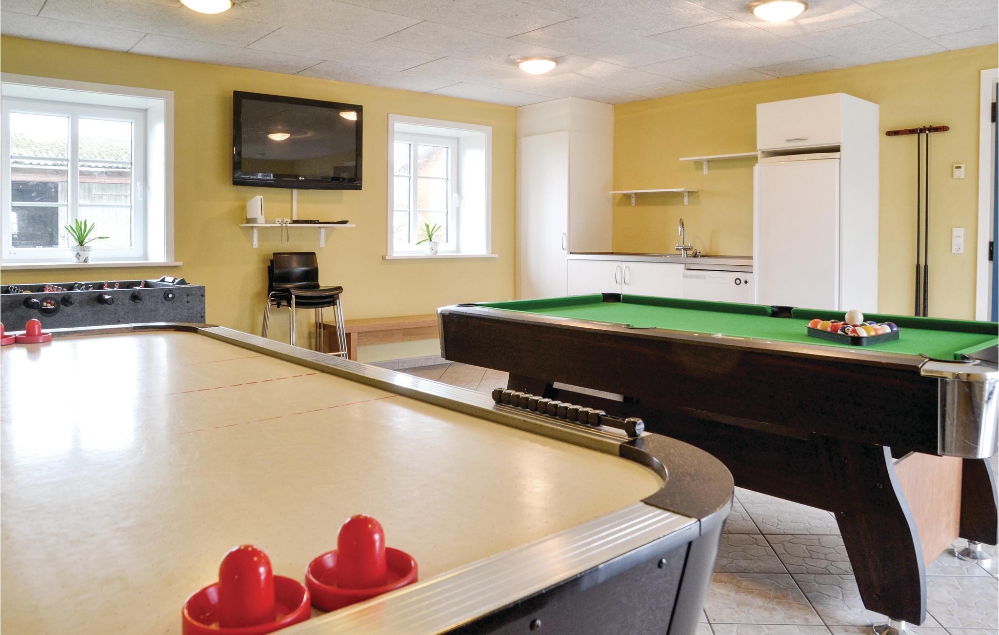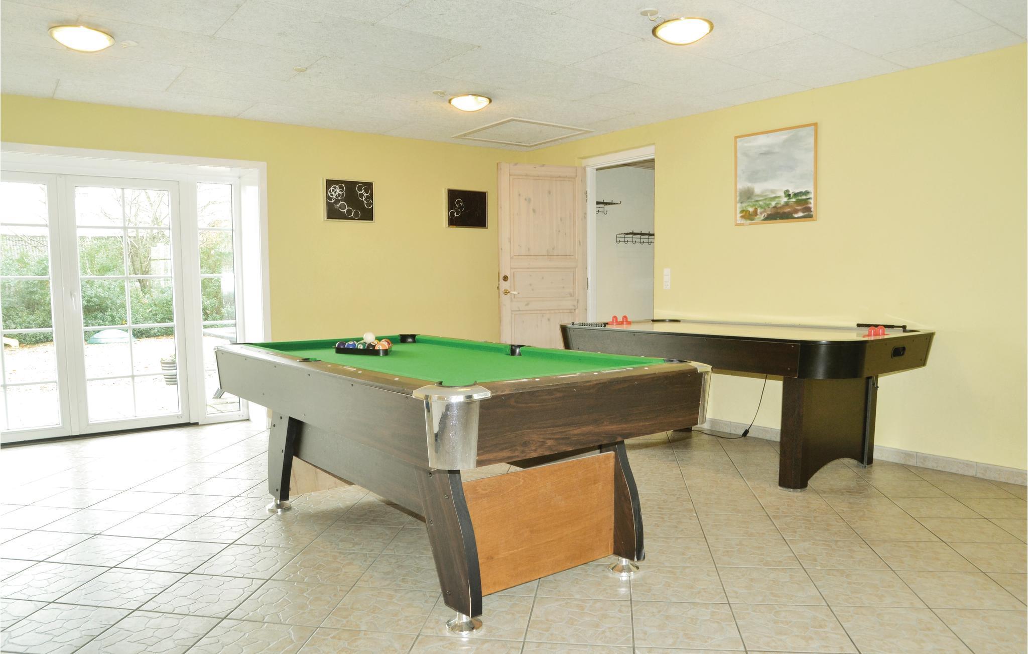 Haus für Aktivurlauber, auf dem Lande gelegen und trotzdem in der Nähe der Städte Esbjerg und Ribe. Die große Halle mit Kunstrasen ist u. a. für Badminton, Volleyball und Basketball ausgelegt. Ein phantastisches Erlebnis wird auch das Relaxen im Whirlpool und der Sauna im Freien sein. Das Haus ist schön eingerichtet und mit vielen Details eines lokalen Künstlers versehen. Auf dem Anwesen gibt es auch Pferde, Ziegen und Schweine in Freilandhaltung, die Ihnen der Eigentümer gerne präsentiert. Die Energiequelle für die Heizung ist kostengünstige Erdwärme. Das Haus liegt sehr schön, den Wald sowie die Feuchtgebiete und die Wiese sind zu Fuß erreichbar. Hier gibt es viel Wild und Vögel. Die Eigentümer sprechen englisch und deutsch und wohnen im Nachbarhaus. Sie beraten Sie gerne bei Ausflügen in die Umgebung. Es empfiehlt sich auch ein Ausflug in den Dom von Ribe, dem ältesten Dänemarks. Die Kirchenglocken spielen um 8, um 12 und um 18 Uhr Kirchenlieder.