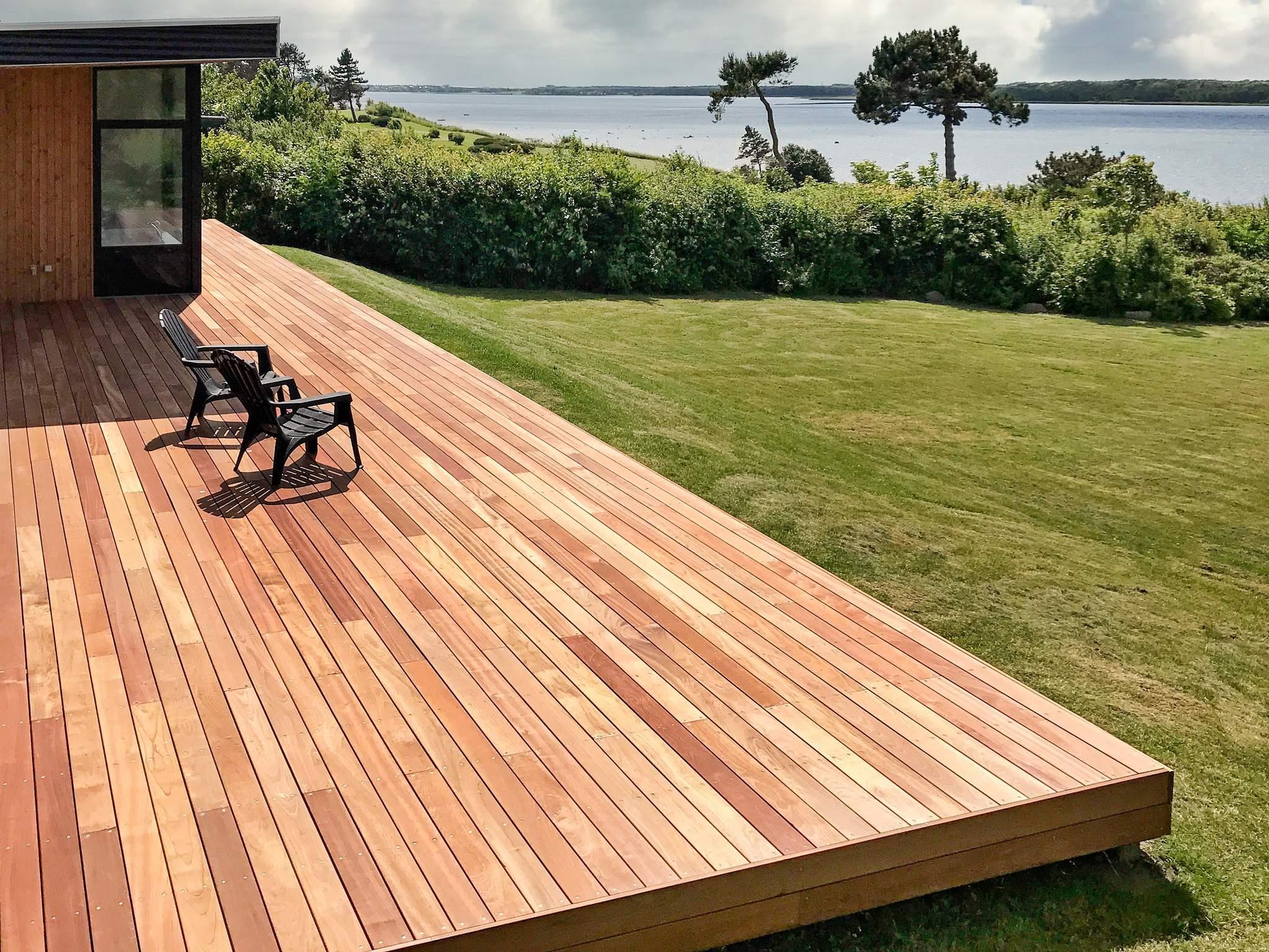 Die Terrasse auf der Wasserseite lädt zu gemütlichen Grillabenden am Holzkohlegrill ein.