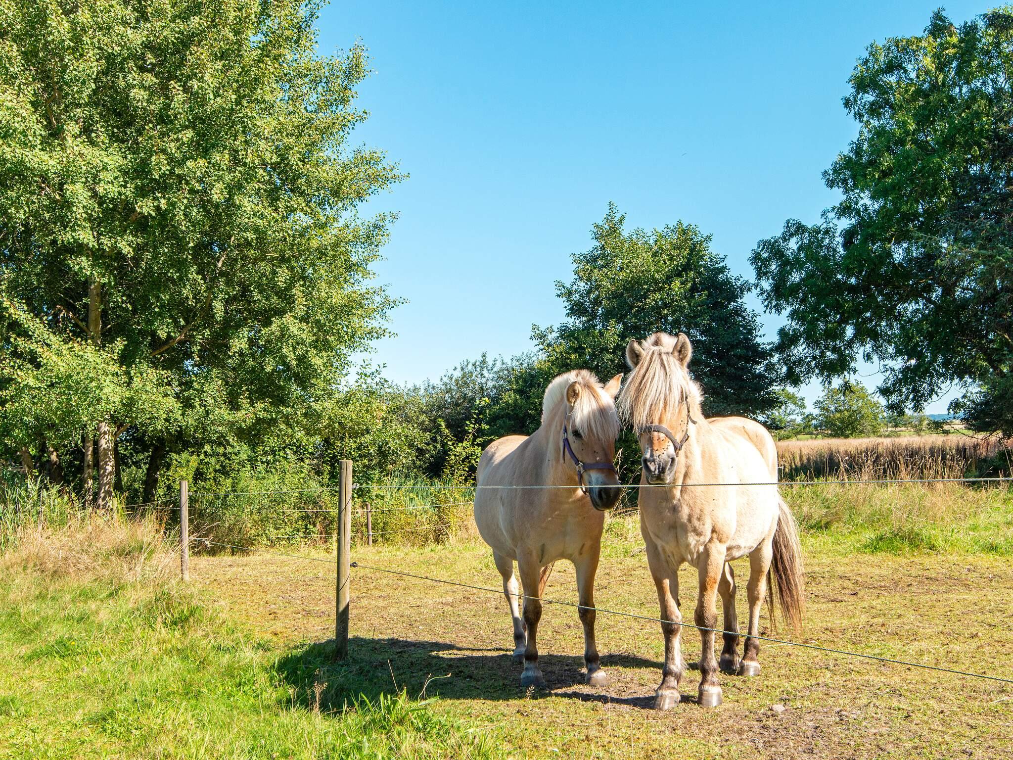 Im Außenbereich gibt es eine große Terrassenfläche mit Ausblick zu einem kleinen See und zur einzigartigen Naturlandschaft um St. Sjørup. Die attraktive Lage des Hauses ermöglicht ganz einfach einen Badeausflug mit der ganzen Familie. Außerdem lädt die Natur ringsum zu Spaziergängen und Radtouren ein.