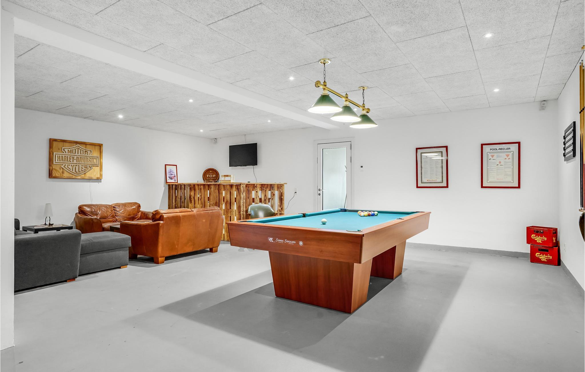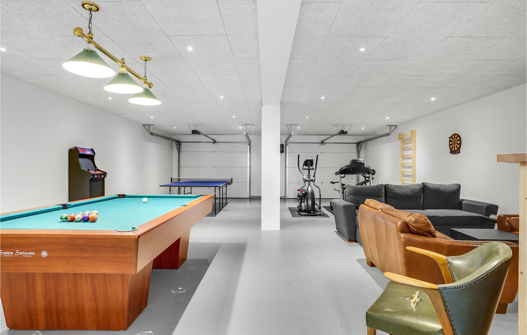 Das Haus ist hell und komfortabel eingerichtet und bietet den perfekten Rahmen für einen Aufenthalt, an den Sie sich gerne erinnern werden. Das ganze Haus ist mit einer Fußbodenheizung ausgestattet, so dass es das ganze Jahr über angenehm ist. Das Haus verfügt über 5 Zimmer mit Doppelbetten, und Zimmer Nr. 6, das sich im Untergeschoss befindet, hat 2 Doppelstockbetten und 2 zusätzliche Matratzen. Im Aktivitätsraum im Untergeschoss können Sie Billard, Darts und Tischtennis spielen, und für Ihre Kinder gibt es verschiedene Spielgeräte zur Unterhaltung. Außerdem gibt es eine attraktive Bar mit Fernseher, wo Sie sich amüsieren können. Im Souterrain finden Sie außerdem Fitnessgeräte und einen Spielautomaten, so dass für jeden etwas dabei ist.