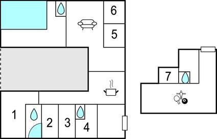 Schlafzimmer (nr. 7) - 2 Schlafmöglichkeiten. (Doppelbett(en)). 1 Schlafmöglichkeit. (Etagenbett). 2 Schlafmöglichkeiten. (Schlafsofa,Matratze,Sonstiges).