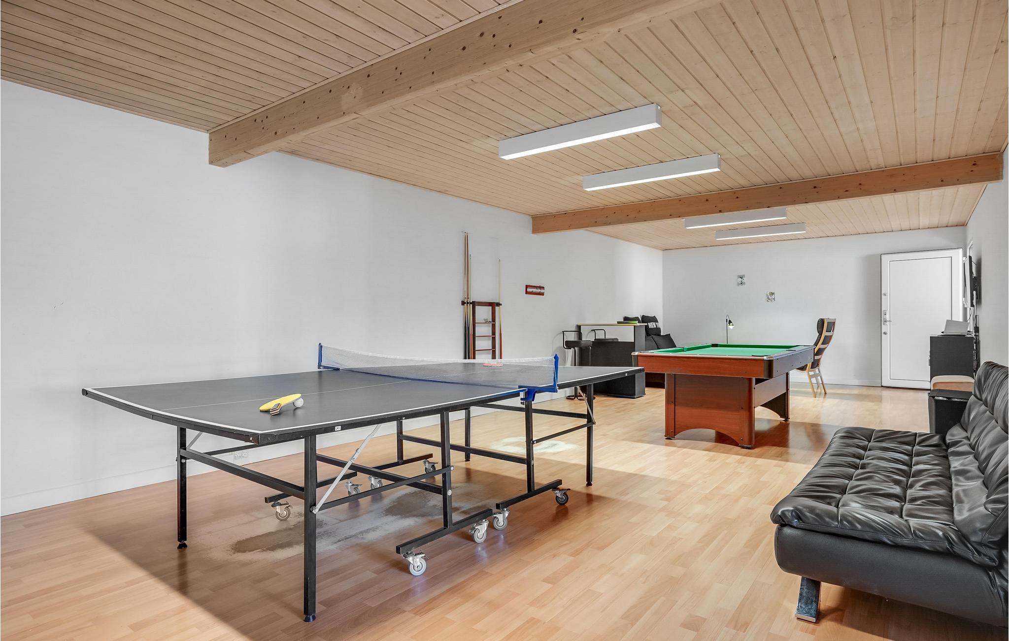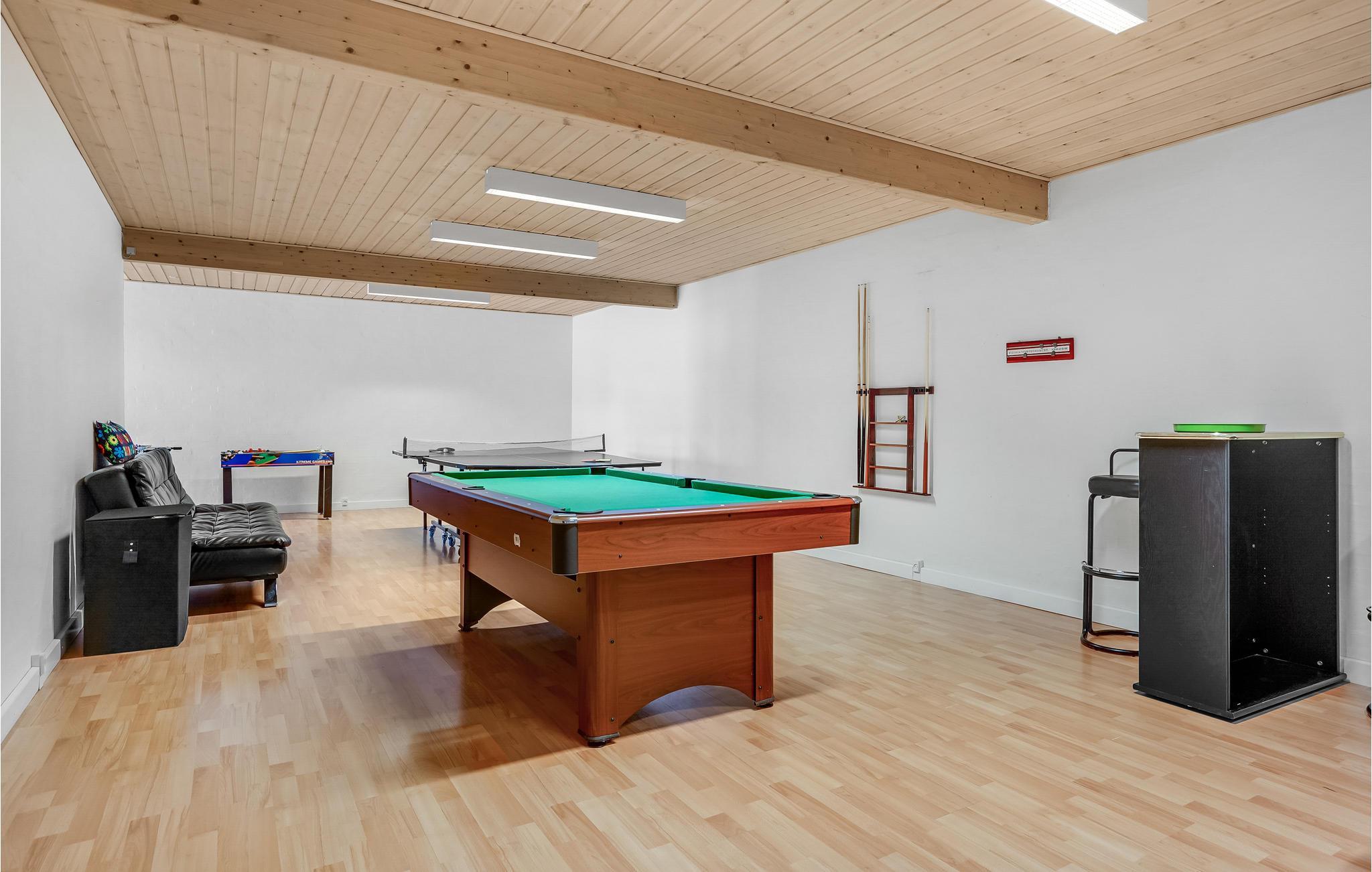 Kommen Sie nach Jütland für einen Urlaub fern vom Alltagsstress. Vorallem aktive Urlauber kommen in diesem Haus nicht zu kurz. Wechseln Sie sich ab zwischen Billard, Tischtennis und Kicker. Ebenso können Sie sich an einem der Fitnessgeräte oder im Pool sportlich betätigen. Auch im riesigen Garten und auf der Terasse finden Jung und Alt immer etwas zu tun. Lust auf einen gemeinsamen Spieleabend? Je nach Interesse können Sie sich auf die verschiedenen Wohnzimmer verteilen. Abends können Sie sich vor dem Kamin oder im Whirpool entspannen.