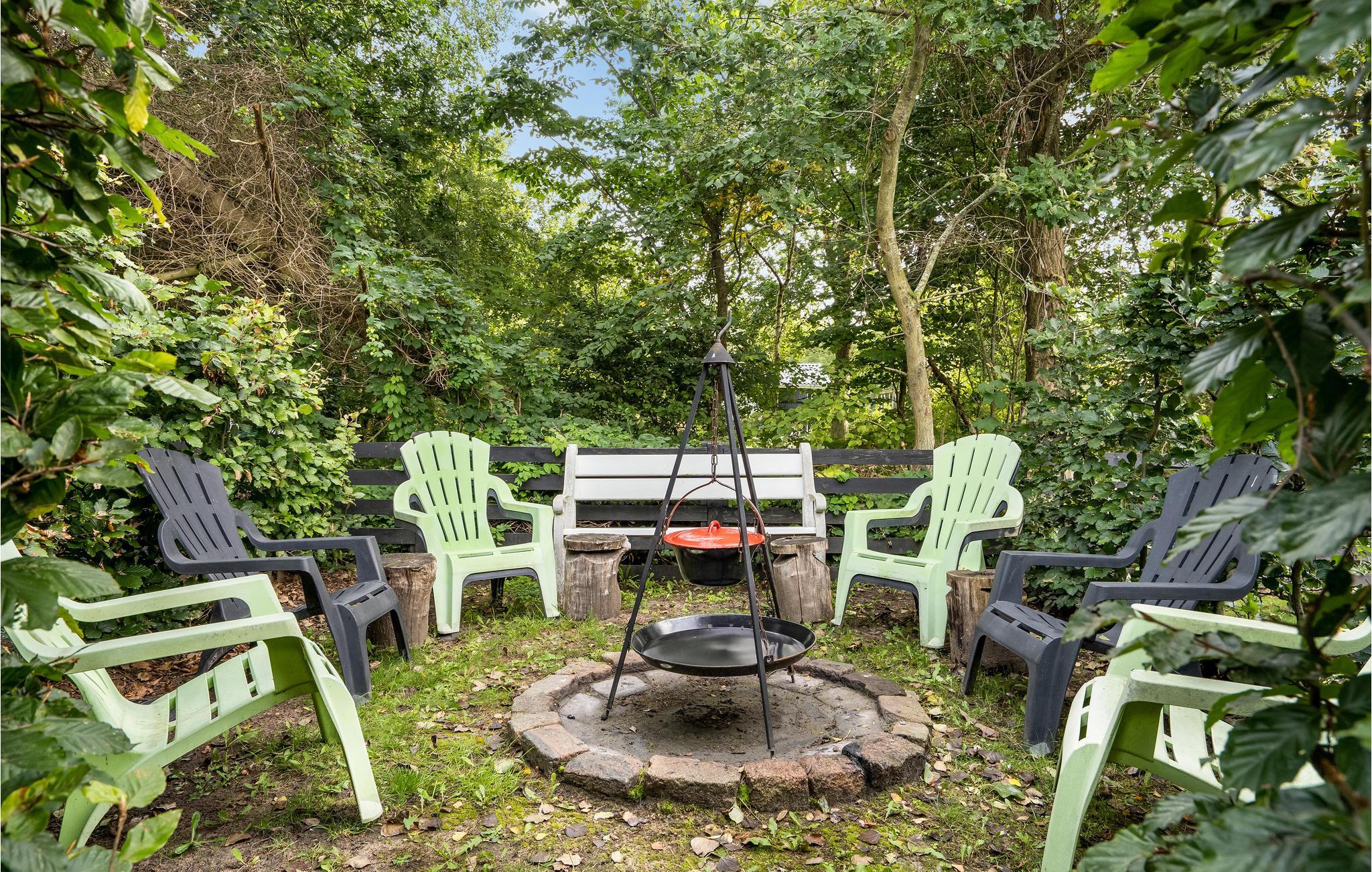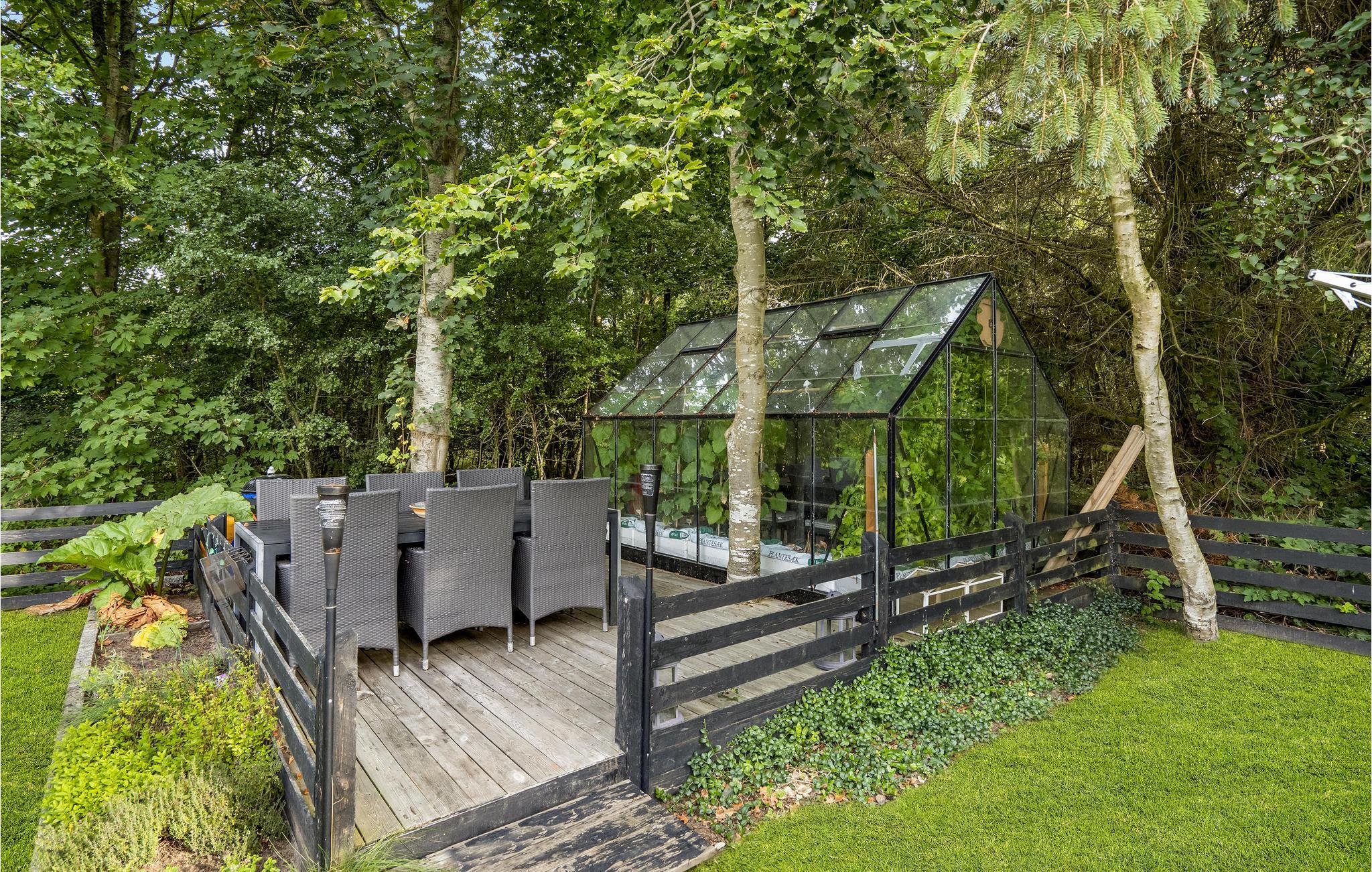 Der eingezäunte Garten ist von alten Bäumen umgeben und wird während Ihres Urlaubs eine beliebte Oase für Groß und Klein. Genießen Sie auf der Terrasse die ruhevolle Atmosphäre des Ortes, während die Kinder schaukeln und rutschen. Die geselligen Abende können Sie an der Feuerstelle mit Marshmallows und Stockbrot oder wenn der Tau sich legt in dem gemütlichen Gewächshaus verbringen.