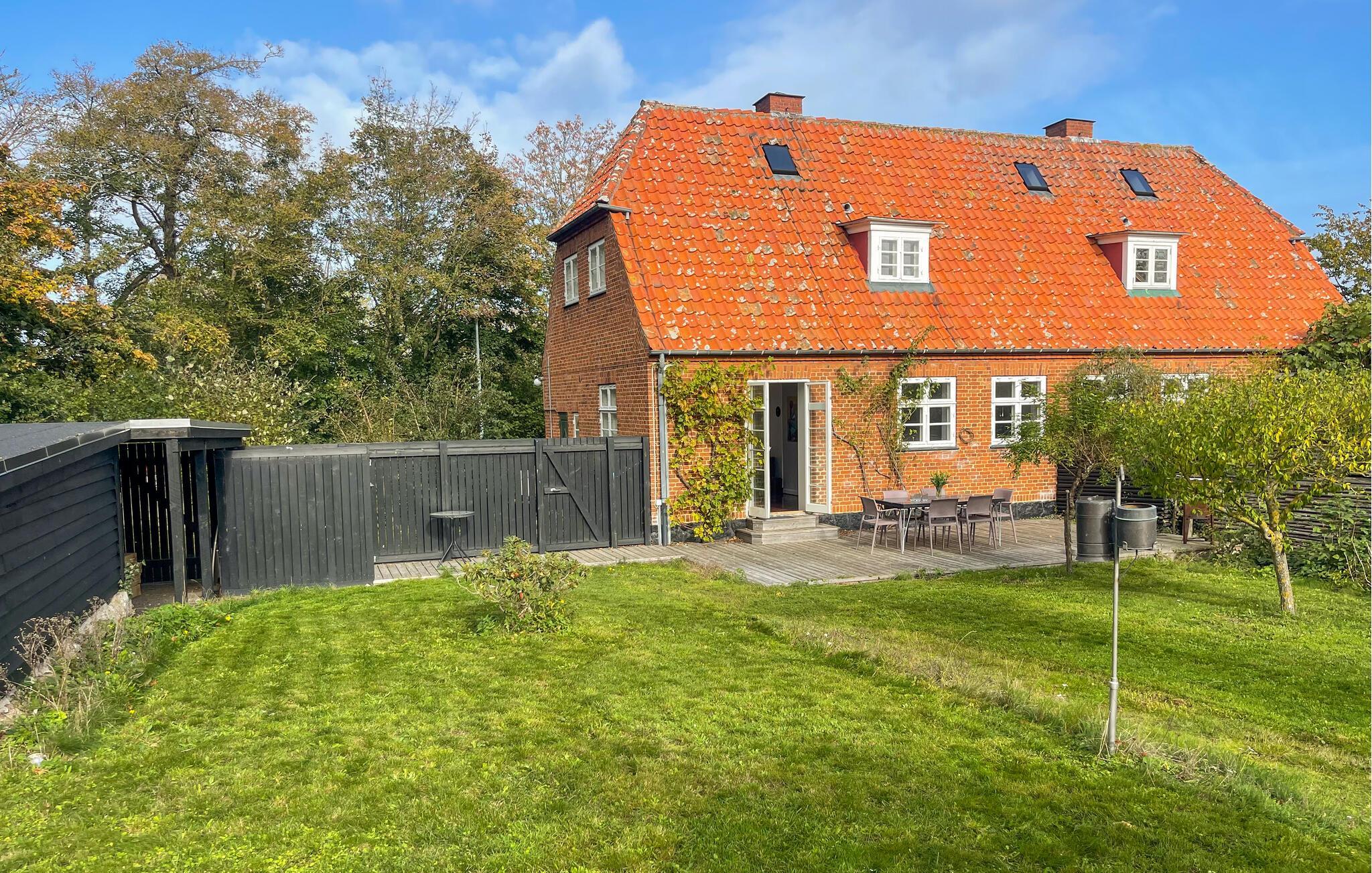 Gehen Sie hinaus in die große, geschützte Gartenanlage mit alten Apfel- und Kirschbäumen. Frühstücken Sie auf der sonnigen Südterrasse und nutzen Sie den Grill oder die Feuerstelle für gesellige Abende im Freien. Erfrischen Sie sich im Sommer unter der Außendusche mit Blick auf die umliegende Natur. Von hier führt ein kleiner Weg direkt zur Bucht und zum beliebten Strandcafé Syd-Øst for Paradis.